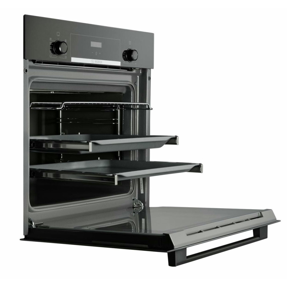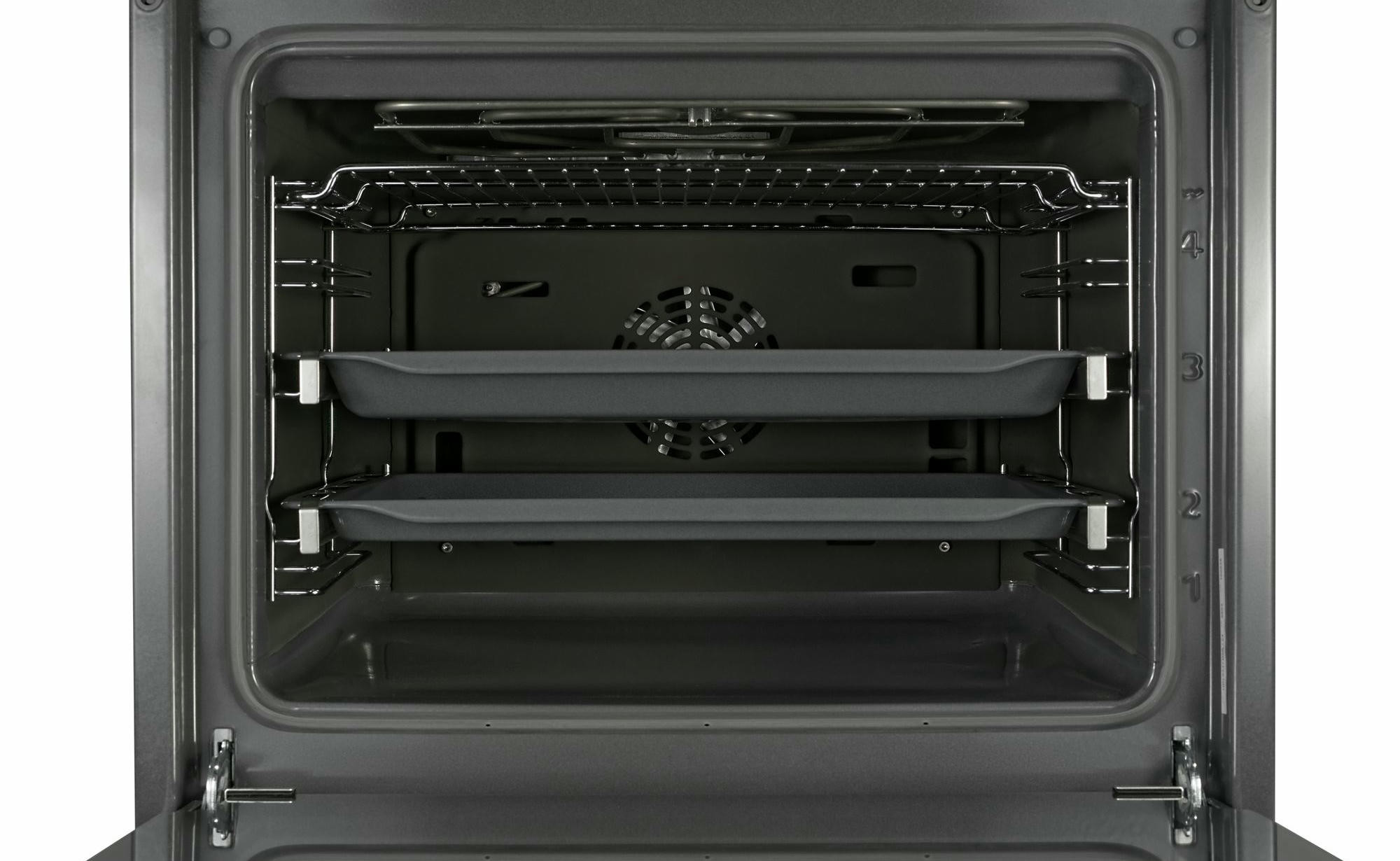 Чтобы не тратить много времени на чистку духовки от жировых отложений, все внутренние панели в Бош HBF554YB0R изготовлены из пористой многослойной керамики EcoClean. Она впитывает в себя жир, а затем при нагревании расщепляет его на экологически безопасные составляющие – уголь и воду. Таким образом, поверхность самоочищается без вашего участия сразу же во время работы устройства.