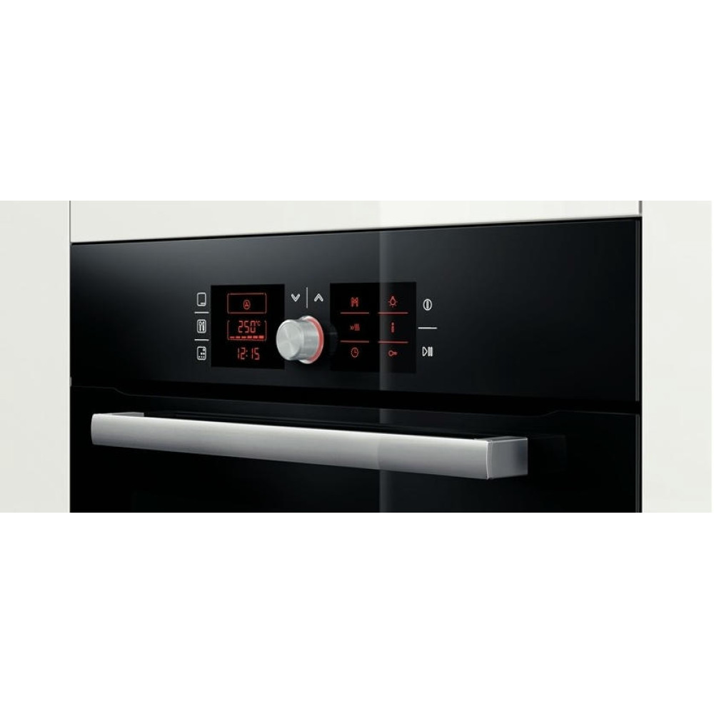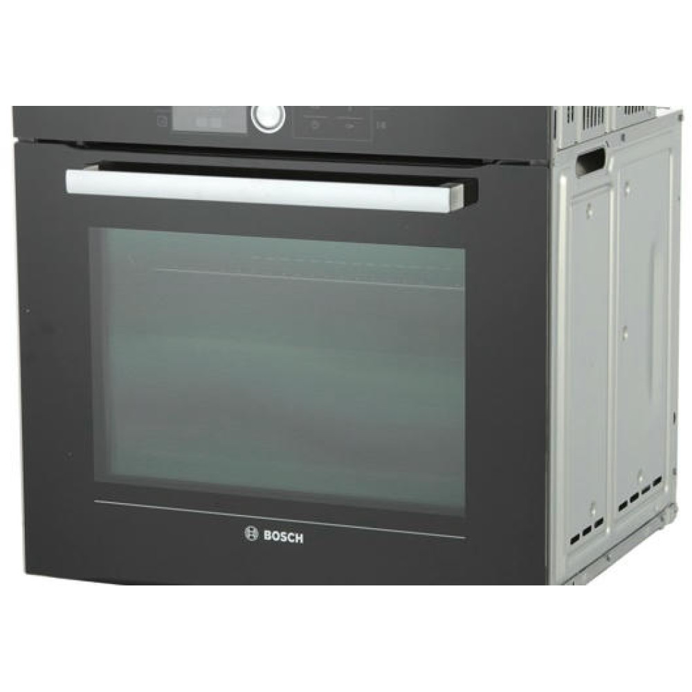 Духовой шкаф HBG 36T660 — многофункциональная модель от Bosch. 11 режимов нагрева позволяют готовить разные виды блюд. Автоматические программы самостоятельно определяют режим, время и температуру для качественного приготовления. Функция подогрева посуды необходима для сохранения еды в горячем состоянии. Керамическая посуда прогревается от 30 до 65 градусов. Режим памяти для рецептов пользователя позволяет запрограммировать собственные настройки. Амортизатор SoftClose обеспечивает мягкое и бесшумное закрытие дверцы, что повышает срок службы прибора. Трехуровневые телескопические направляющие, советы по приготовлению и использование остаточного тепла создают дополнительный комфорт использования.