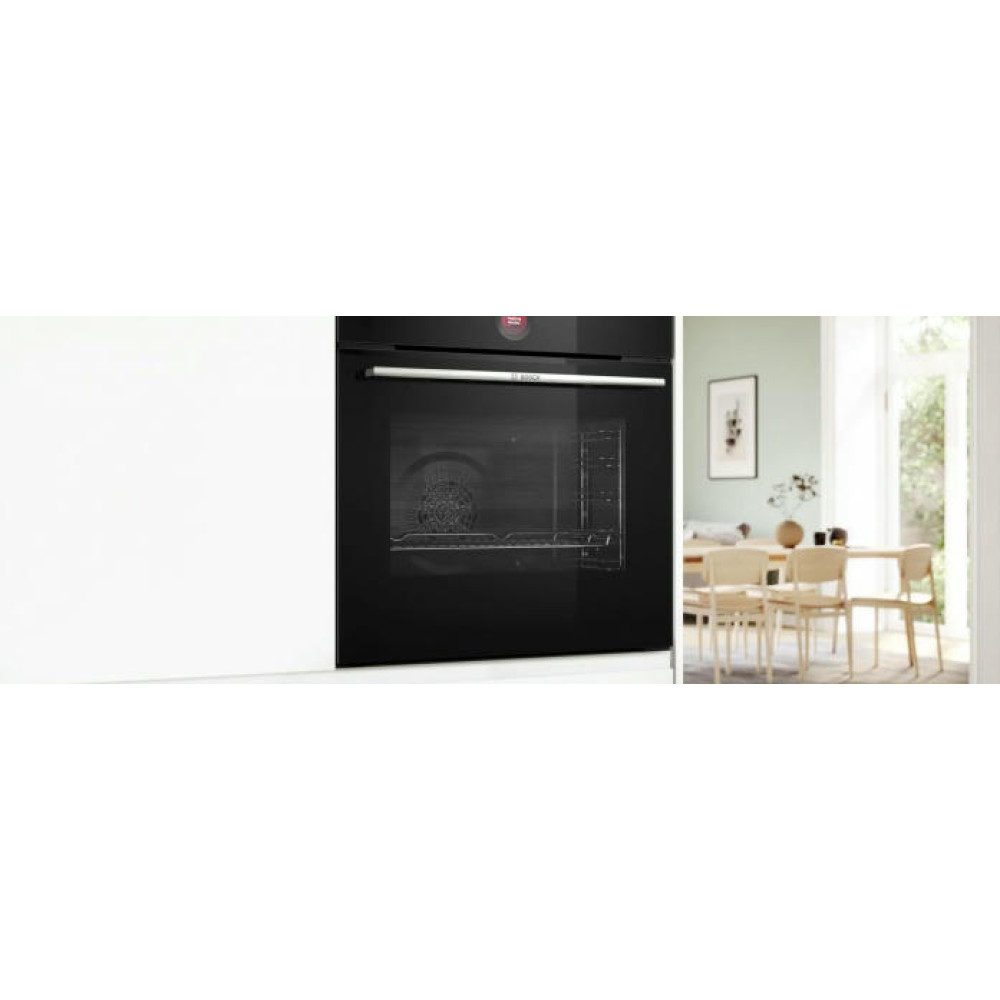 Духовой шкаф Bosch HBG 7721B1S представляет собой высокотехнологичное устройство, которое сочетает в себе элегантный дизайн и передовые функции. Произведенный в Евросоюзе, этот прибор из серии Serie | 8 обладает обширным внутренним объемом в 71 литр, что позволяет готовить большое количество блюд одновременно. Дизайн этого устройства отличается строгими линиями и современным черным цветом корпуса, который идеально дополняется фурнитурой из нержавеющей стали. Электронное управление с сенсорными элементами управления и 2.5-дюймовым цветным TFT-дисплеем делает использование этого прибора удобным и простым.