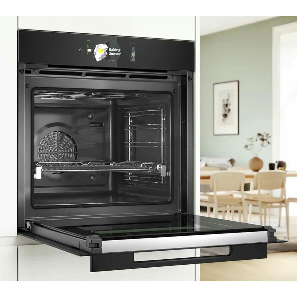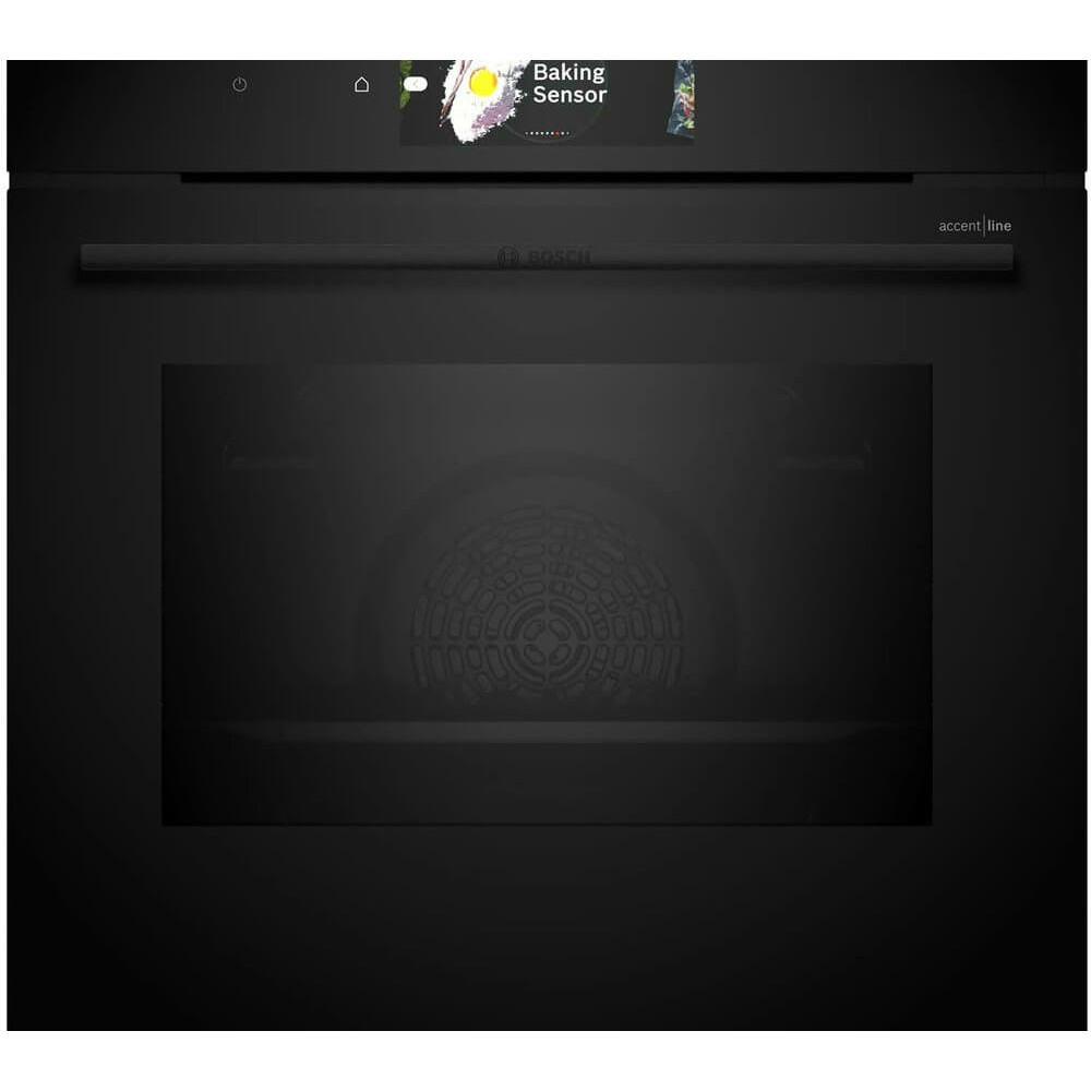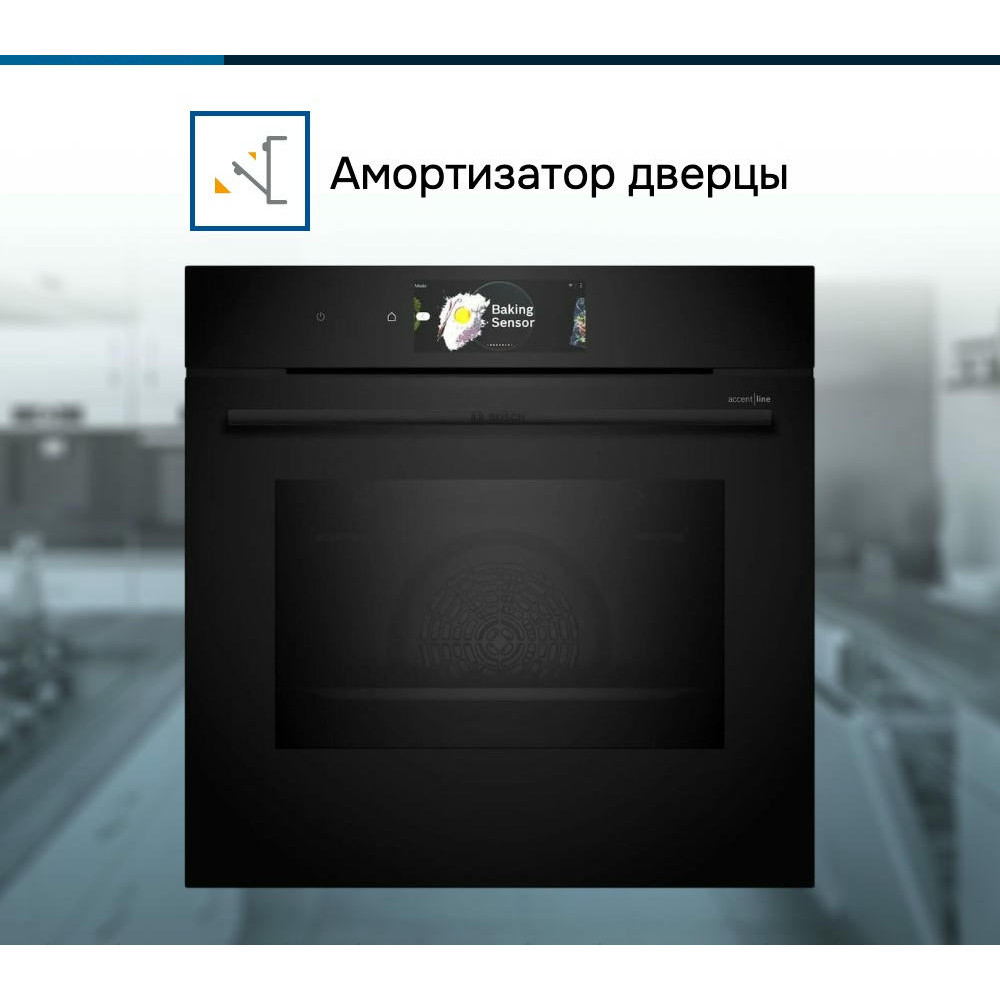Электрический духовой шкаф Bosch HBG 978NB1S представляет собой высококачественное устройство, созданное в Евросоюзе и относящееся к серии Serie 8. Он обладает независимым типом и обеспечивает превосходные возможности для приготовления разнообразных блюд. Внутренний объем шкафа составляет 71 литр, что позволяет готовить большое количество пищи одновременно. Дизайн устройства выполнен в элегантном черном цвете, что делает его стильным дополнением к любой кухне. Управление шкафом осуществляется электронно, с использованием сенсорных элементов. 6.8-дюймовый цветной TFT-дисплей с сенсорными кнопками обеспечивает удобное и интуитивно понятное управление всеми функциями шкафа. Устройство оснащено электронными часами и таймером, что позволяет установить необходимое время приготовления блюд. Кроме того, шкаф поддерживает Home Connect - технологию, которая позволяет управлять устройством дистанционно через приложение на смартфоне.