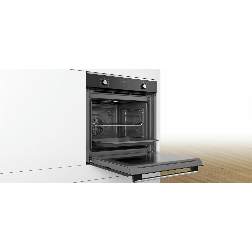 Bosch HBG217BS0R — встраиваемый электрический духовой шкаф с 7 режимами нагрева. Модель оснащена дверцей с функцией бесшумного и легкого закрытия SoftClose. Превосходный результат приготовления блюд достигается c автоматическими программами AutoPilot для разнообразных блюд. Легкая очистка внутренней камеры от загрязнений осуществляется благодаря гладкой эмали GraniteEnamel и сглаженным углам.