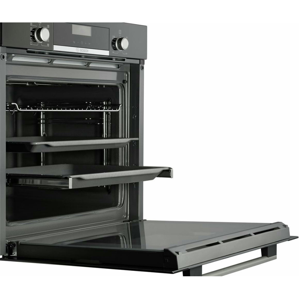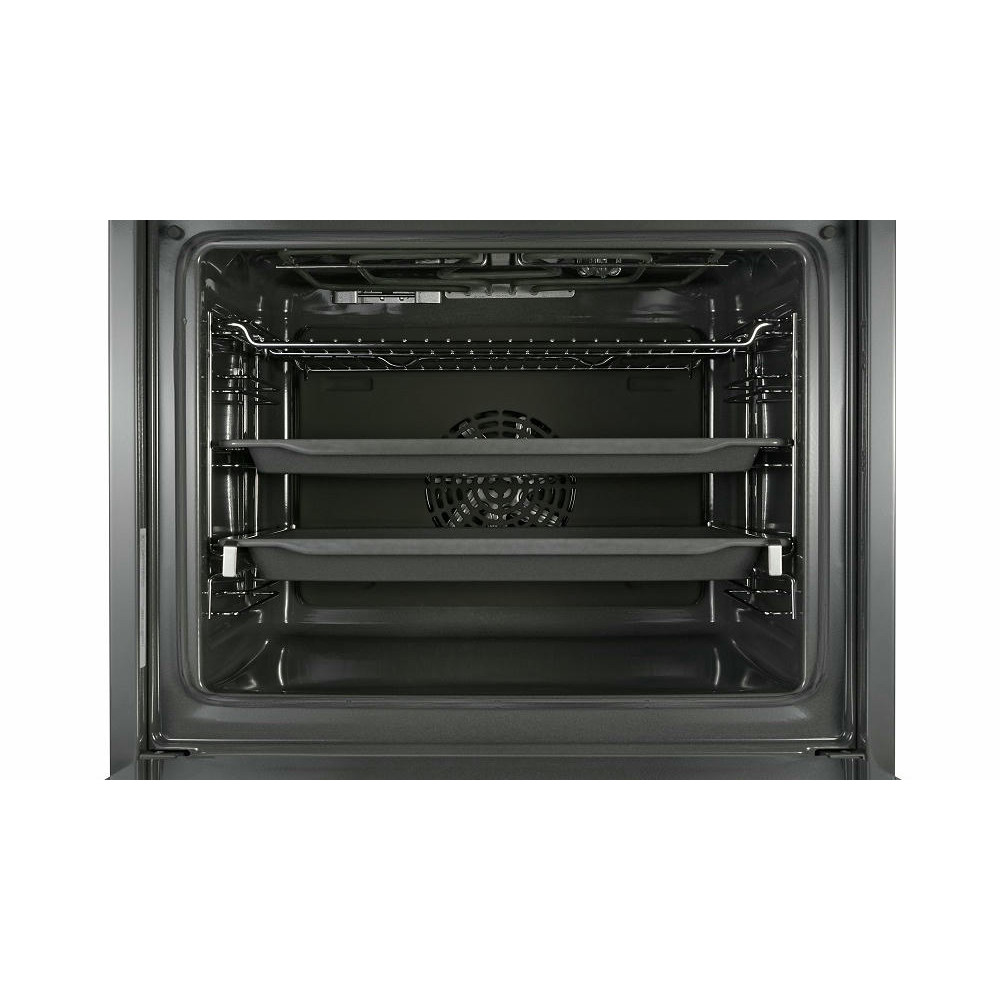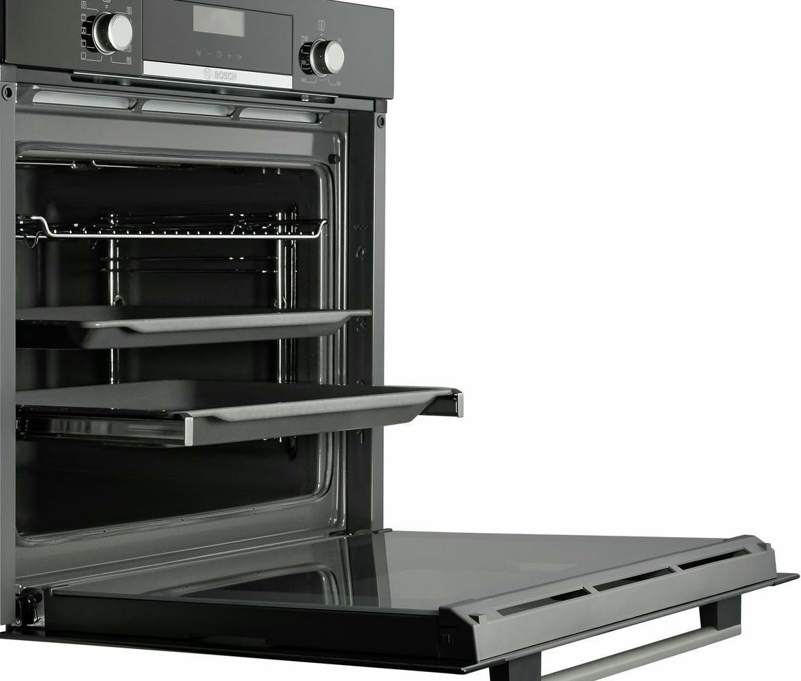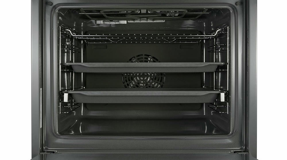 Уникальное пористое покрытие EcoClean непрерывно расщепляет жир на углекислый газ и воду при каждом использовании духовки. Телескопические системы выдвижения противней обеспечивают удобный и безопасный доступ к блюдам. Одинаково безупречный результат достигается на всех трех уровнях благодаря равномерному распределению жара на режиме «3D горячий воздух».