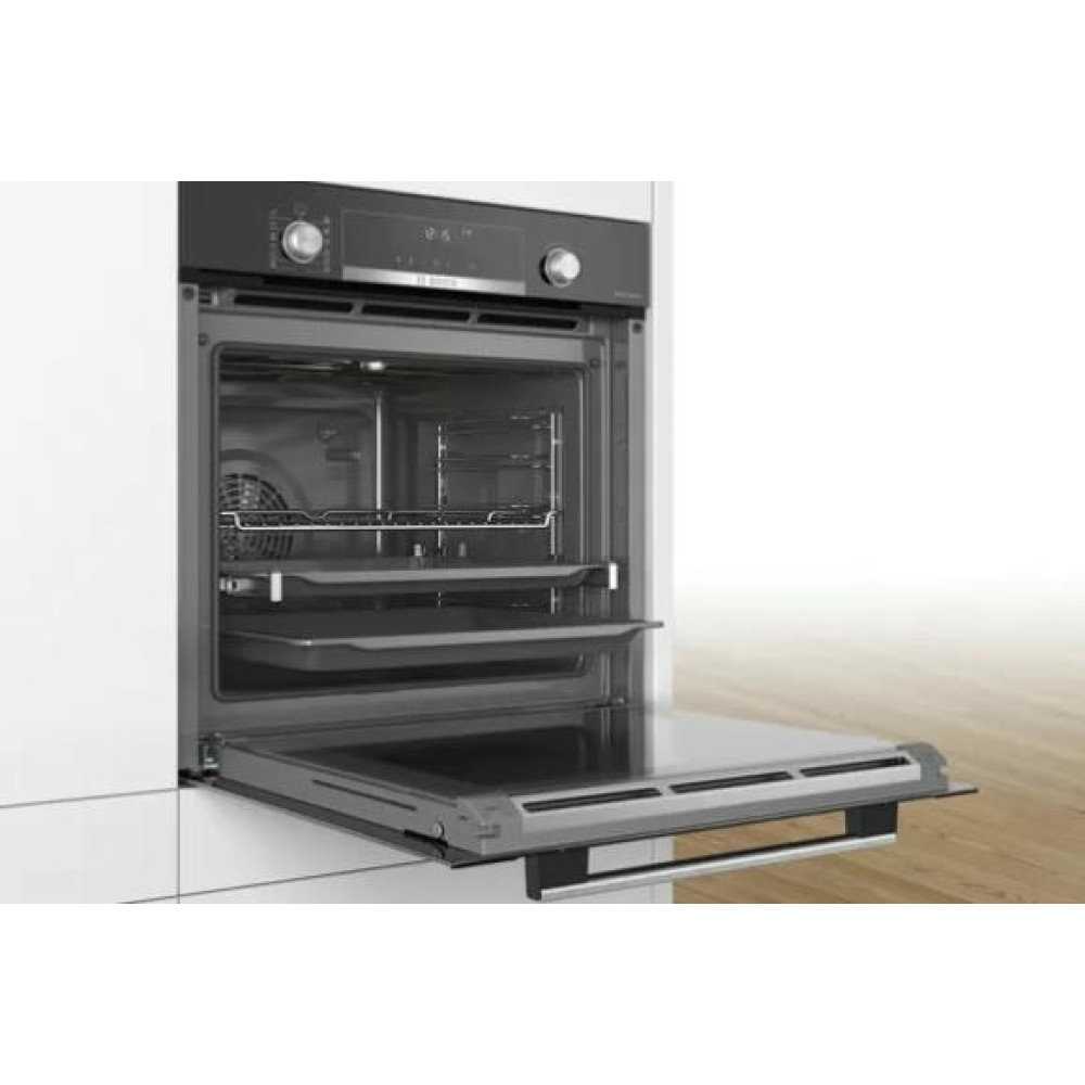 Духовой шкаф Bosch HBG378EB6R оснащен режимом «3D-горячий воздух», который распределяет жар по всему объему духового шкафа так, чтобы блюда пропекались равномерно. Телескопические направляющие легко позволяют безопасно выдвинуть противень — это препятствует появлению ожогов. Почувствуйте себя шеф-поваром! Функция AutoPilot 30 определит режим приготовления, температуру и продолжительность — для создания настоящих кулинарных шедевров.