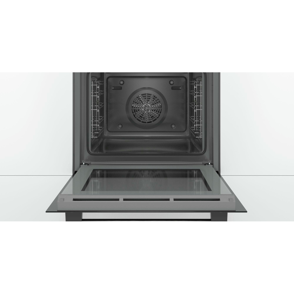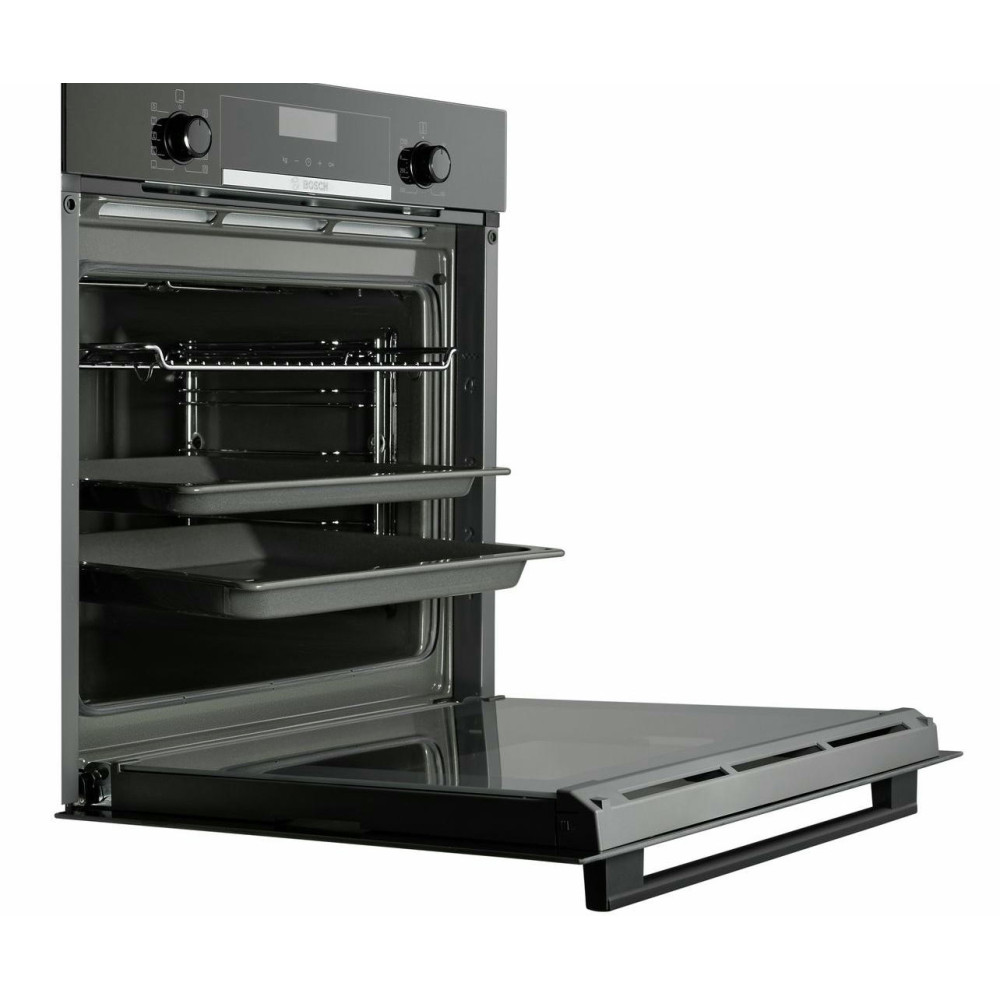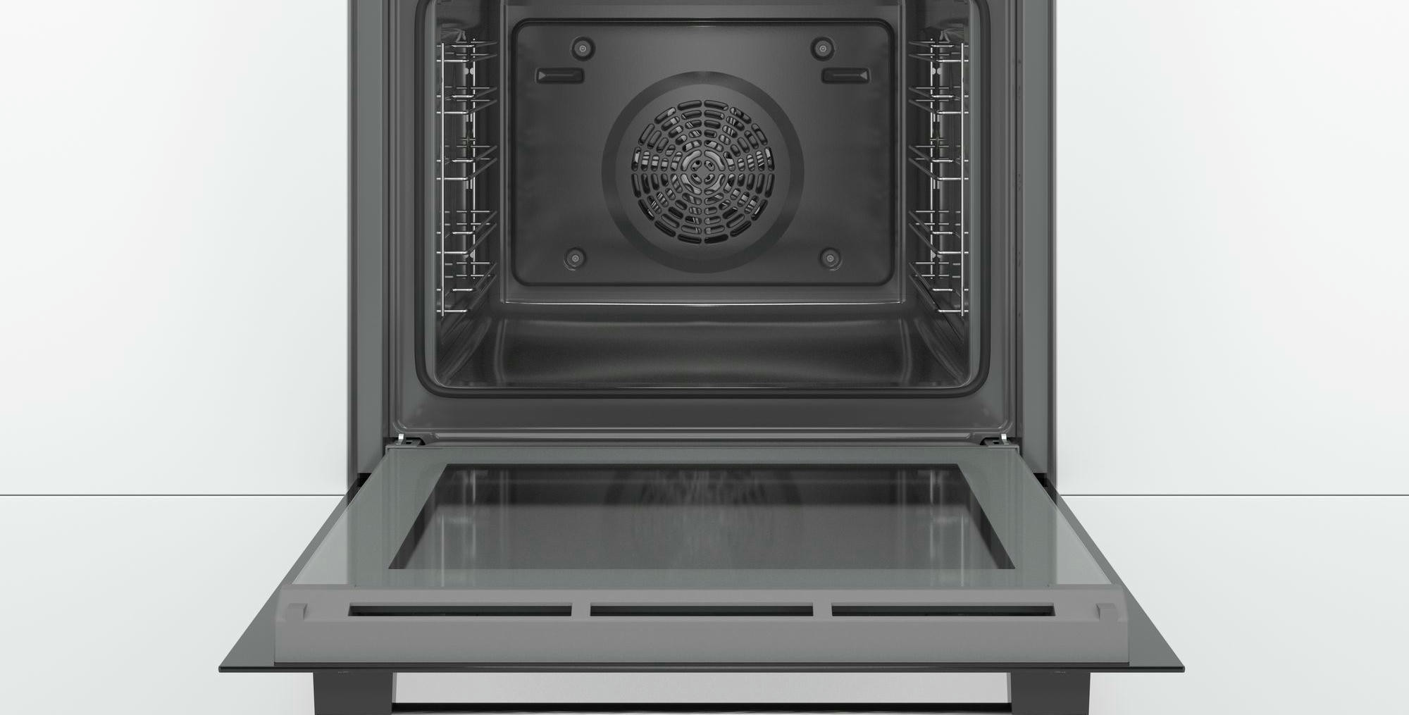 Как и все духовки из линейки Serie 6, Бош HBG517BB0R оборудована грилем, двумя ТЭНами и вентилятором для обдува горячим воздухом. Отдельно для выпечки предусмотрен режим пиццы. Опция «Быстрый нагрев» подразумевает не нагрев самого блюда, а прогрев духовки перед началом приготовления.