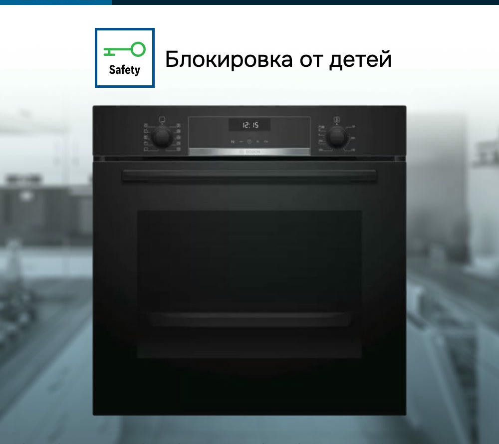 Духовой шкаф Bosch HBG517EB0R оснащен 7 режимами нагрева, которые упростят процесс готовки даже сложных блюд. Функция «Быстрый разогрев» поможет разогреть камеру в считанные минуты и сократить время приготовления. «Блокировка от детей» защитит панель управления от случайного нажатия во время работы прибора.