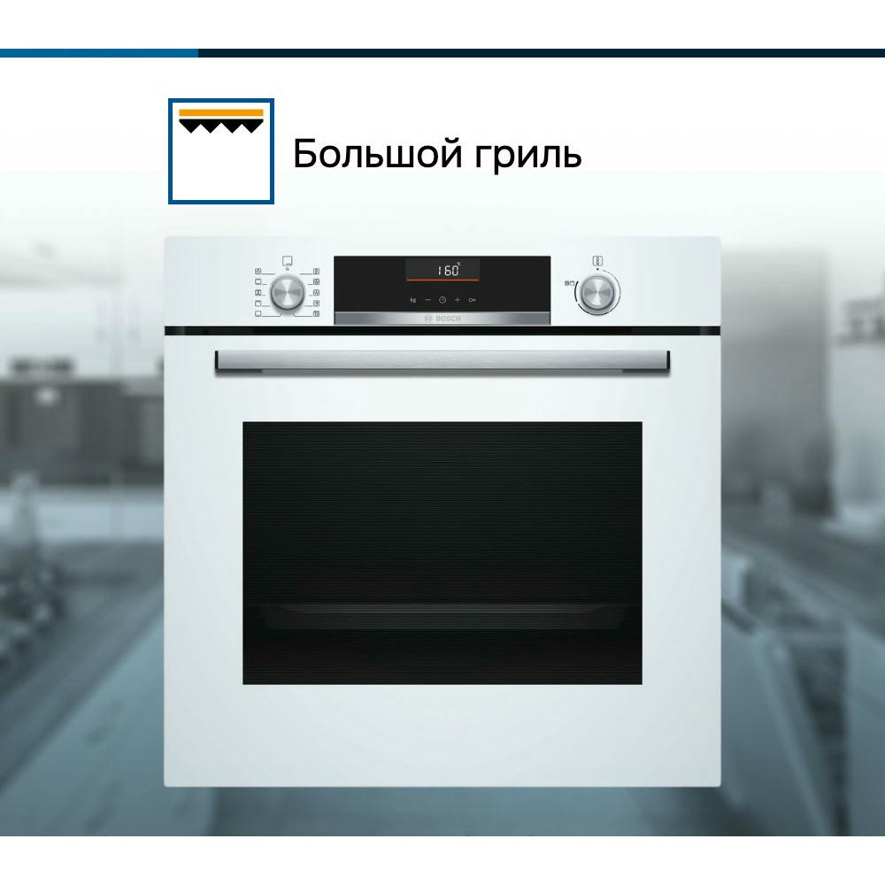 Бош HBG536HW0R оборудован семью режимами нагрева. Щадящий горячий воздух оптимально регулирует подачу энергии в рабочую камеру. Блюдо пофазно приготавливается с помощью остаточного тепла. При приготовлении блюд, для которых требуется сильный нагрев с нижней стороны, можно использовать режим пиццы. Режимы обдува горячем воздухом, гриля, а также верхнего и нижнего жара можно применять для жарки, выпечки и даже консервации.