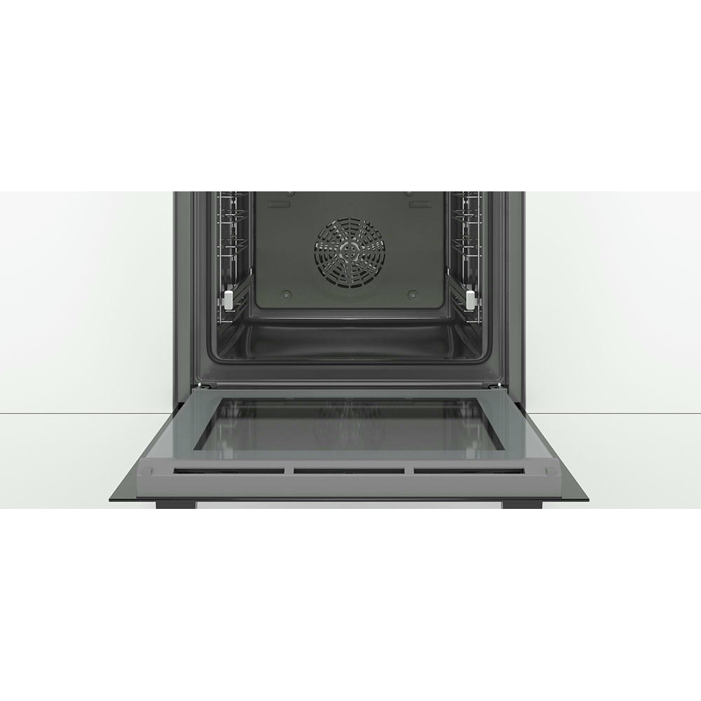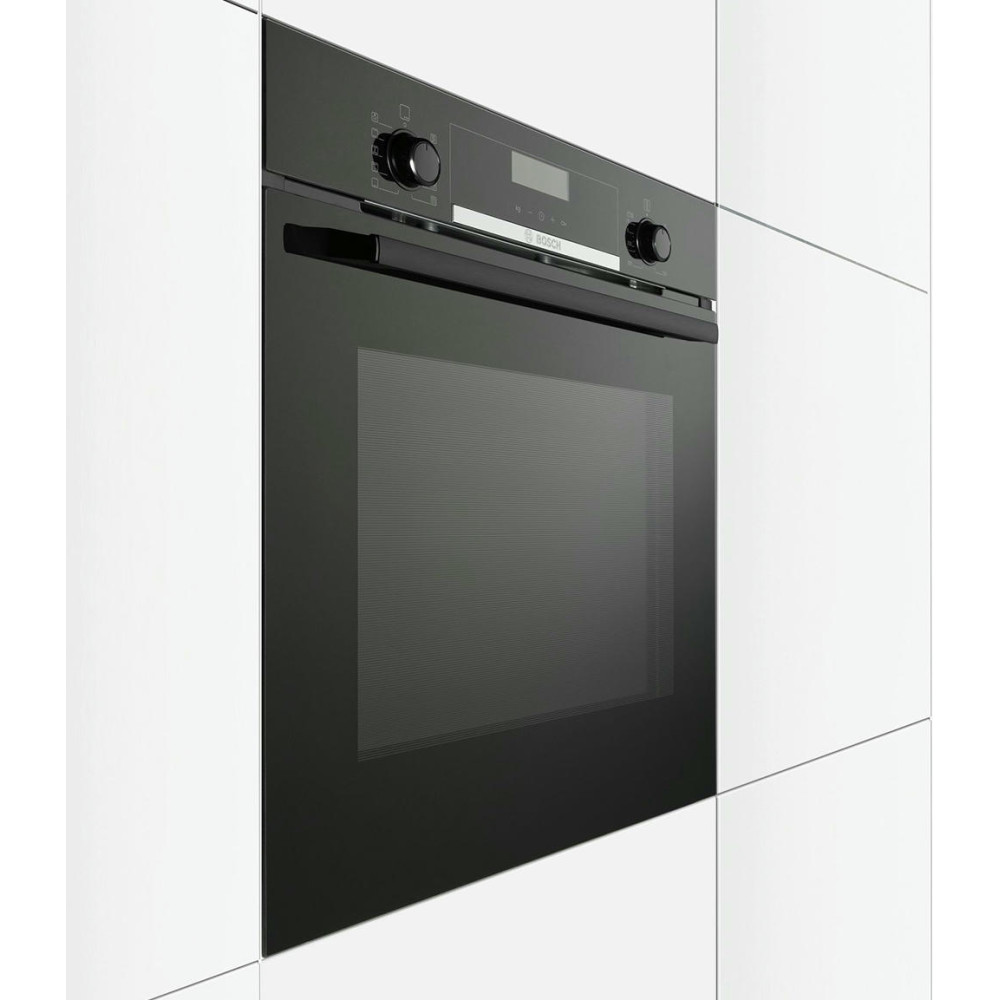 Духовой шкаф Bosch HBG537NB0R высотой 60 см, поэтому в стандартный шкаф еще можно добавить откидную панель или ящик высотой 12 см сверху или снизу.
