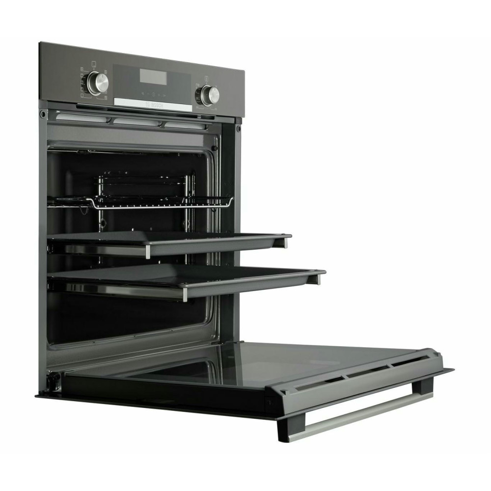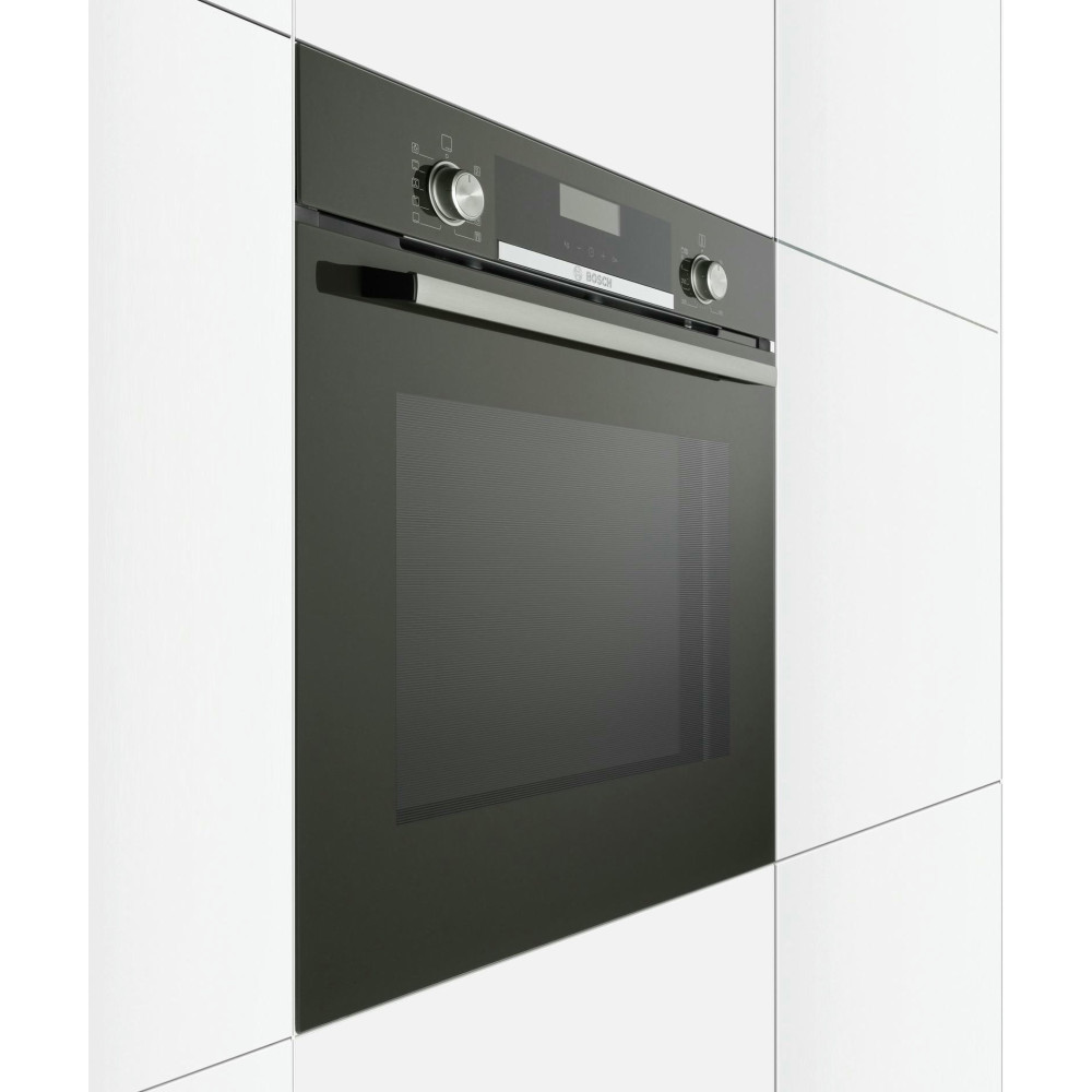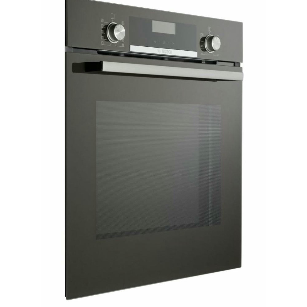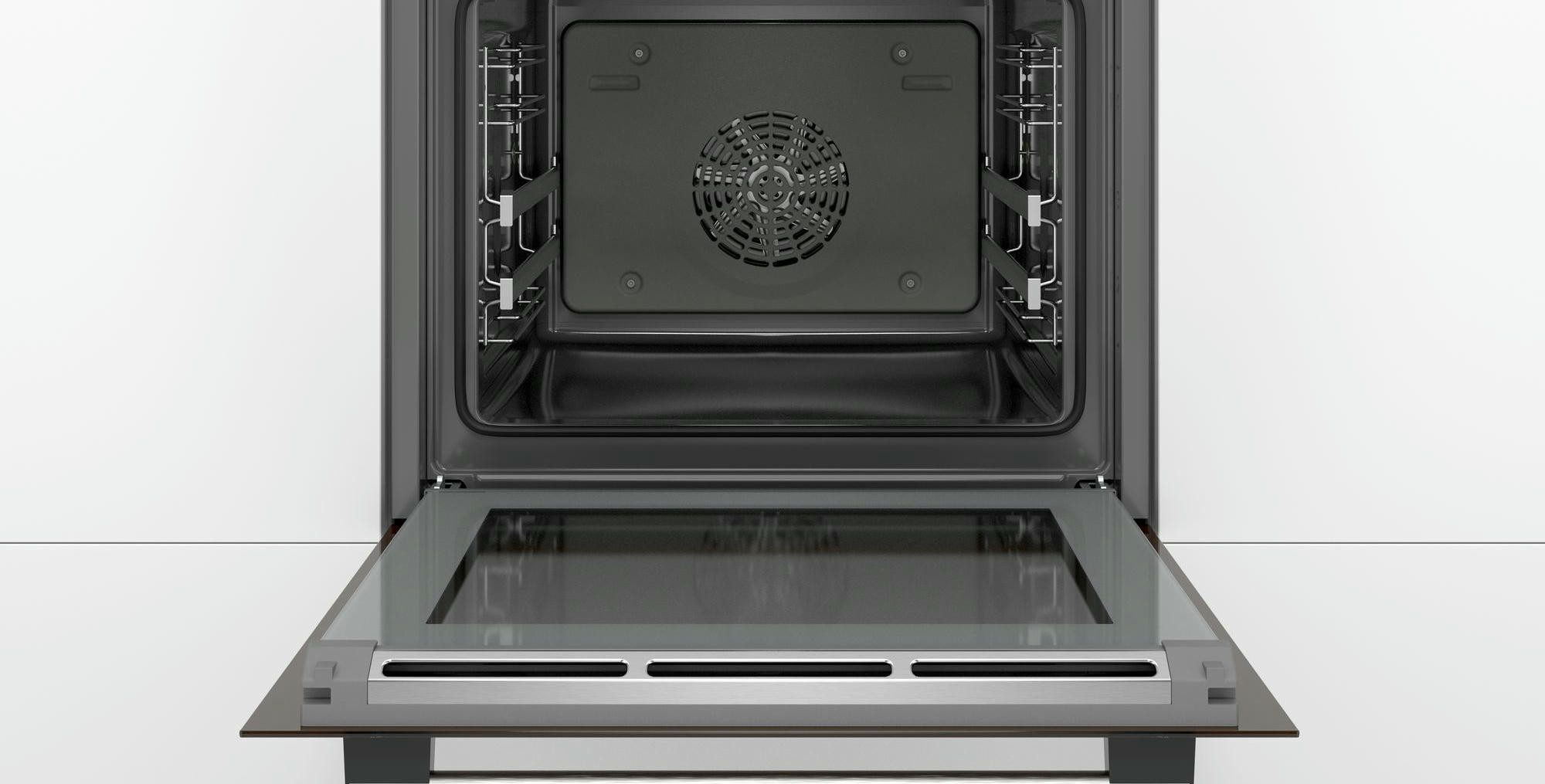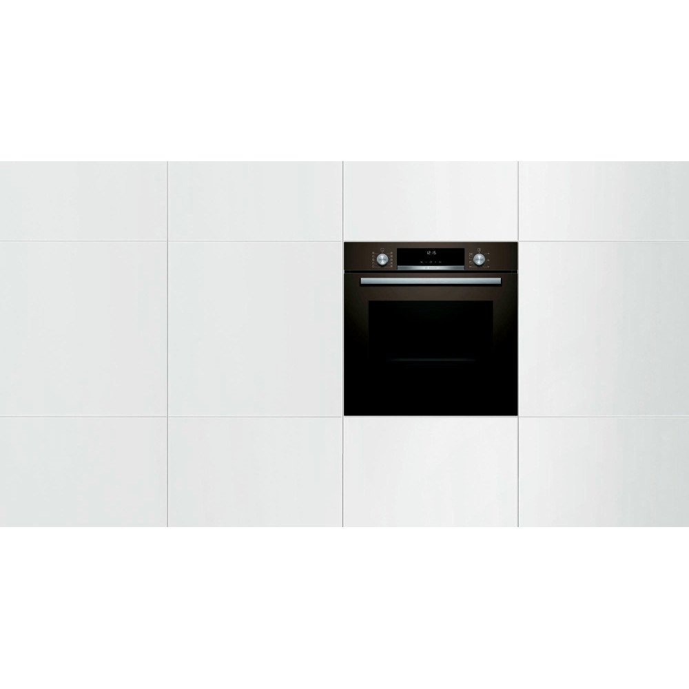 Bosch HBG537YM0R — это электрический духовой шкаф коричневого цвета объёмом 71 л. Камеру внутри освещает галогенная лампочка мощностью 25 Вт. Есть дисплей с индикацией температуры. Уровней установки противней — пять, в том числе два — с телескопическими направляющими. Предусмотрена блокировка от детей с возможностью настройки. В комплекте идут два противня (универсальный и эмалированный) и комбинированная решётка.