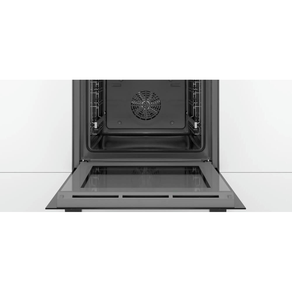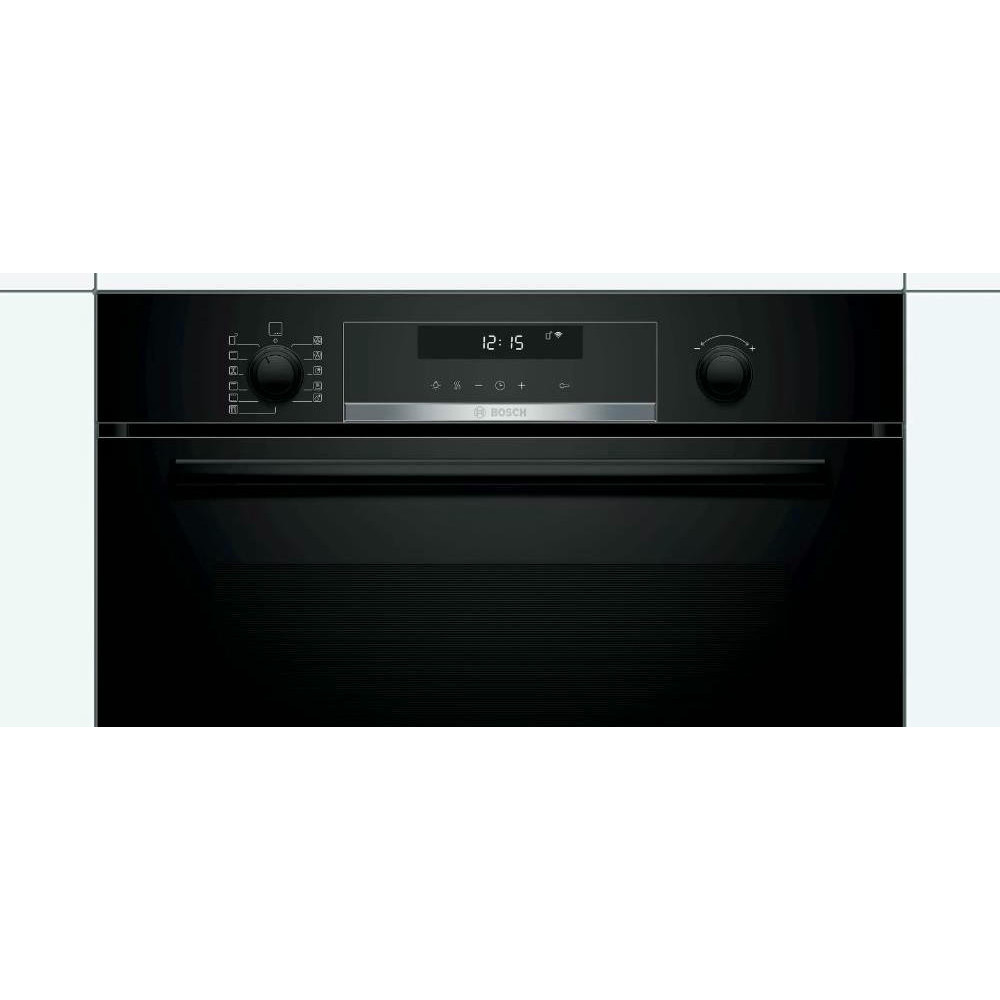 Духовой шкаф Bosch HBG538EB6R — яркий представитель линейки Serie 6. Она функциональна и предлагает немало умных решений. Цвет корпуса — полностью чёрный, что подчёркивает современность техники. Очистка рабочей камеры происходит проще благодаря нанесённой на заднюю стенку эмали EcoClean.