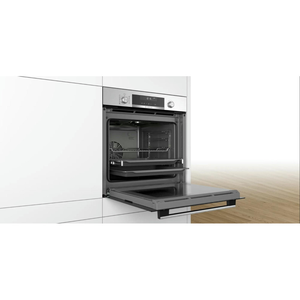 Духовой шкаф Bosch HBG538ES6R оснащен очисткой EcoClean Direct, на задней стенки камеры расположена каталитическая панель, на которой жировые загрязнения расщепляются на углекислый газ и воду под воздействием высоких температур.