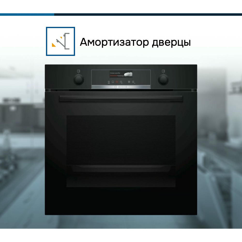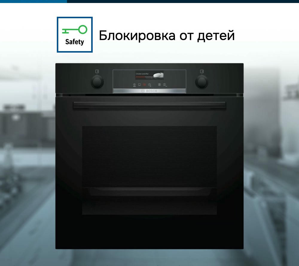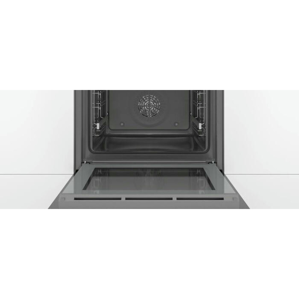 Духовой шкаф Bosch HBG539EB0 выполнен в цвете нержавеющей стали и оснащён серебристой фурнитурой. Элементы управления — утапливаемые поворотные ручки и сенсорные кнопки. Камеру освещает одна галогенная лампа мощностью 25 Вт. Уровней установки противней — пять. Амортизатор SoftClose позволяет мягко закрывать дверцу. Наружное стекло греется не более чем до 50°С. Предусмотрена блокировка от детей. Модель комплектуется двумя противнями (универсальным и эмалированным) и комбинированной решёткой.