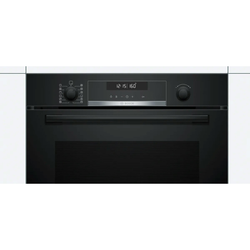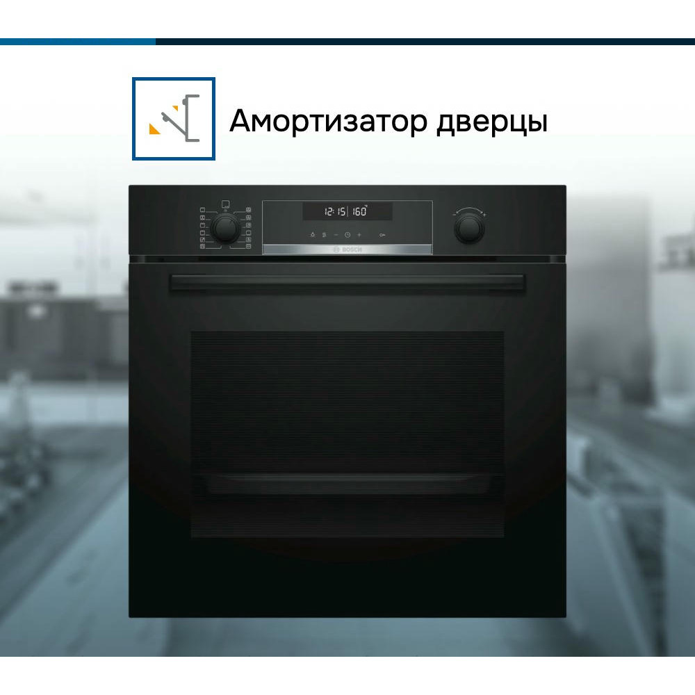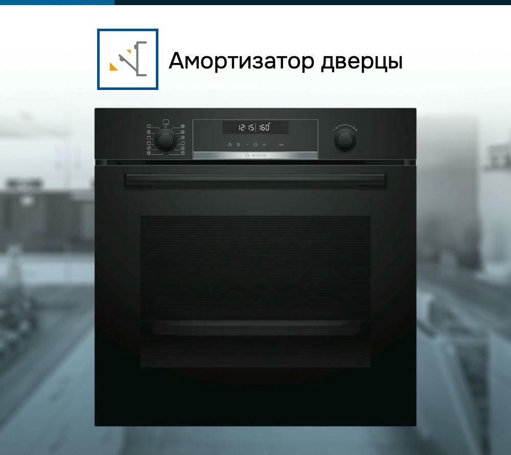 Он может быть встроен в нишу размерами 58.5-59.5 х 56-56.8х 55 см. Цвет устройства — черный, а фурнитура выполнена из нержавеющей стали, что придает ему современный и стильный вид. Управление духовым шкафом осуществляется при помощи электронной системы управления, которая включает сенсорные поворотные утапливаемые элементы управления. На LCD-дисплее отображается вся необходимая информация о режиме работы устройства, времени и температуре.