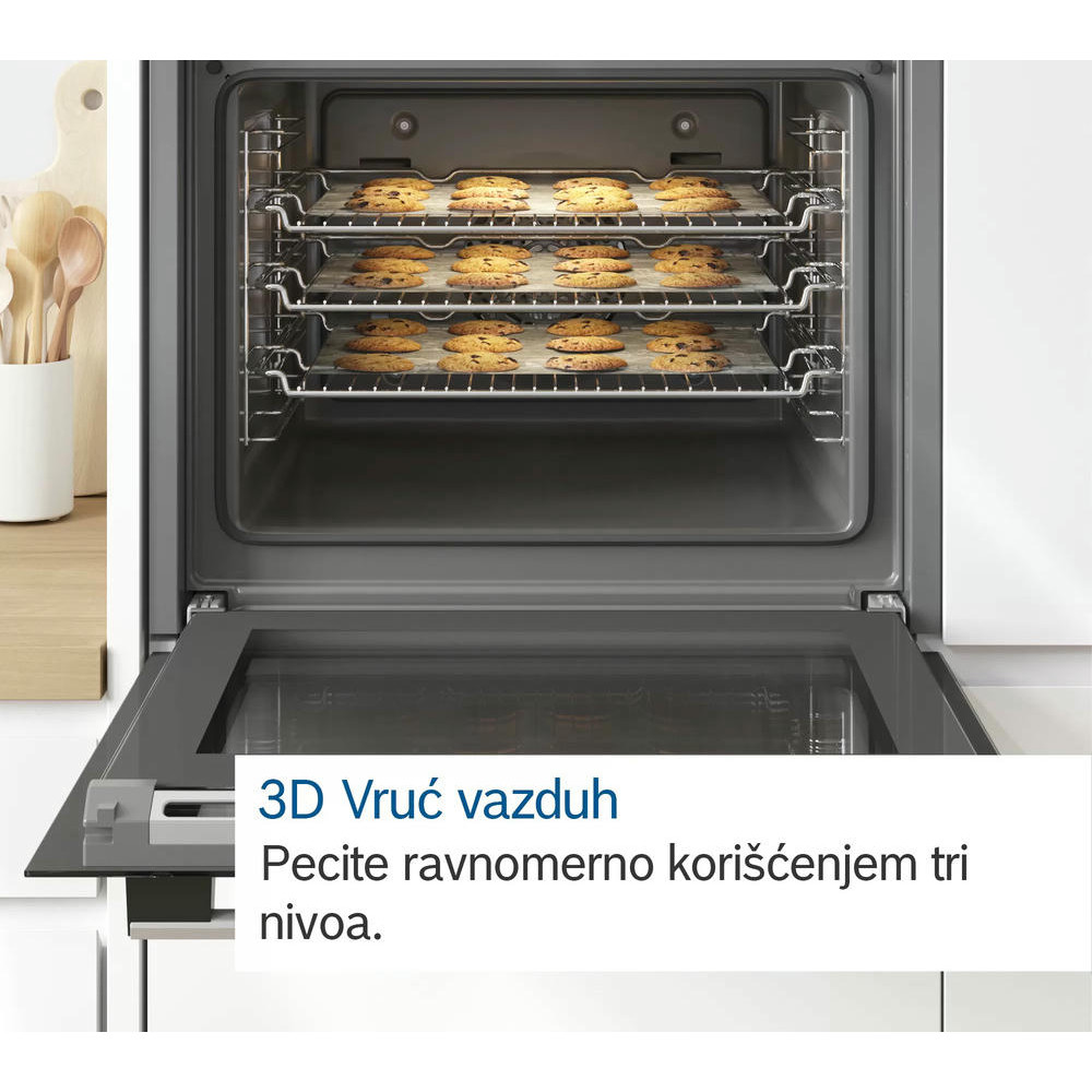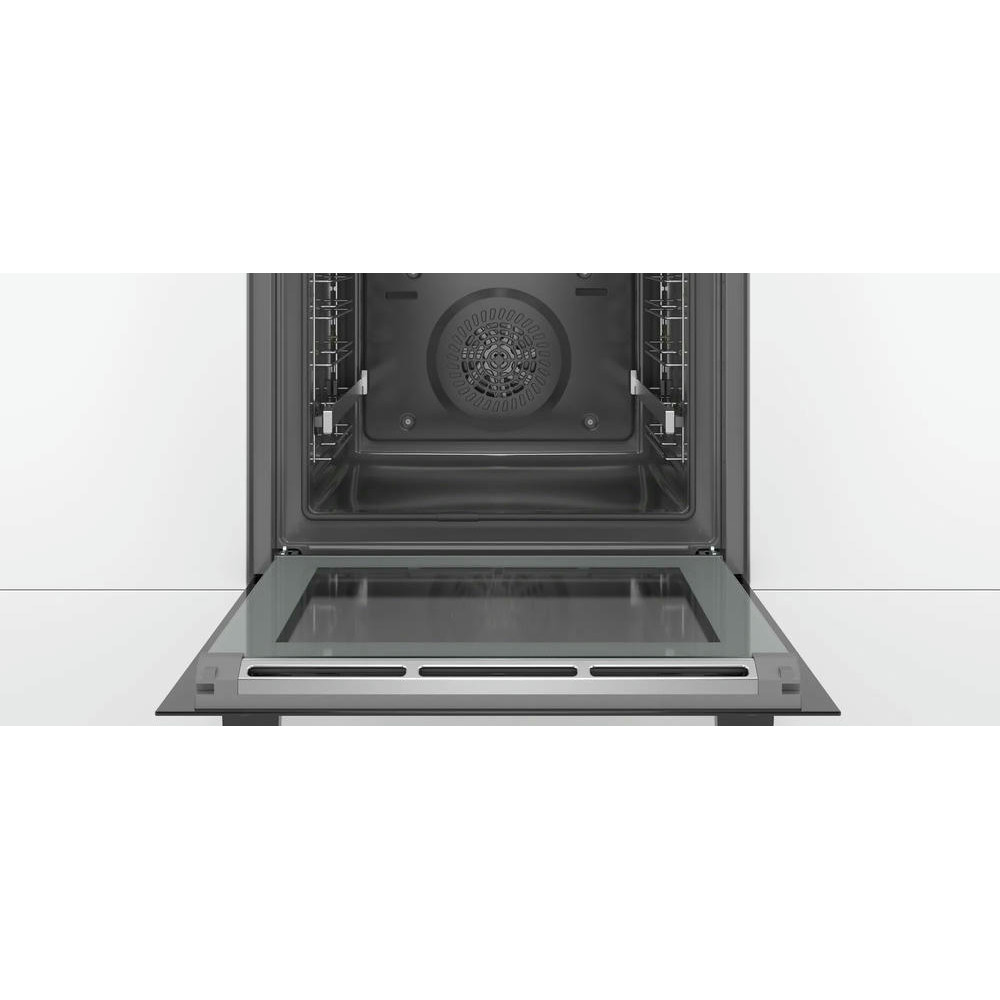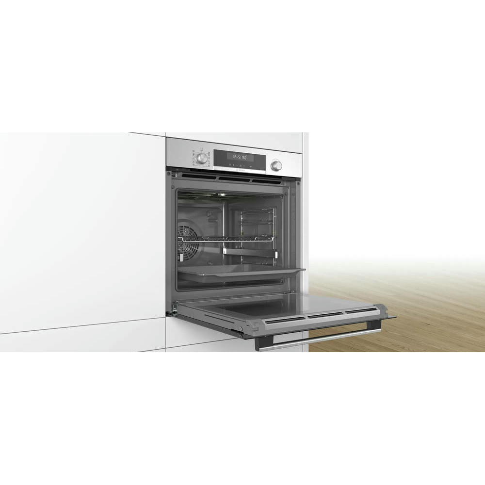 Духовой шкаф Bosch HBG5780S0 оснащен AutoPilot30 автоматическими программами, вы можете выбрать уже готовый рецепт, остается только ввести вес блюда. 10 режимов нагрева среди них есть, программа для пиццы. Управление осуществляется с помощью утапливаемых поворотных переключателей и сенсорного дисплея.