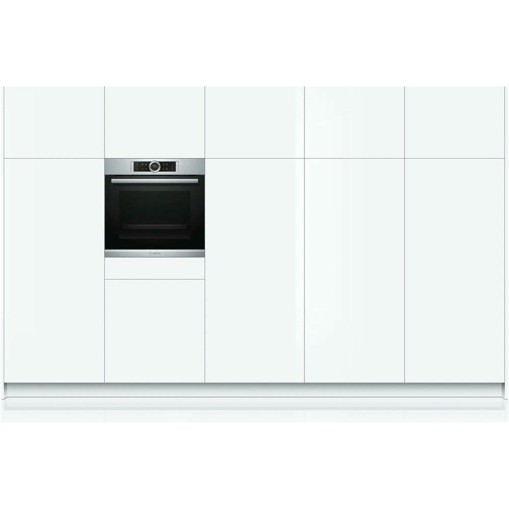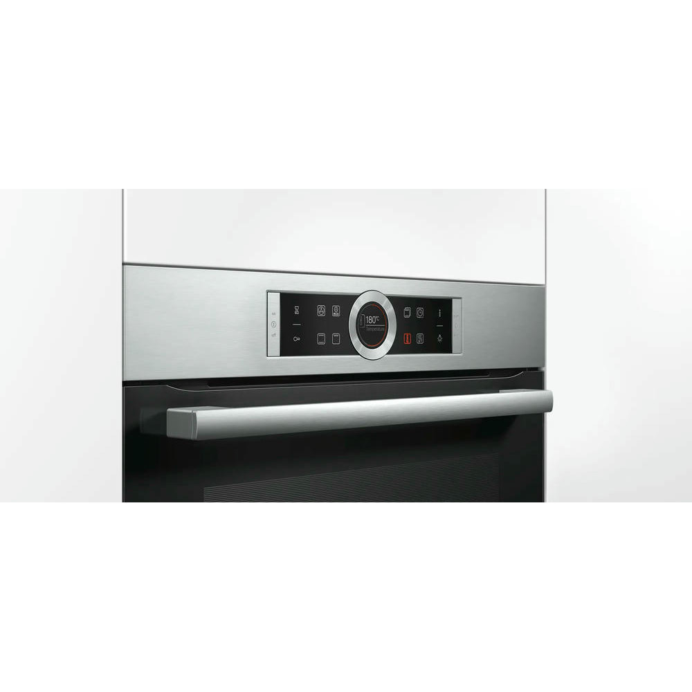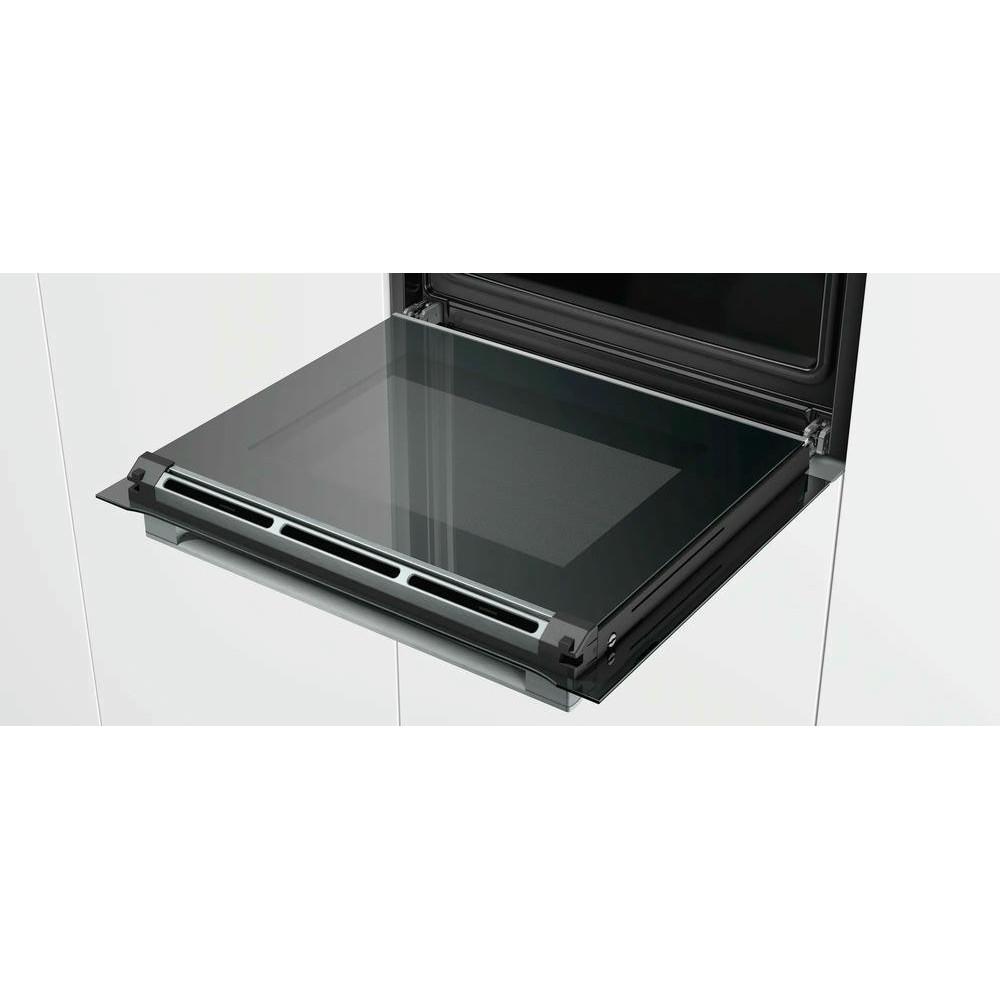 Духовой шкаф Bosch HBG632TS1 оснащен TFT-дисплеем на нем отображаются все режимы приготовления. Имеются 3х уровневые телескопические направляющие, для безопасного и удобного извлечения противней. Технология 4D горячий воздух обеспечивает равномерное распределяет нагрев на всех уровнях.
