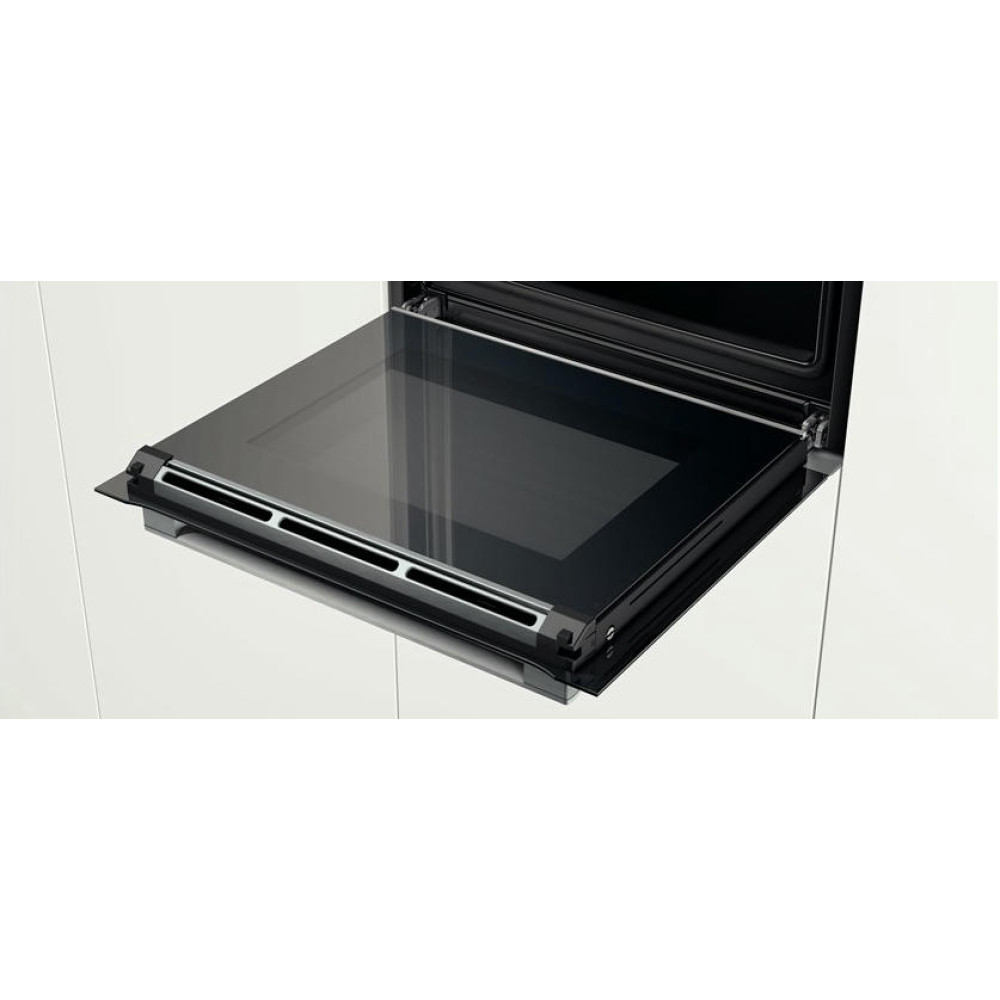 Бош HBG633BS1 укомплектована решёткой и универсальным противнем, которые можно размещать на пяти разных уровнях. Возможность включить освещение как во время работы, так и после её завершения позволяет не только контролировать процесс готовки, но и существенно облегчает уход по её окончании. Сенсорные элементы в сочетании с переключателем Control Ring делают процесс выбора режимов работы, простым и удобным. Десять режимов нагрева позволяют превратить рутинное приготовление пищи в настоящее творчество. 4D горячий воздух и обдув горячим воздухом ECO дают возможность хорошо запечь большой кусок мяса, или же нежно обжарить тонкие стейки. Для вашего удобства выделен специальный режим приготовления пиццы. А программа Шаббат позволит блюдам в рабочей камере оставаться тёплыми в течение 72 часов.