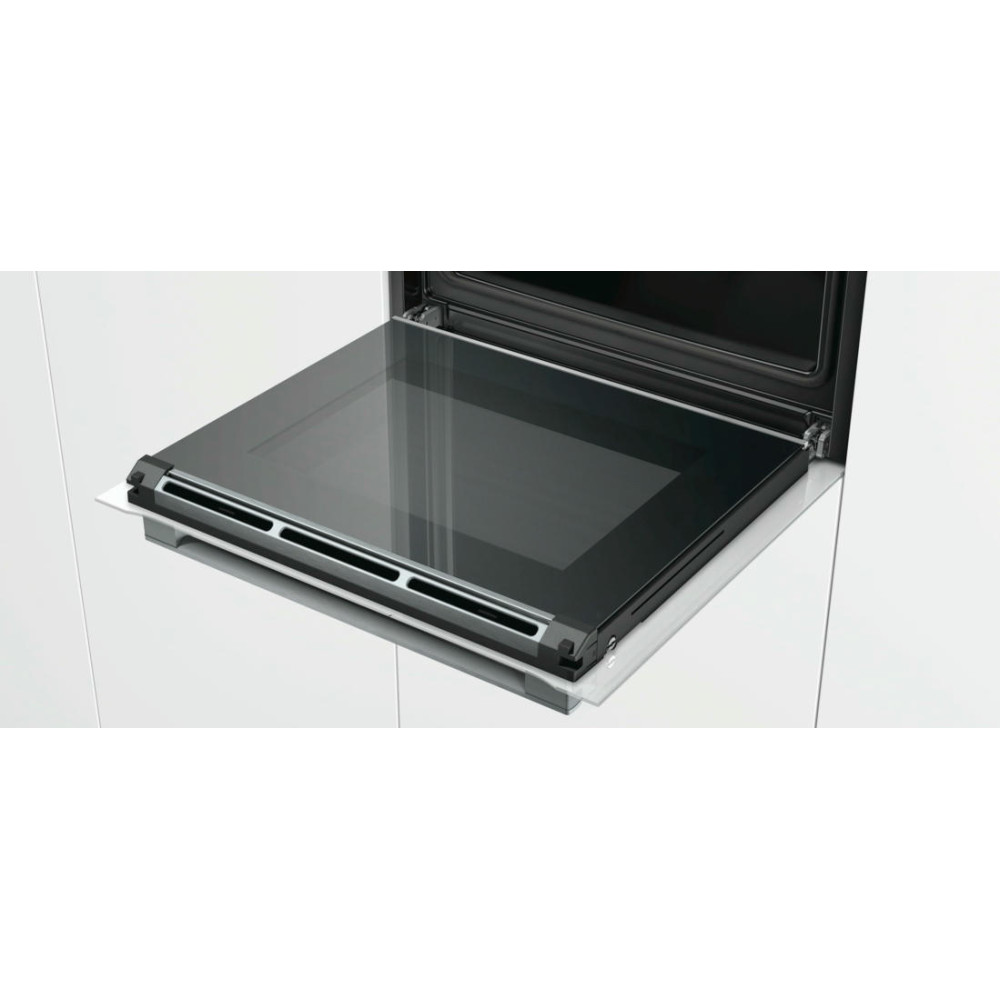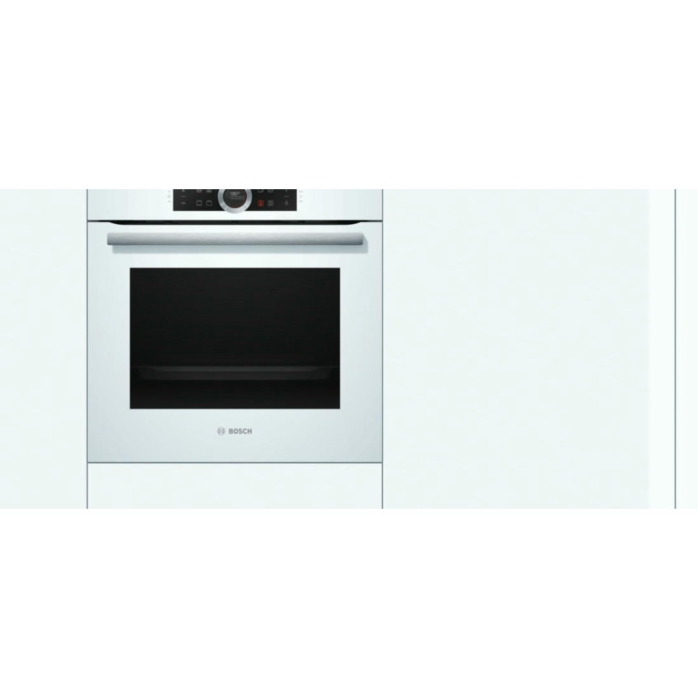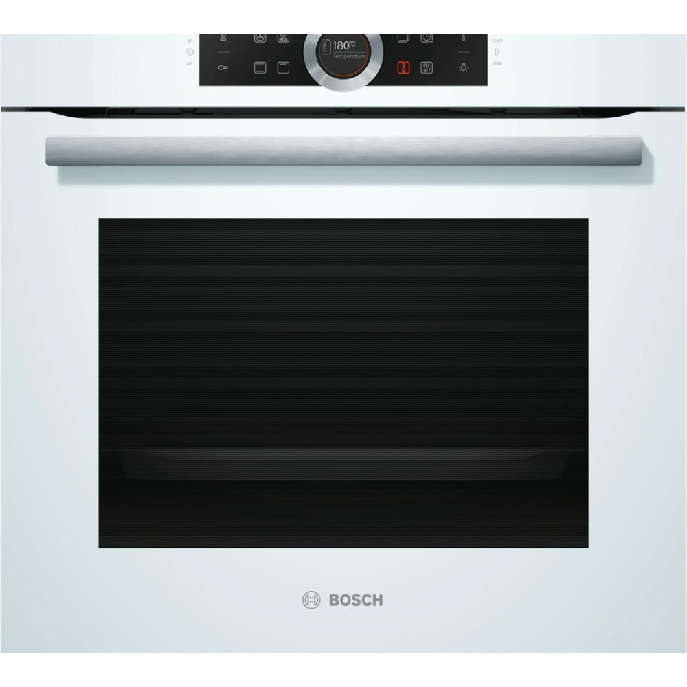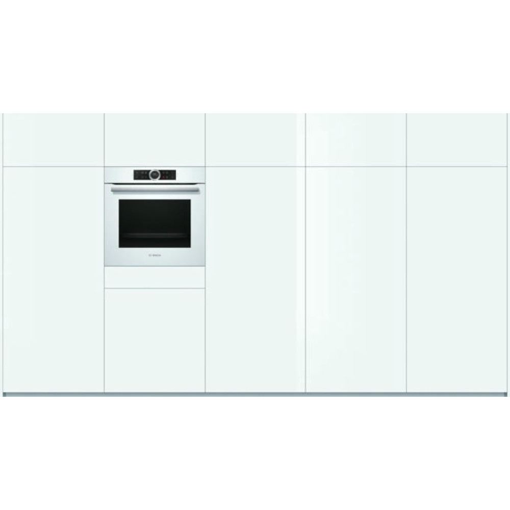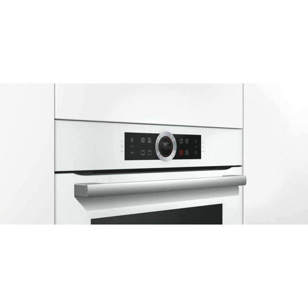 Духовой шкаф HBG633CW1S белого цвета имеет сенсорный дисплей и переключатель Control Ring, который представляет собой кольцо из нержавеющей стали с TFT- дисплеем внутри. При повороте переключателя на дисплее отображаются пункты меню. Система 4D Hotair распределяет жар по четырем уровням, что обеспечивает превосходный результат. Эмаль EcoClean на задней стенке расщепляет жир на воду и углекислый газ прямо во время приготовления.