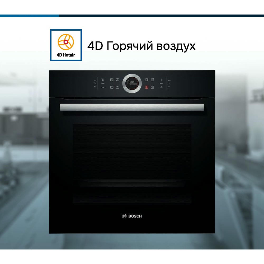 Бош HBG634BB1 оборудована 13 режимами нагрева, диапазон температур составляет от 30 до 300 _C. Выбрать нужный будет очень легко, потому что панель оснащена переключателем ControlRing и интерактивным TFT-дисплеем.