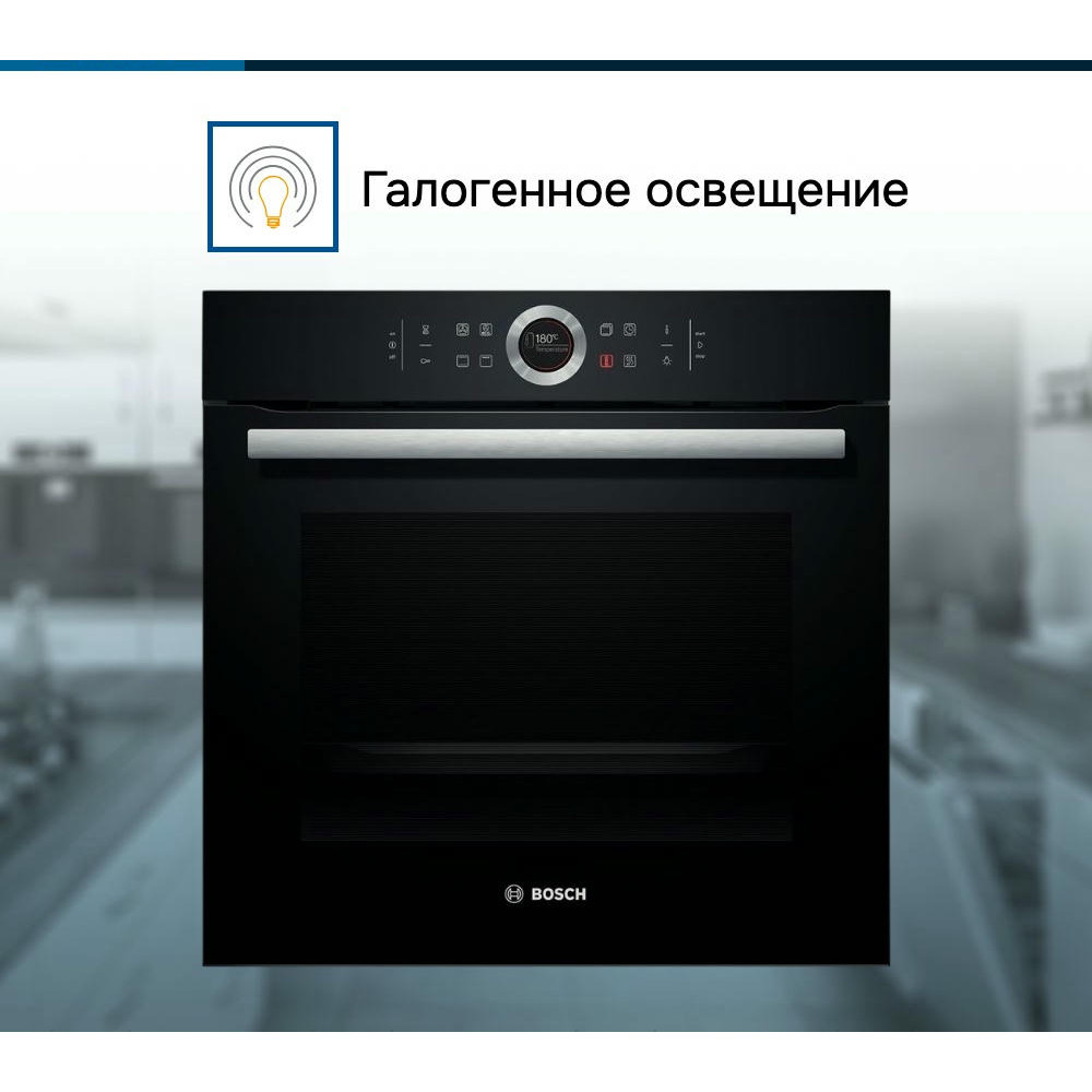 Духовой шкаф Bosch HBG634BB1 оснащен TFT-дисплеем, базовые установки которого помогут подобрать удобную лично вам яркость дисплея или выбрать ночной режим освещения. Само освещение можно включать и отключать, не прерывая процесс готовки.