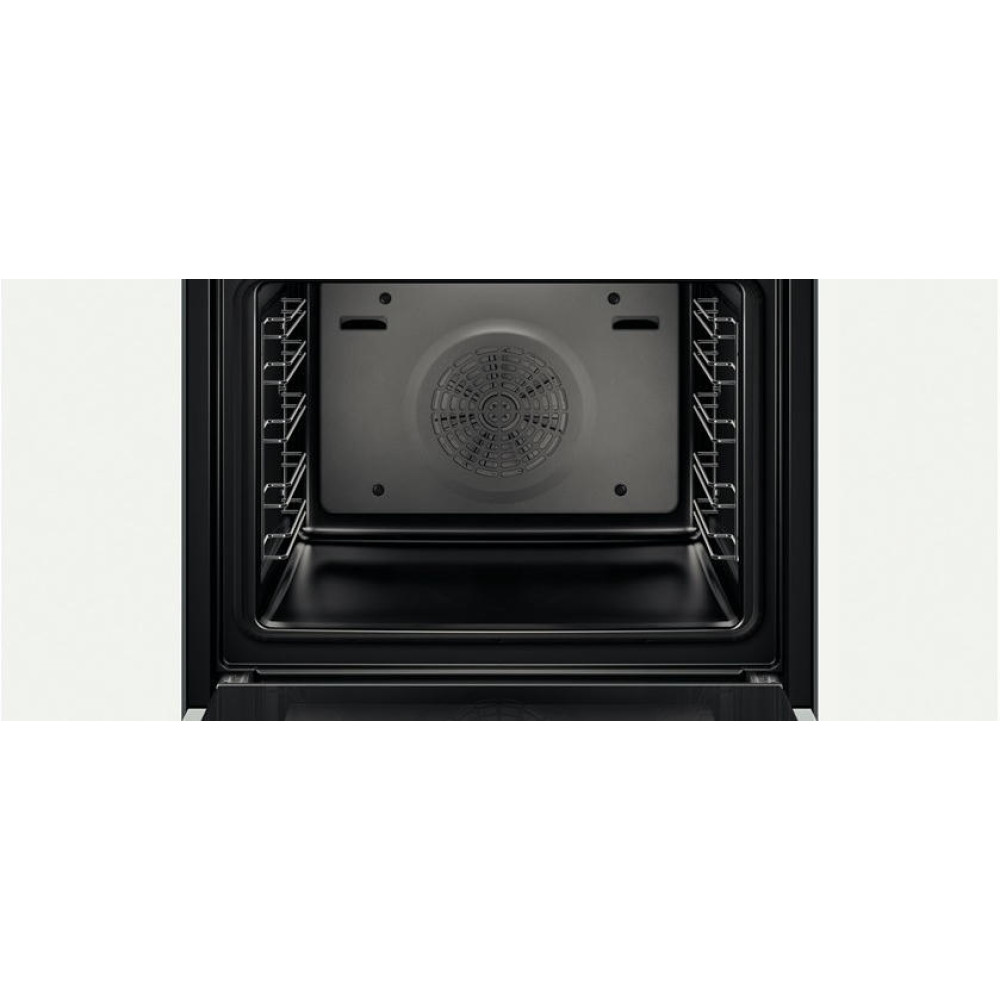Внутренние поверхности в Бош HBG634BW1 изготовлены из самоочищающихся панелей EcoClean (задняя стенка) и покрыты антрацитовой эмалью высокой очистки (боковые). Таким образом уход за духовкой не составит большого труда.