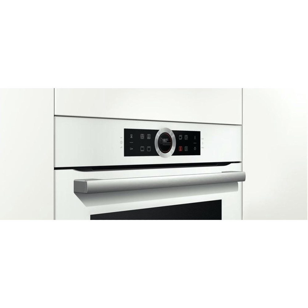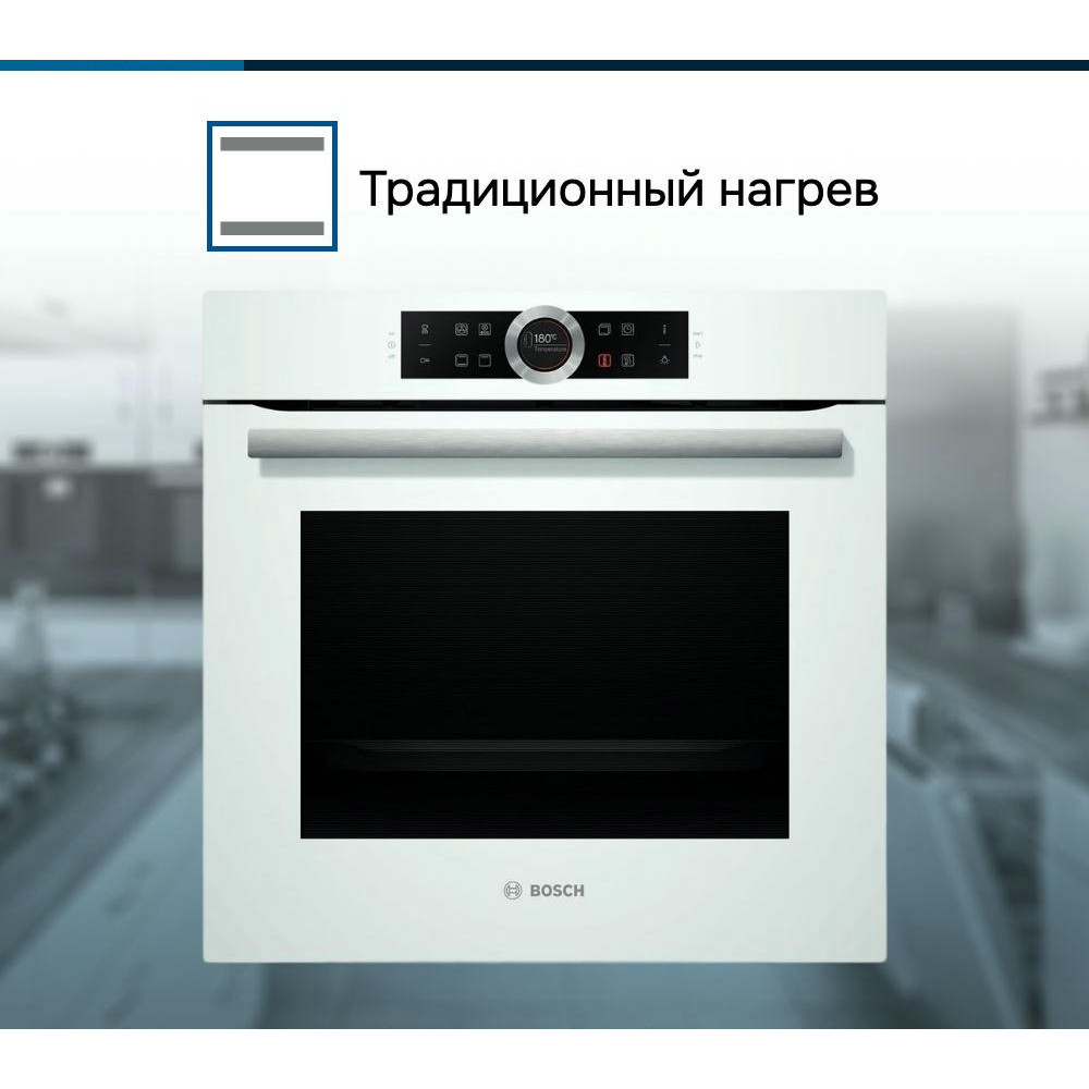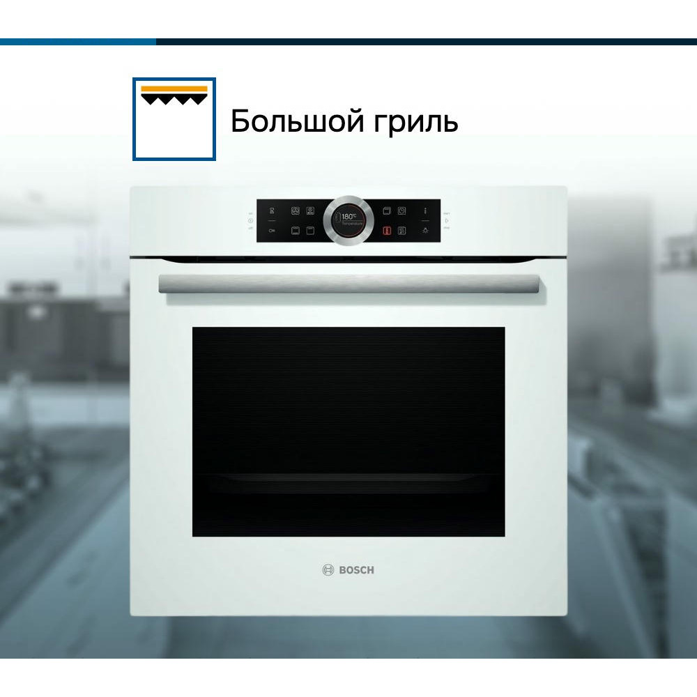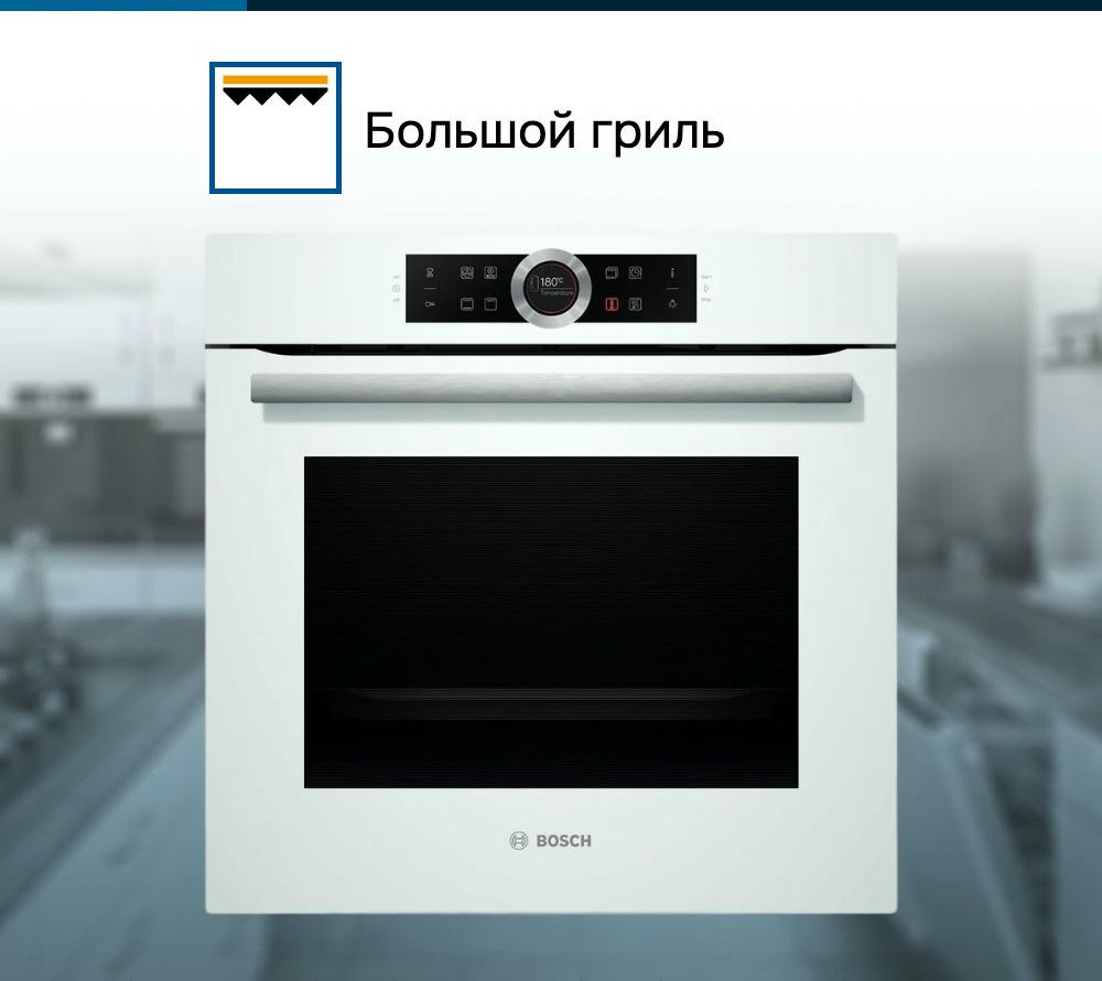 Духовой шкаф Bosch HBG634BW1 оснащен эргономичной панелью управления с поворотным переключателем Control Ring. Сенсорный дисплей с отображением меню, включающим все возможные подсказки и советы. Дополнительная кнопка «Info» значительно упростит выбор режима.