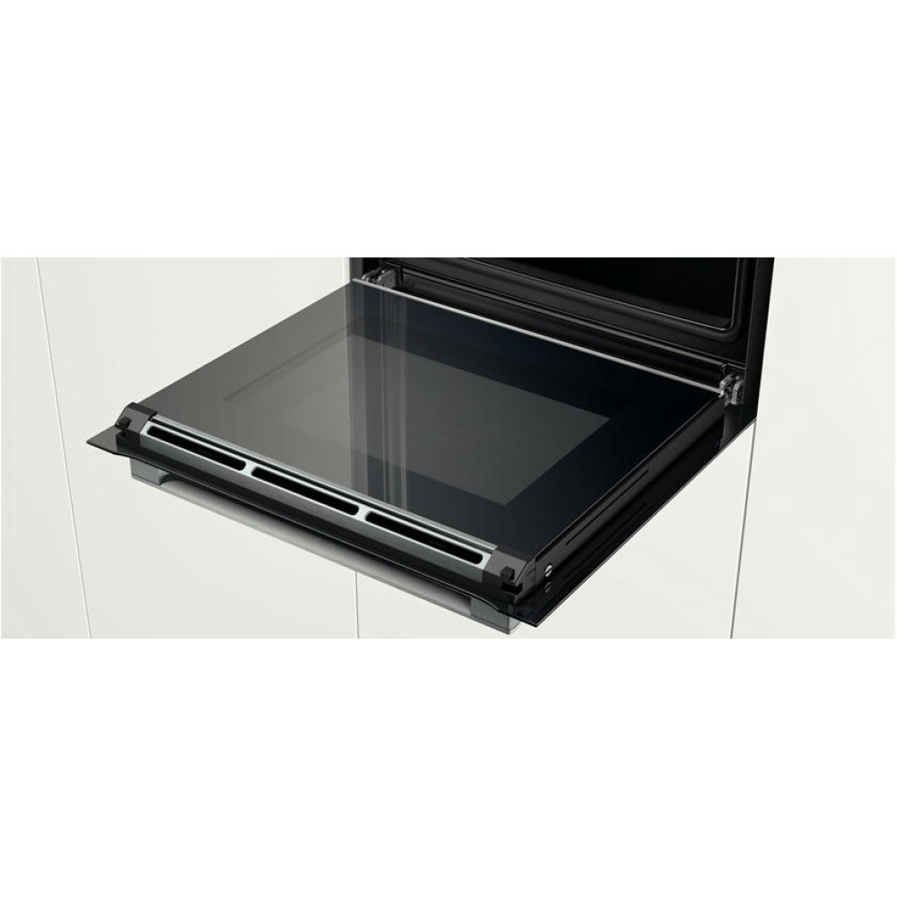 Духовой шкаф Bosch HBG636BB1 выполнен в черном цвете с фурнитурой в цвете нержавеющей стали. Утапливаемый поворотный переключатель ControlRing удобен в эксплуатации. Управление основано на сенсорных кнопках и сенсорных полях дисплея, на панели нет выступающих деталей, подверженных загрязнениям. Амортизатор SoftClose способствует мягкому закрыванию дверцы.