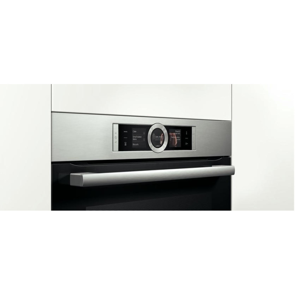 На панели управления расположен эргономичный черный сенсорный дисплей с кольцевым индикатором: новинка, помогающая ориентироваться в многочисленных командах меню. Выступающих поворотных ручек в этой модели нет — по отзывам пользователей, гладкая лицевая поверхность меньше загрязняется.