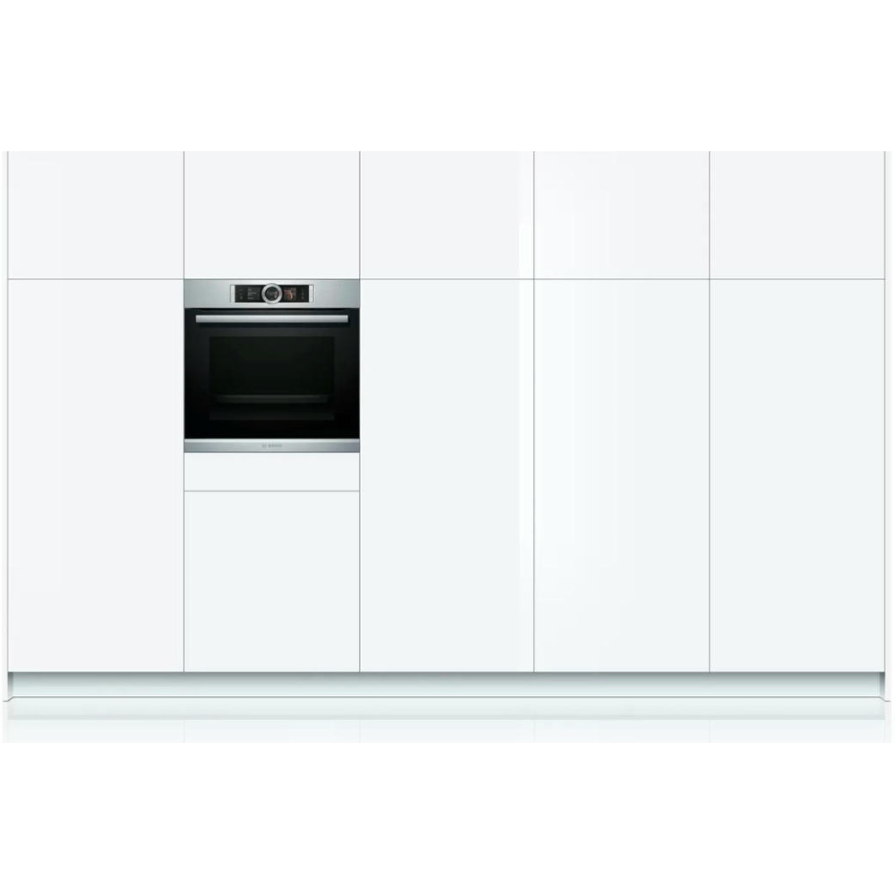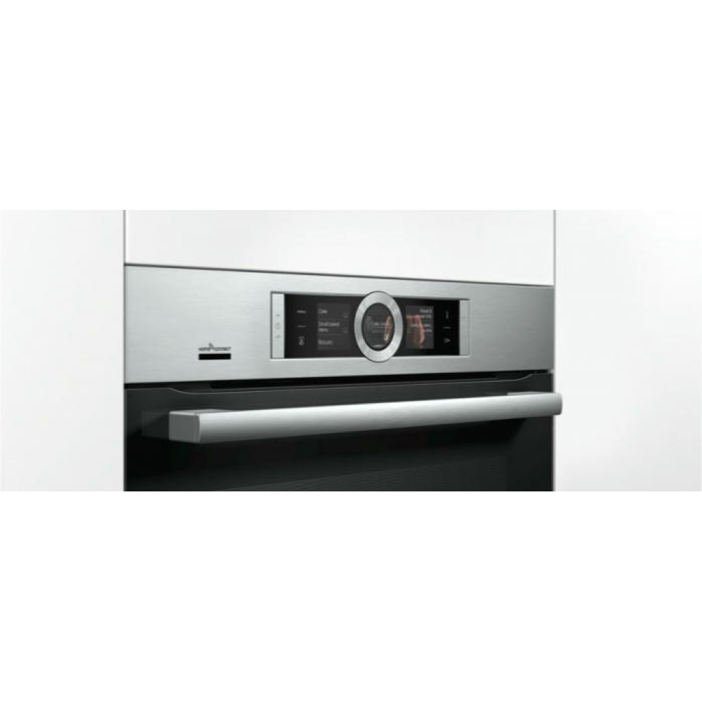 Духовой шкаф Bosch HBG656ES6 оснащен сенсорным дисплеем и переключателем ControlRing, который позволяют выбирать из 13 режимов нагрева. Диапазон температур 30-300°C позволяет готовить разнообразные блюда — от жареного мяса до йогуртов, от тортов до запеканок. Вентилятор охлаждает фронтальную поверхность и она не нагревается выше 40°C.