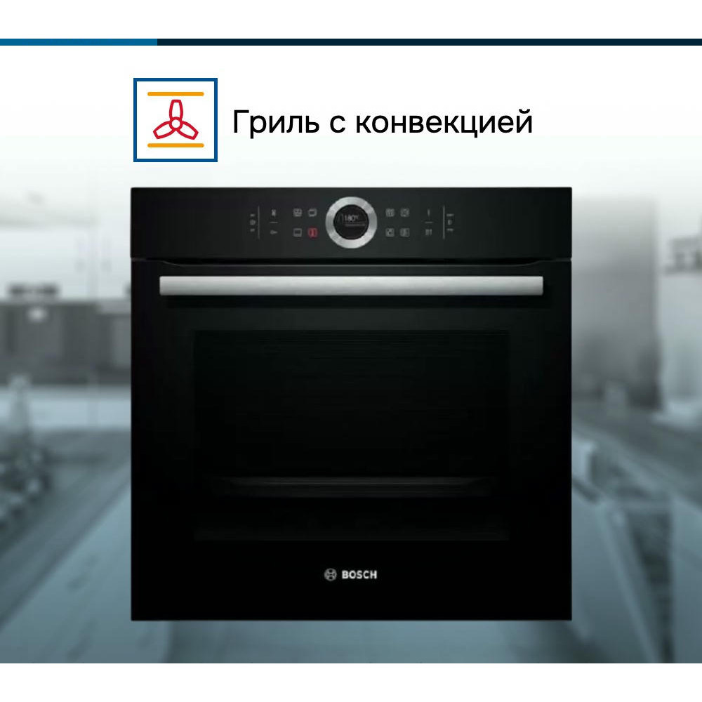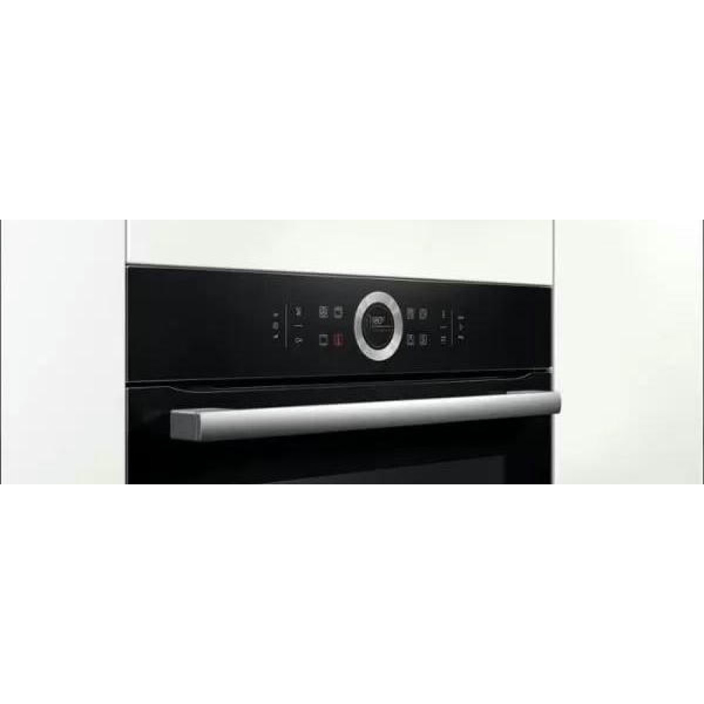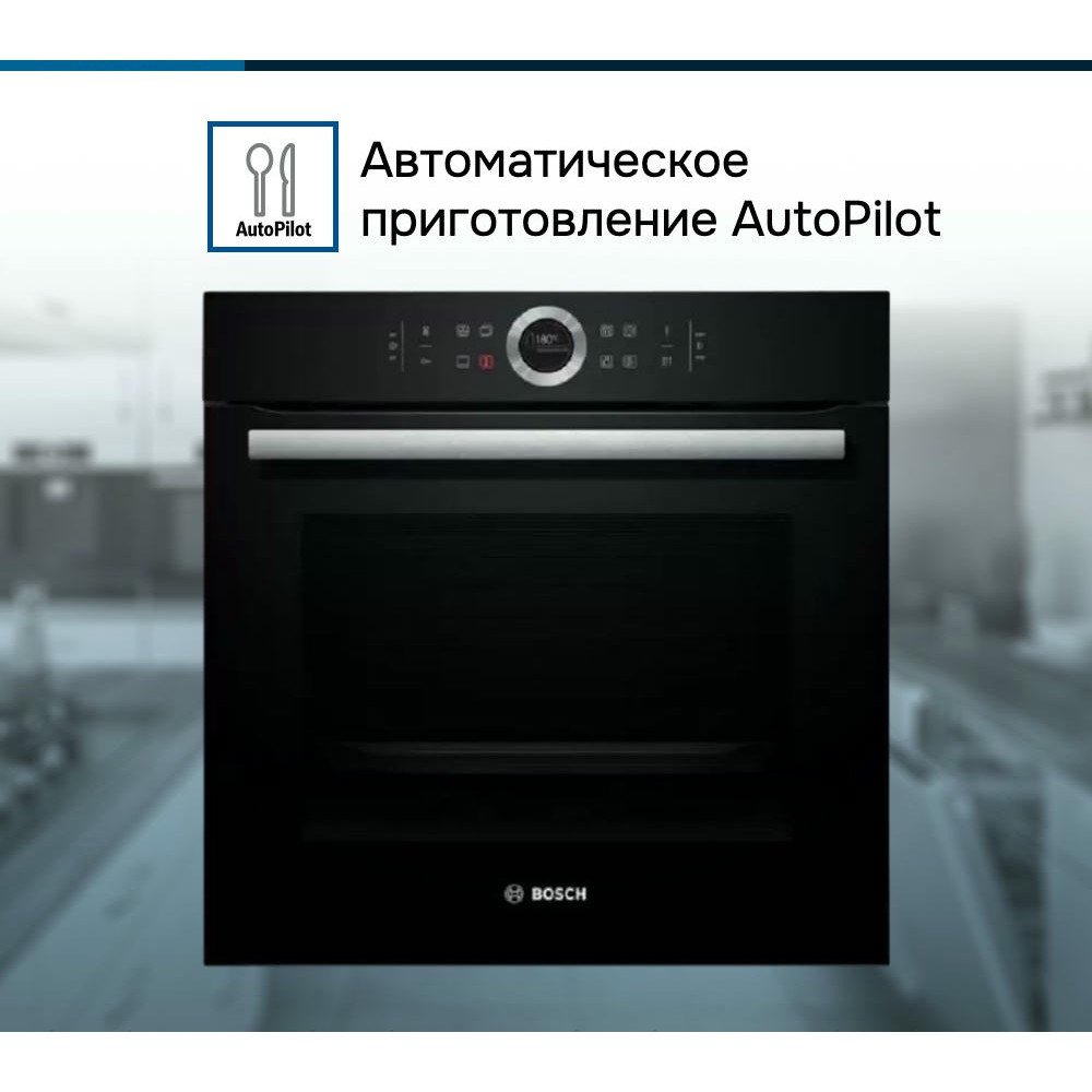 Электрический духовой шкаф Bosch HBG672BB1S — модель с 8 режимами нагрева и галогенным внутренним освещением. Интерактивный TFT-дисплей и переключатель ControlRing облегчат эксплуатацию прибора. С функцией AutoPilot готовить стало проще. Просто выберите одну из 10 программ, укажите вес блюда и духовка запустит автоматическую программу с оптимальным режимом нагрева и временем приготовления. Пиролитическая очистка предполагает под собой высокотемпературное воздействие в сочетании с каталитическими панелями сжигают сильные загрязнения, превращая их в пепел. 4-слойное остекление дверцы не дает нагреться наружному стеклу свыше 30_. Доводчик SoftMove плавно закрывает дверцы без шума и вибрации. Блокировка от детей предотвращает случайное включения устройства или изменение его настроек.