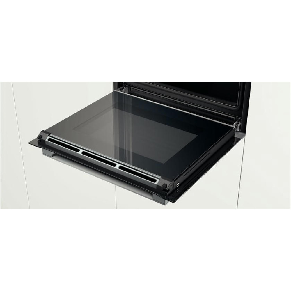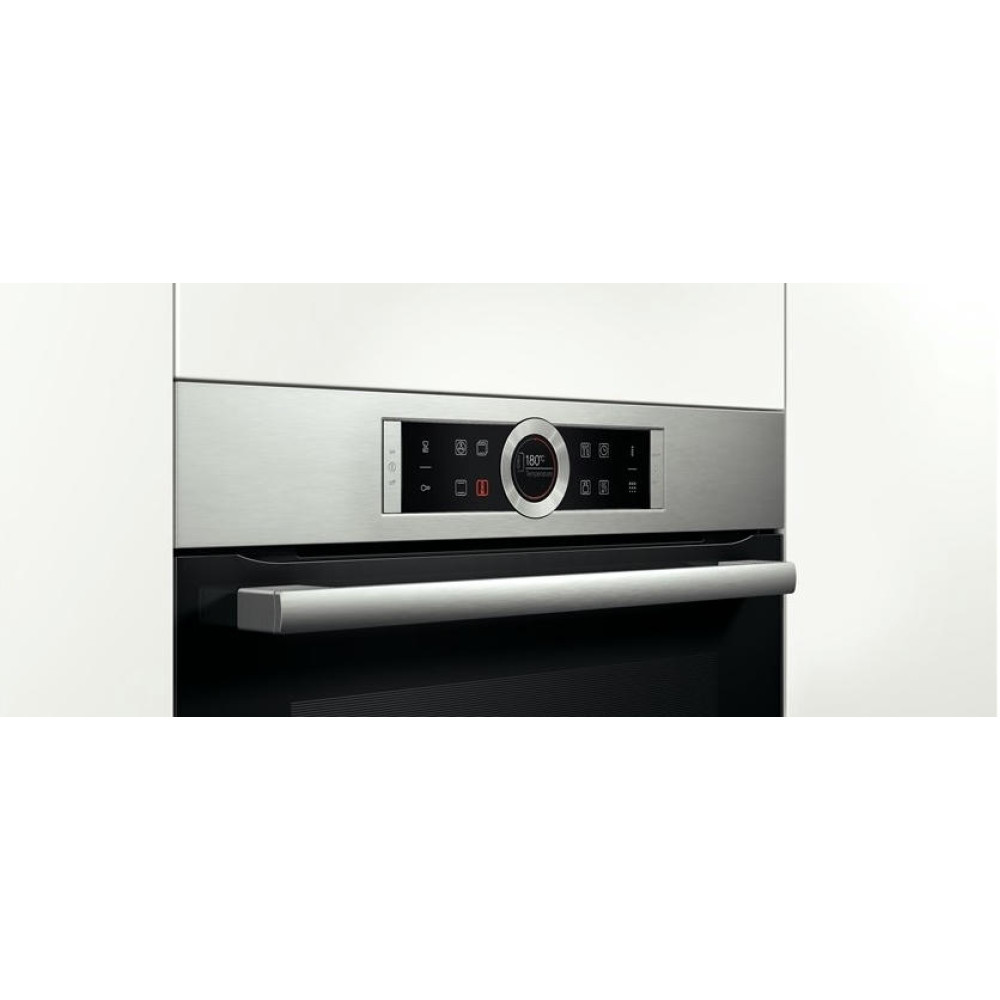 Духовой шкаф Bosch HBG6750S1 оснащен пиролитической очисткой: загрязнения под действием высокой температуры сжигаются, а оставшийся пепел легко убирается влажной тканью. Во время очистки дверца духового шкафа блокируется, что повышает уровень безопасности. Переключатель Control Ring обеспечивает комфортное управление режимами и функциями. Блокировка панели управления предотвращает случайное включение.