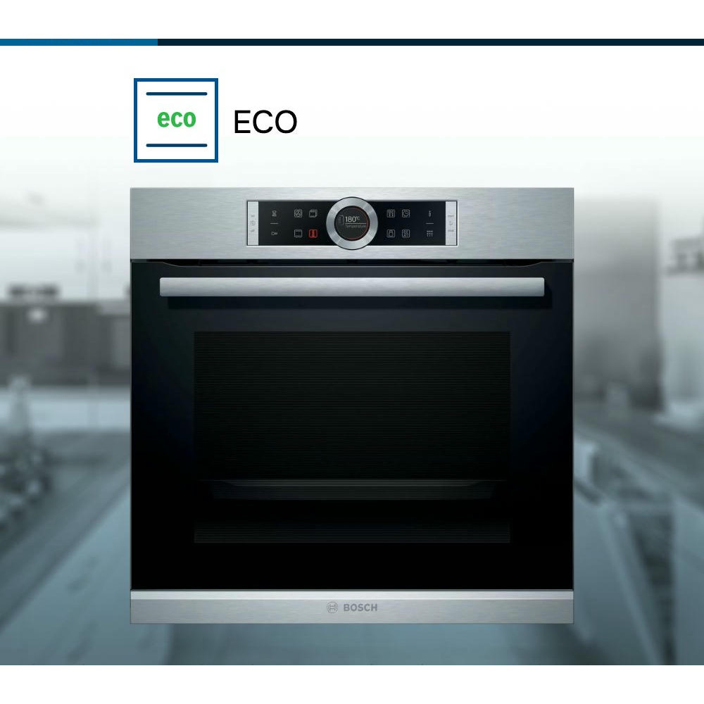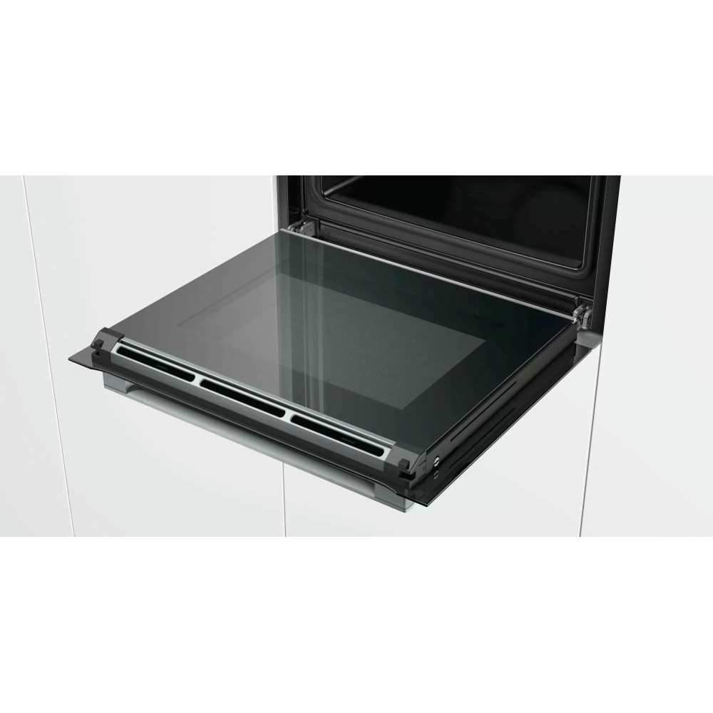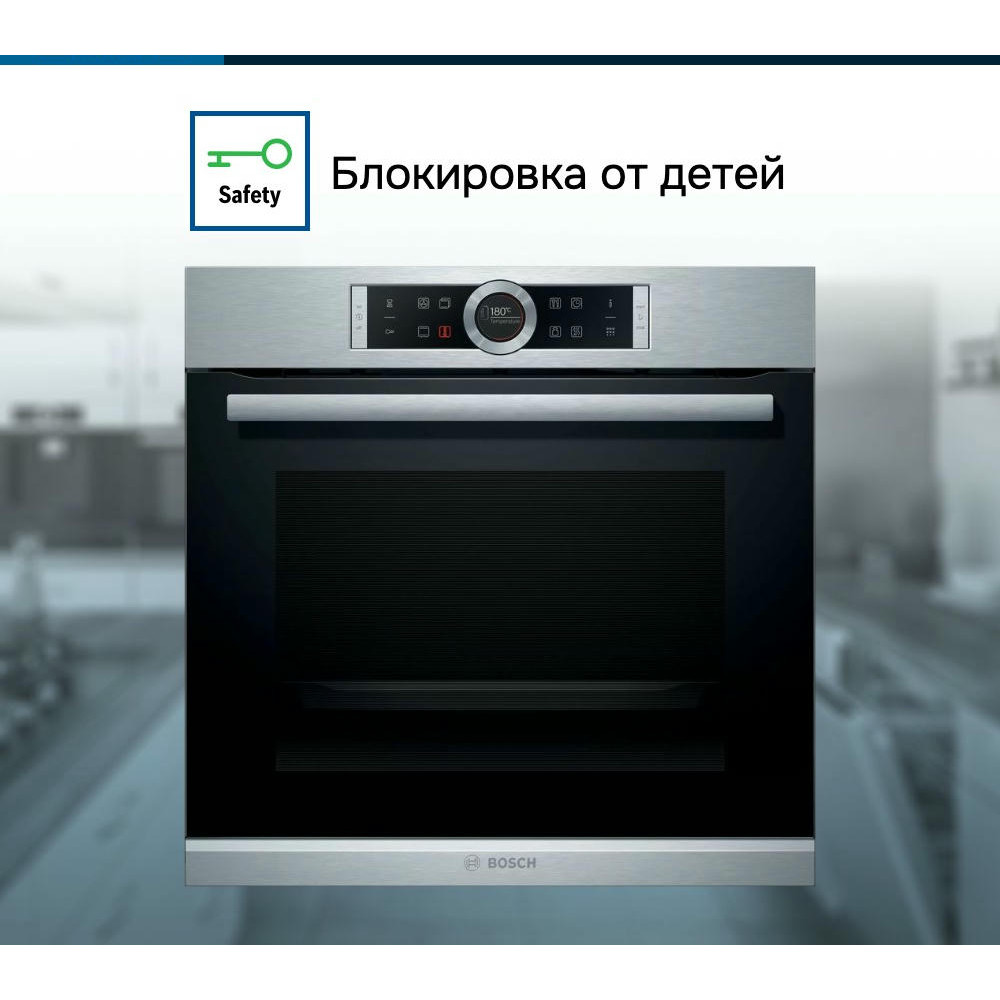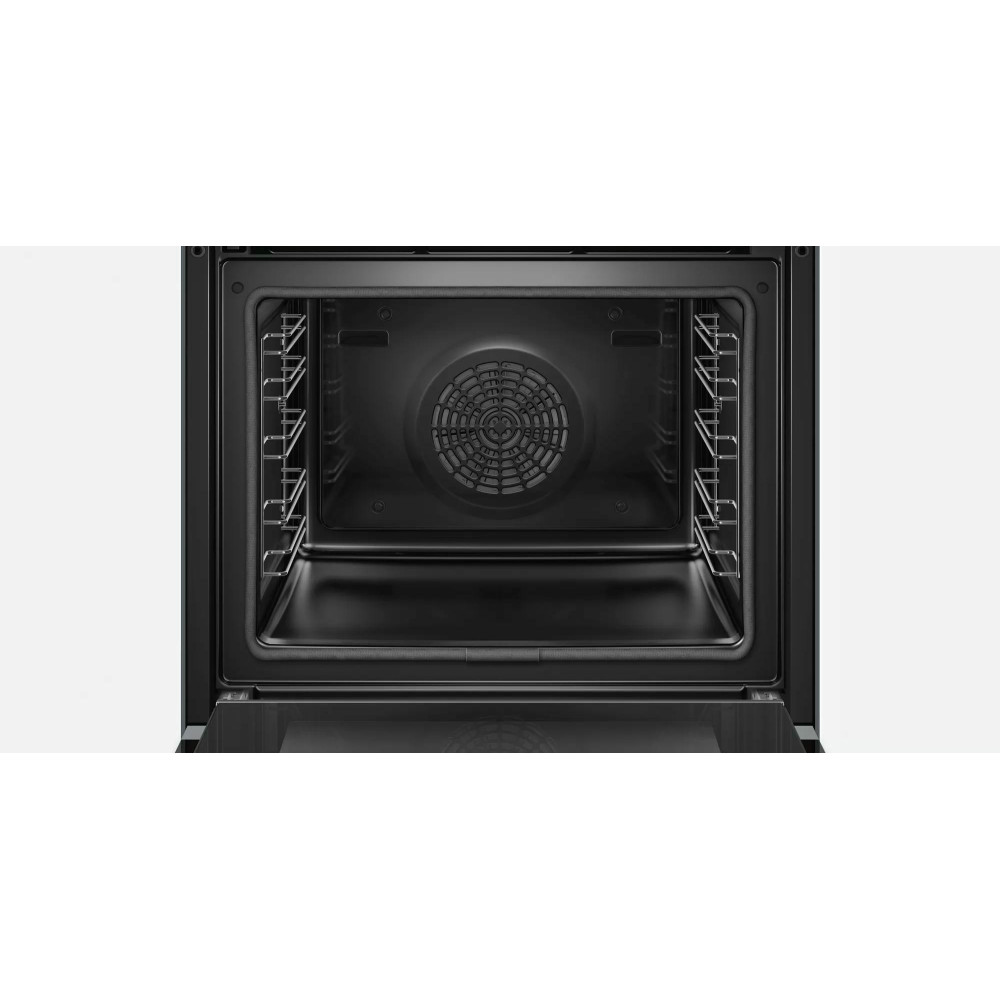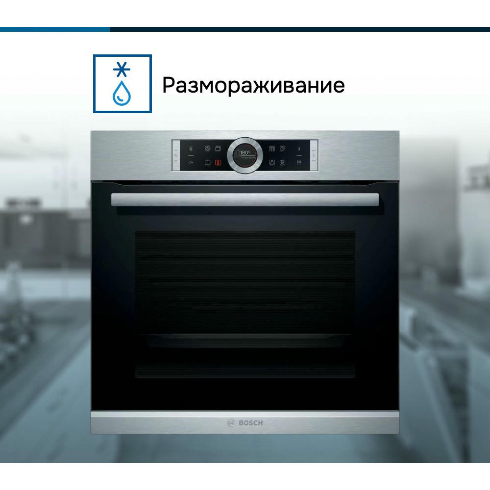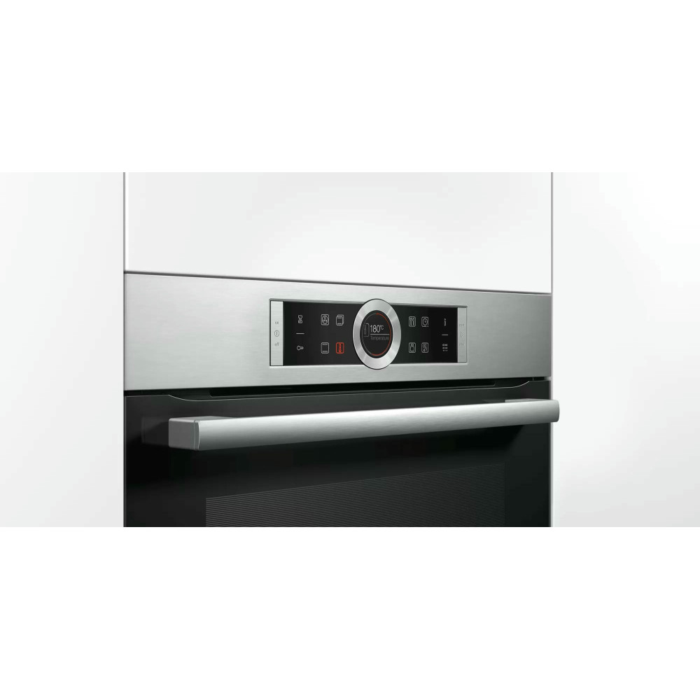 Духовой шкаф Bosch HBG675BS1 — это электрическая независимая модель из линейки Serie | 8. Ее внутренний объем составляет 71 литр, благодаря чему есть возможность запекать большие блюда. Она оформлена в черном цвете, благодаря чему отлично впишется в любой современный кухонный интерьер — например, в стиле хай-тек. Управление осуществляется посредством использования сенсорных кнопок и Control Ring.