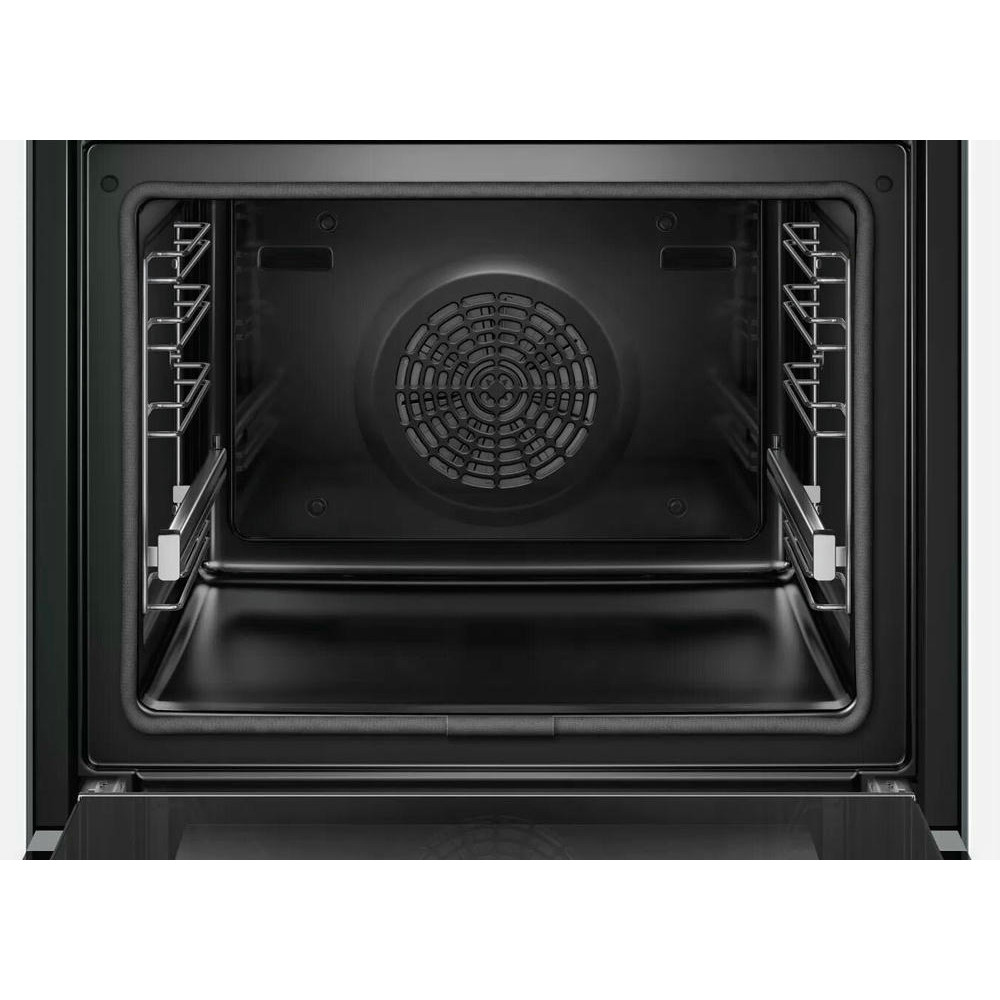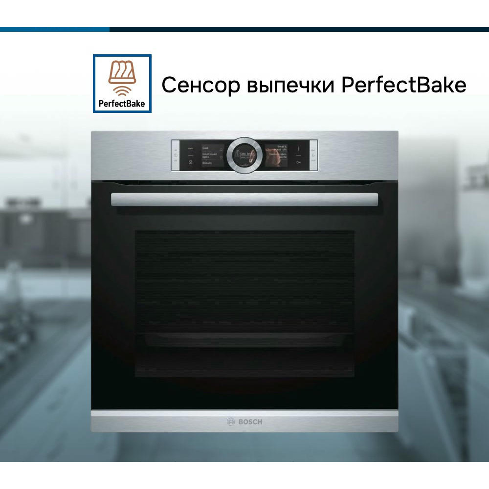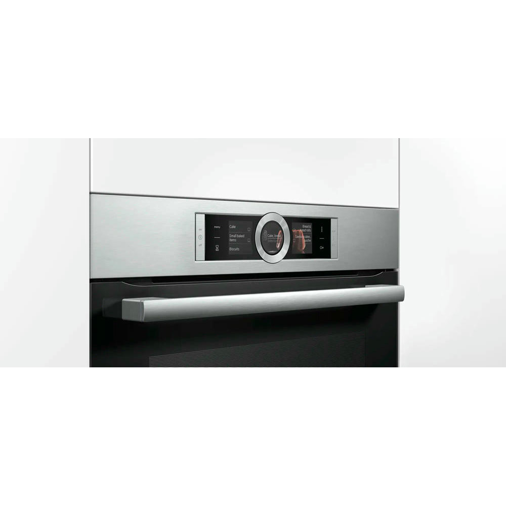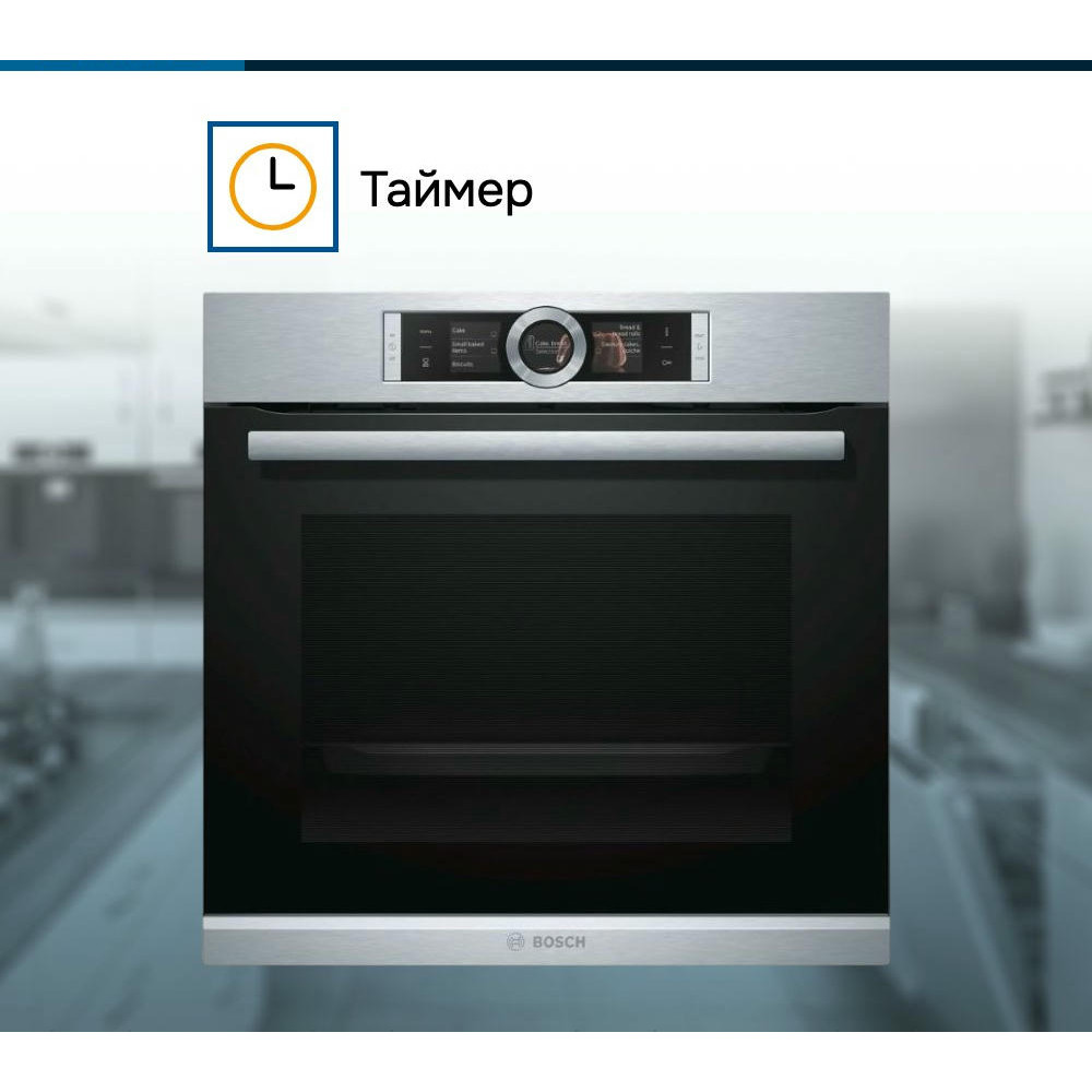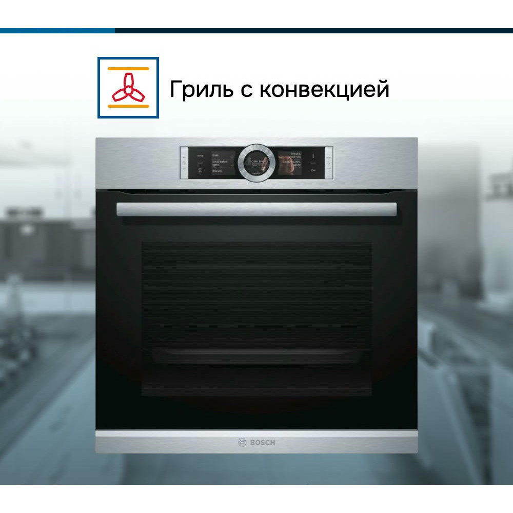 Духовой шкаф Bosch HBG6764S1 — это электрическая независимая модель из линейки Serie | 8. Ее внутренний объем составляет 71 литр, благодаря чему есть возможность запекать большие блюда. Она оформлена в цвете «нержавеющая сталь», благодаря чему отлично впишется в любой современный кухонный интерьер — например, в стиле хай-тек. Управление осуществляется посредством использования сенсорных кнопок и Control Ring. Благодаря многофункциональным часам Easy Clock можно с легкостью отслеживать время до окончания работы одной из программ.