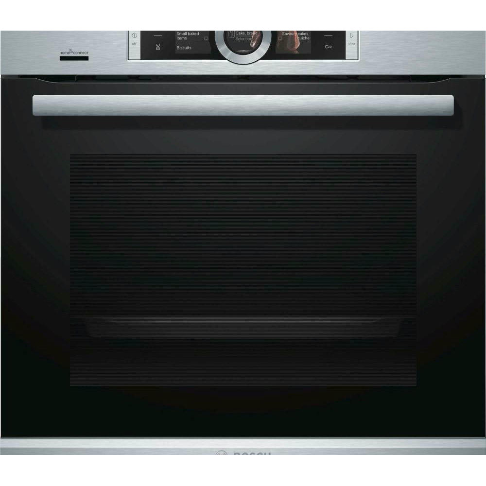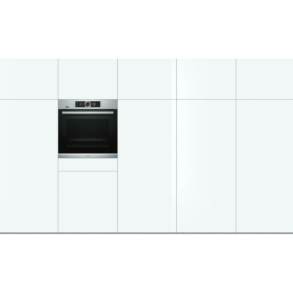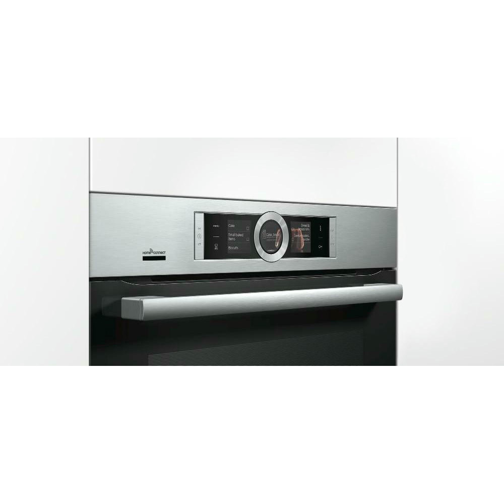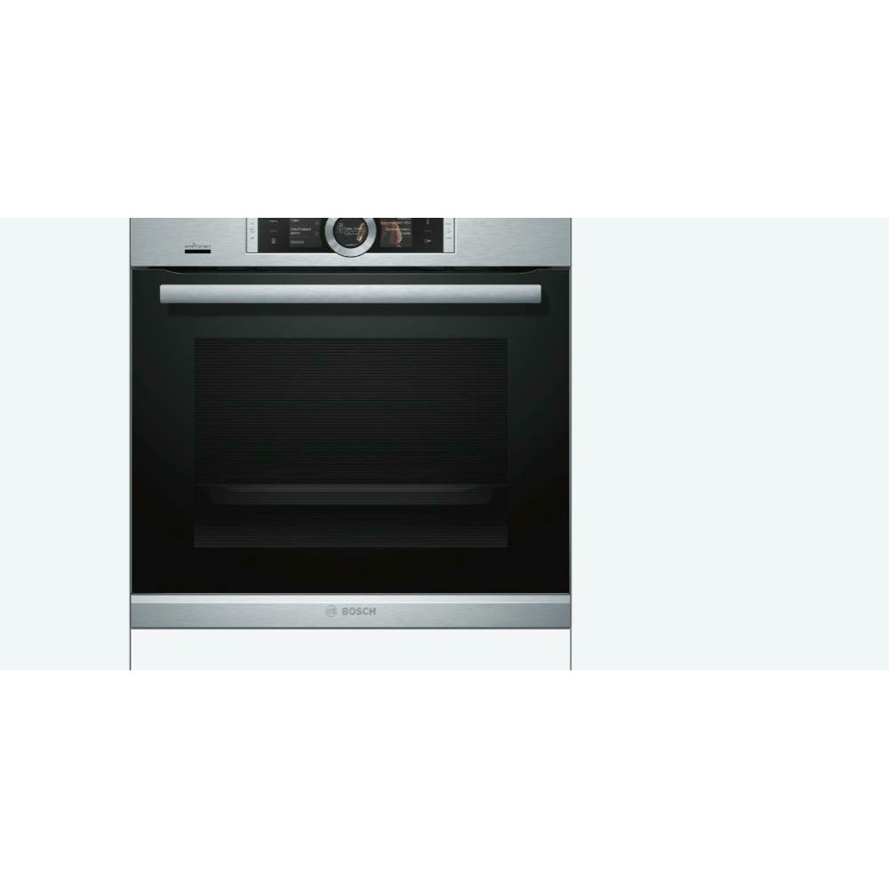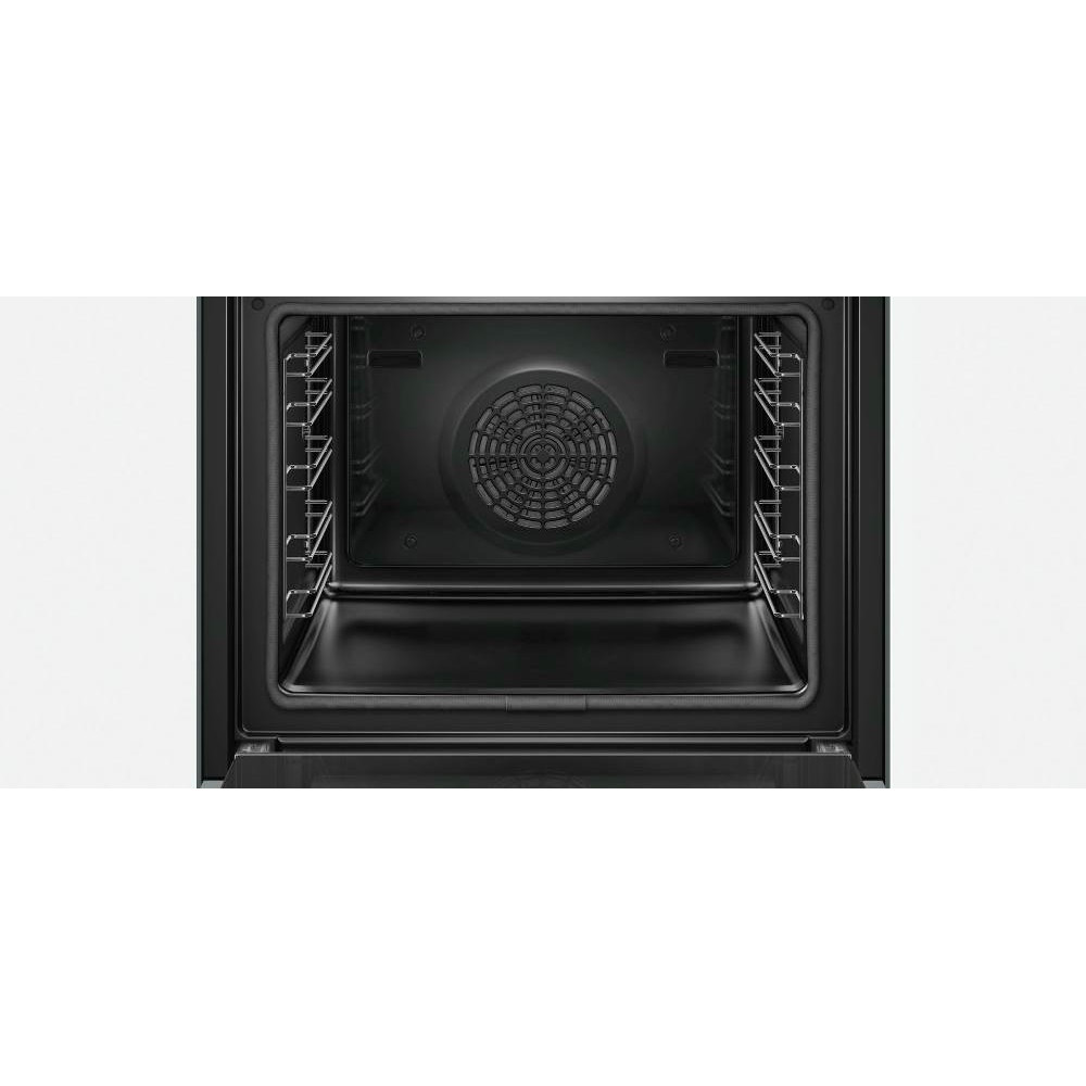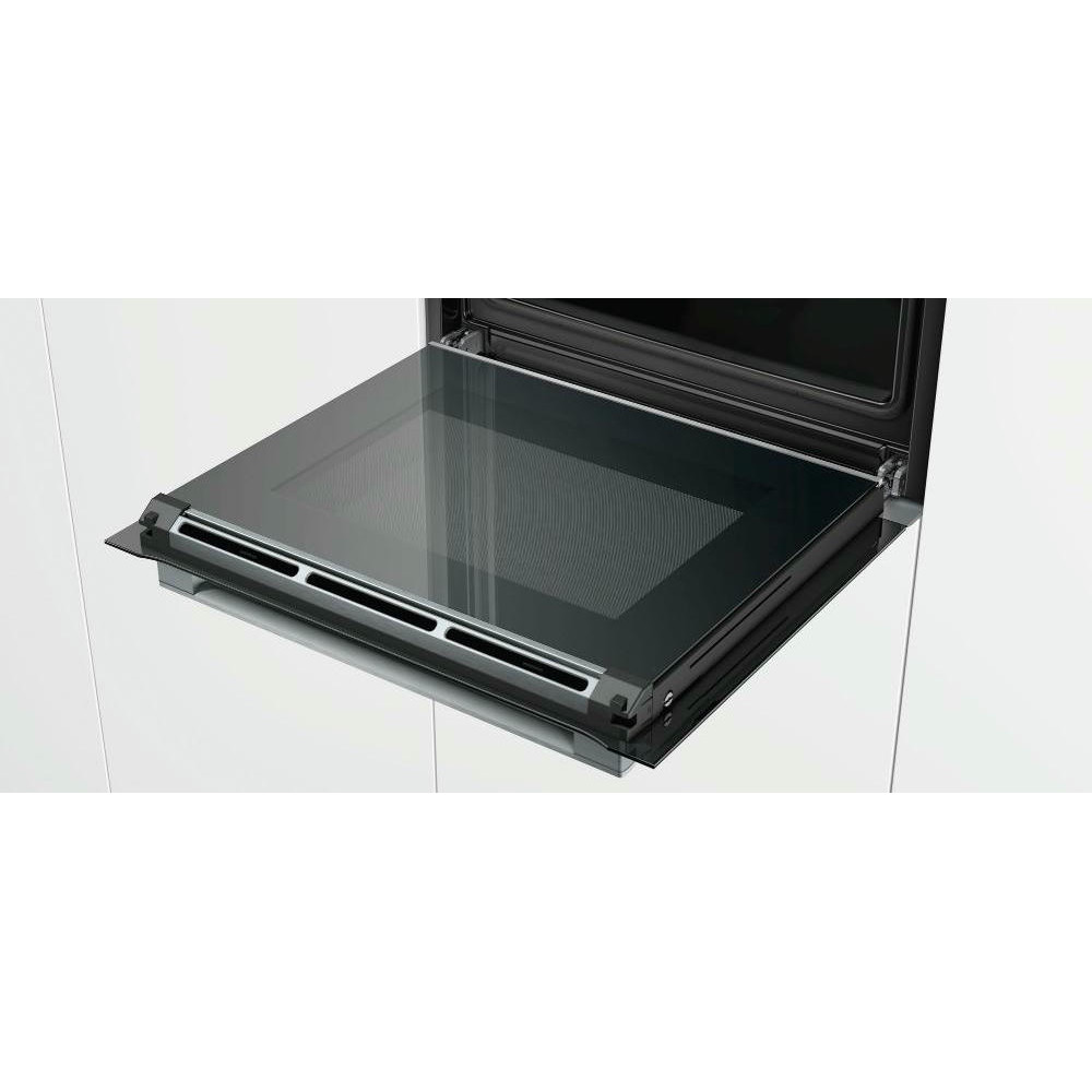 Духовой шкаф Bosch HBG676ES6 оснащен пятью уровнями установки противней, направляющие — навесные, возможна установка телескопических. Дверца имеет четырёхслойное остекление. Наружный фронт нагревается не более чем до 30_С. Безопасность эксплуатации обеспечивают защитные функции — блокировка от детей с возможностью настройки, индикация остаточного тепла и система охлаждения. В комплект входит комбинированная решётка и два противня (эмалированный и универсальный, пригодный для пиролиза).