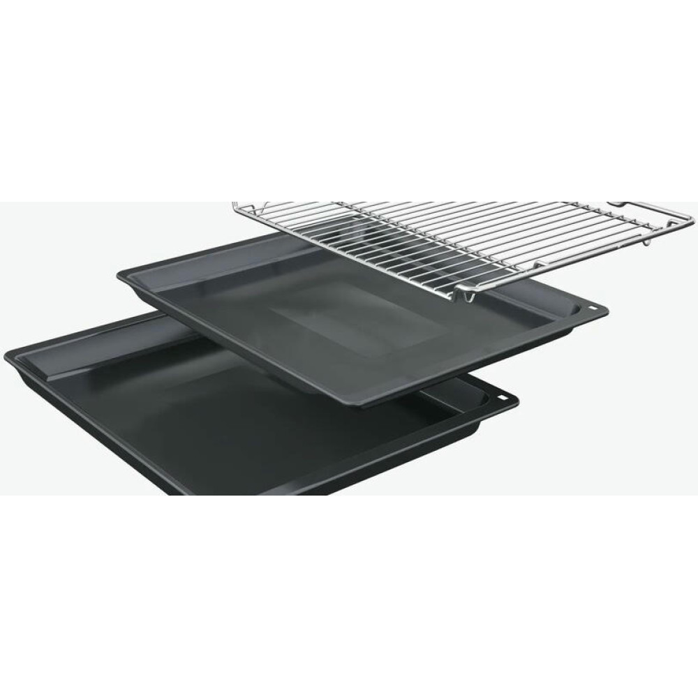 Внутренний объем духового шкафа составляет 71 литр, что обеспечивает достаточно пространства для приготовления больших порций или нескольких блюд одновременно. Галогенное освещение позволяет контролировать процесс приготовления, а система очистки EcoClean облегчает уход за прибором. Дверца шкафа оснащена амортизатором SoftClose для мягкого и тихого закрытия, а также блокировкой от детей для обеспечения безопасности. Духовой шкаф Bosch HBG7241B1 обладает системой охлаждения и подключается к сети с напряжением 220-240 В и мощностью 3.6 кВт. В комплекте с прибором идут решетка, эмалированный противень и универсальный противень.
