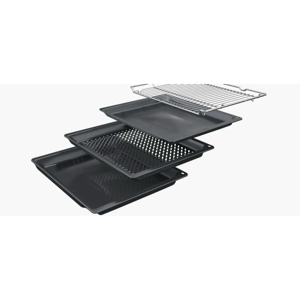 Прибор оснащен многофункциональными часами Easy Clock и таймером, что позволяет точно контролировать время приготовления. Для удобства пользователей в духовом шкафе предусмотрено 14 режимов нагрева, включая 3D-горячий воздух, верхний/нижний жар, большой и малый гриль, режим для пиццы, подогрев посуды, поддержание температуры и даже функцию Air Fry для приготовления блюд без лишнего масла. Система очистки AquaClean позволяет легко и быстро очистить духовку после использования. Дверца шкафа оснащена амортизатором SoftMove для мягкого и бесшумного закрывания, а блокировка от детей обеспечивает безопасность использования прибора в семьях с маленькими детьми.
