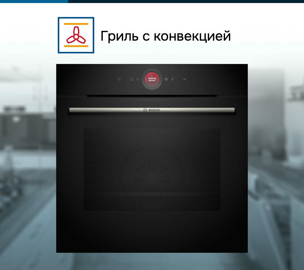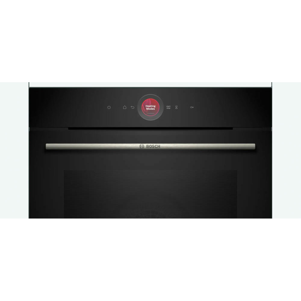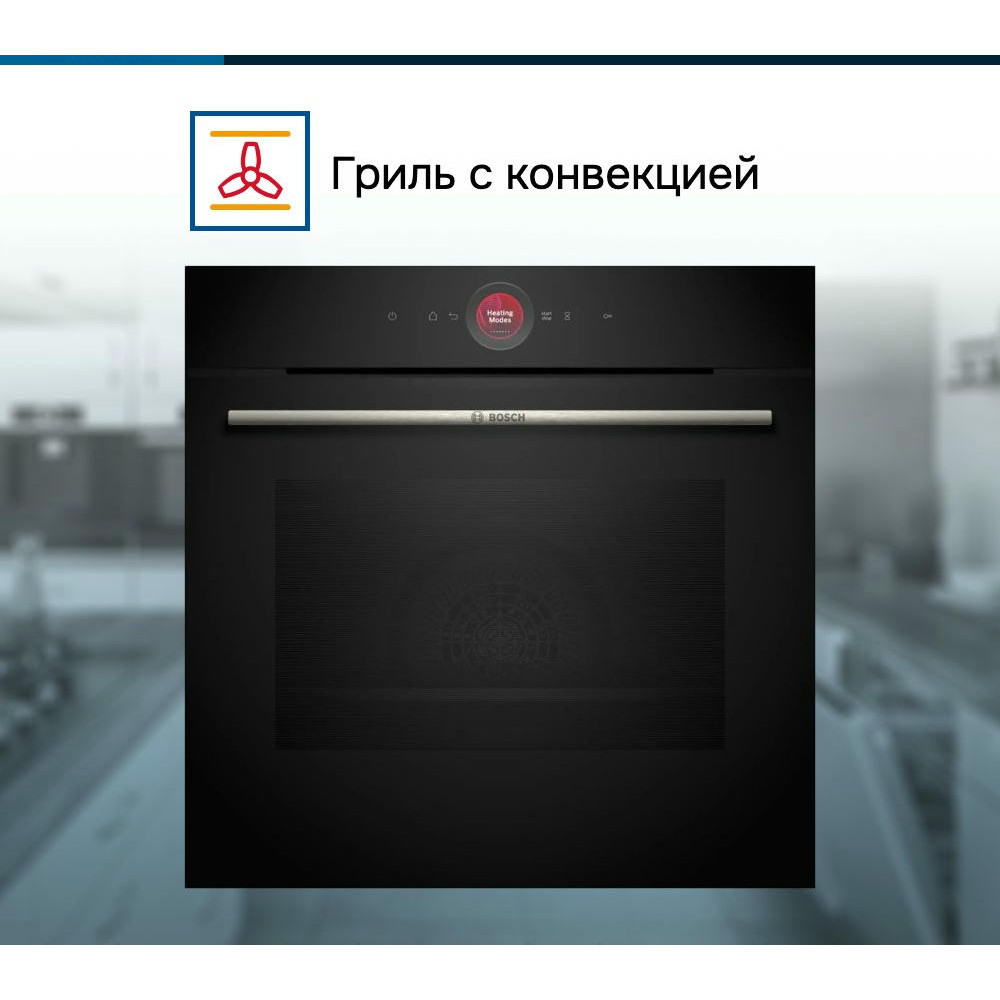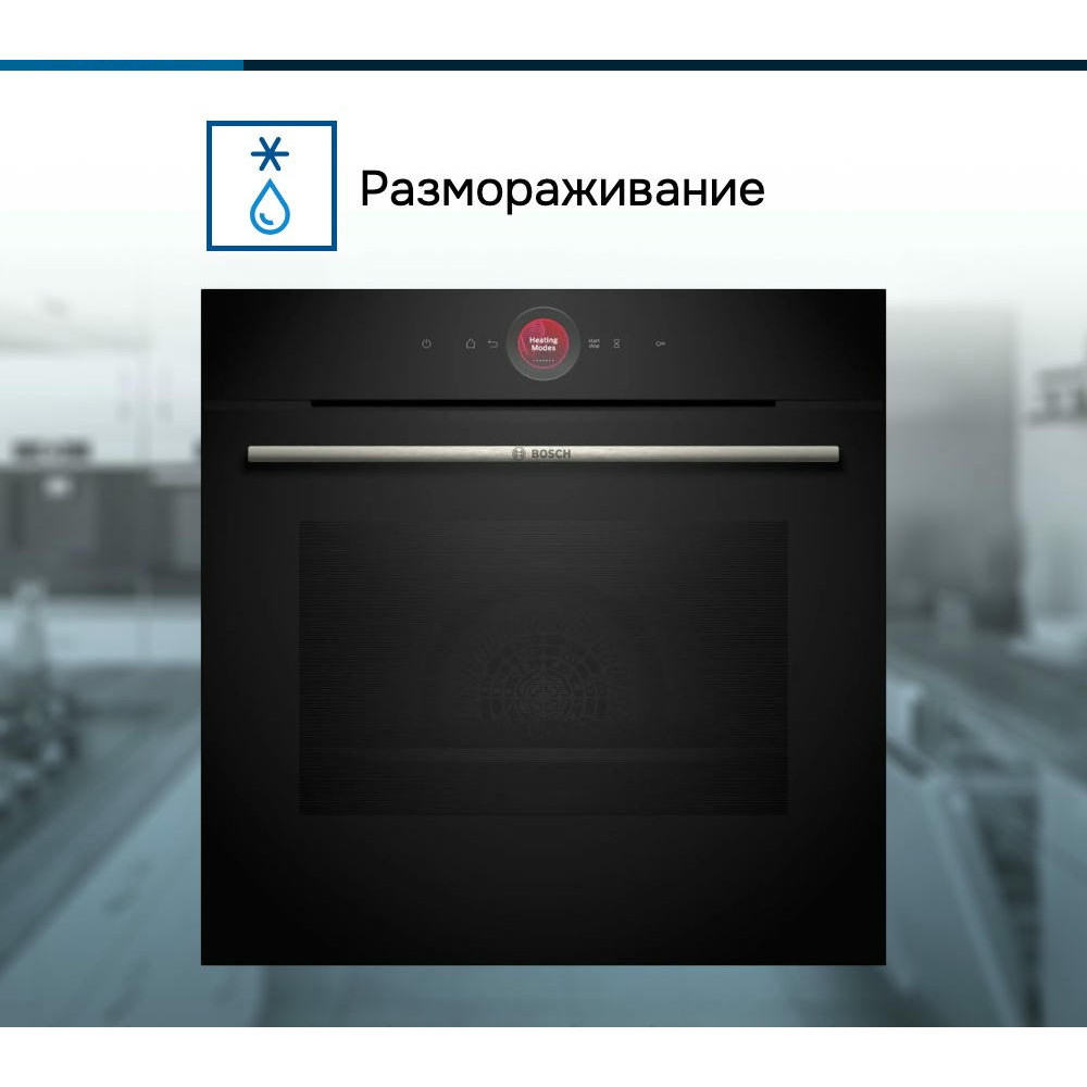 Духовой шкаф оснащен функцией Home Connect, которая позволяет управлять им дистанционно с помощью смартфона или планшета. Всего доступно 14 режимов нагрева, включая 3D-горячий воздух, верхний/нижний жар, большой гриль, режим для пиццы и другие. Диапазон температур варьируется от 30 до 300 градусов, что позволяет готовить самые разные блюда. Внутренний объем духового шкафа составляет 71 литр, что позволяет готовить большие порции еды для всей семьи. Внутреннее освещение на основе галогеновых ламп обеспечивает хорошую видимость в процессе приготовления пищи. Дверца шкафа откидная, с амортизатором SoftOpen для мягкого и безопасного открытия. Очистка духового шкафа производится с помощью системы EcoClean. Это специальные панели, расположенные на задней стенке, которые абсорбируют и разрушают жир и остатки пищи при повышенной температуре. Благодаря этому, вам не придется тратить много времени и усилий на очистку духового шкафа.