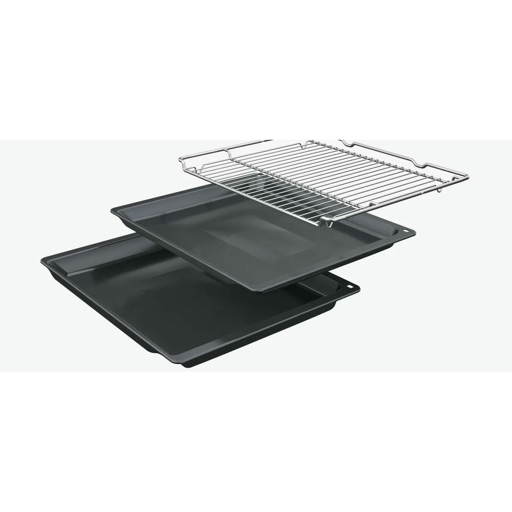 Автоматический быстрый разогрев позволяет сэкономить время на подготовку к готовке, а система очистки EcoClean облегчает уборку после использования. Благодаря трехслойному остеклению, внешняя температура стекла не превышает 30 градусов, что делает использование шкафа безопасным. Дверца оснащена амортизатором SoftOpen, который обеспечивает плавное и тихое открытие. Блокировка от детей предотвращает случайное включение прибора. В комплекте с духовым шкафом идут комбинированная решетка, эмалированный противень и универсальный противень, что позволяет готовить различные блюда. Духовой шкаф Bosch HBG7341W1 - это идеальное сочетание стиля, функциональности и безопасности.