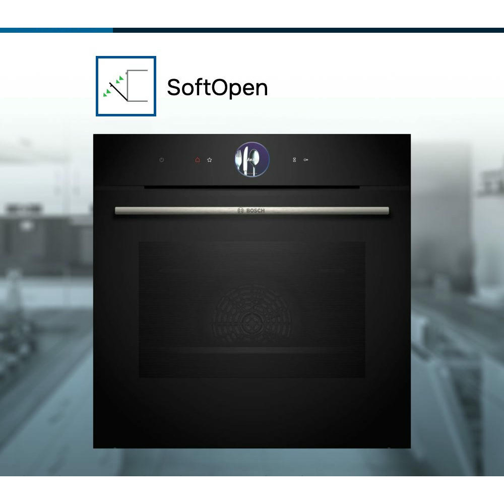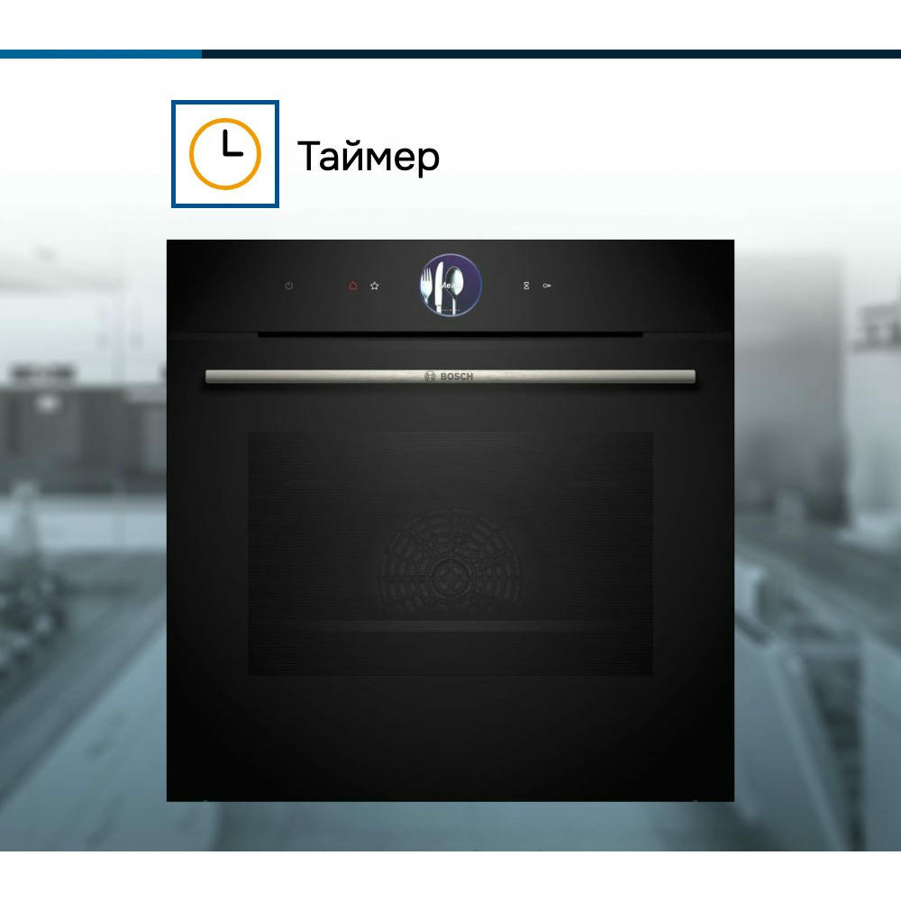 С первого взгляда, духовой шкаф привлекает своим стильным черным цветом, который легко впишется в любой интерьер. Сенсорное управление и 2.5_ цветной TFT дисплей с сенсорными кнопками делают использование удобным и простым. Электронные часы и таймер помогут контролировать процесс приготовления, а функция Home Connect позволит управлять духовкой даже на расстоянии.