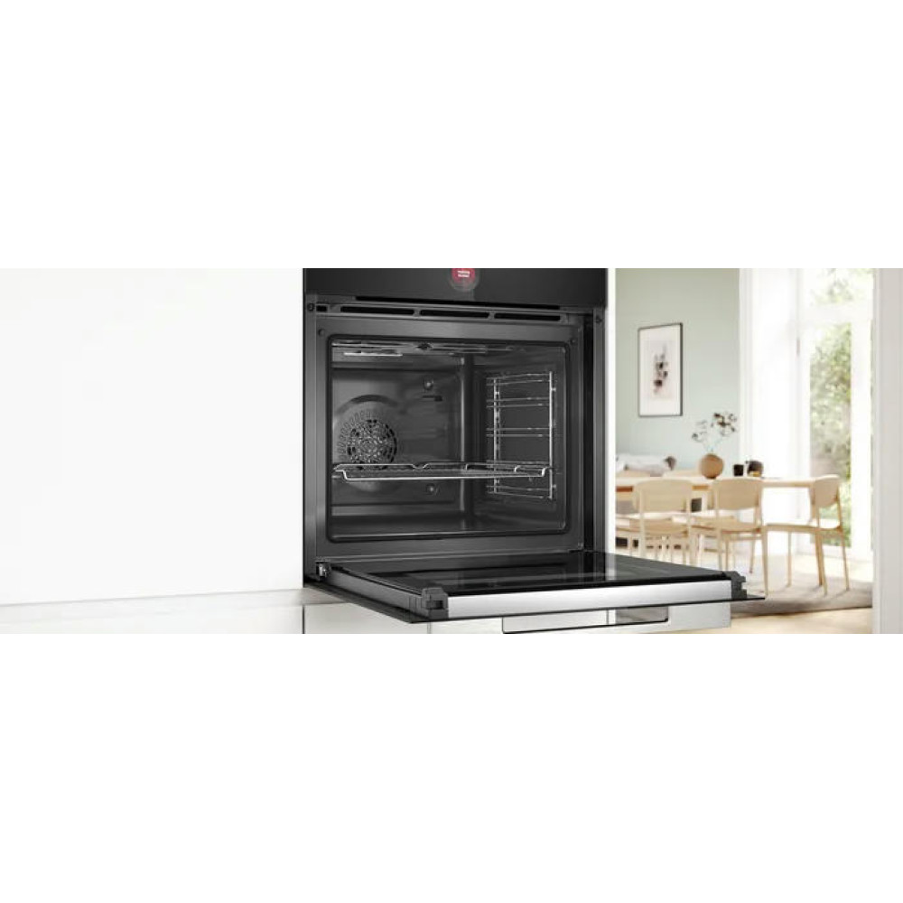 Духовой шкаф Bosch HBG7741B1 — это высококачественное, надежное и функциональное устройство, произведенное в Евросоюзе. Он относится к серии Serie | 8, которая славится своей инновационностью и продуманным дизайном. Устройство обладает электронным управлением и сенсорными элементами, что обеспечивает удобство и простоту использования. Внешний вид шкафа привлекает внимание своим элегантным черным цветом и серебристыми акцентами фурнитуры. Внутренний объем составляет 71 литр, что позволяет приготовить большое количество блюд одновременно. Размеры устройства (59.5 см в высоту, 59.4 см в ширину и 56.7 см в глубину) делают его удобным для установки в любом помещении. Духовой шкаф оснащен 2.5_ цветным TFT дисплеем с сенсорными кнопками, что обеспечивает простоту управления и позволяет легко выбирать необходимые режимы.