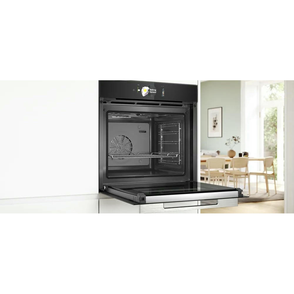 Духовой шкаф Bosch HBG7784B1 из серии Serie 8 - это превосходный выбор для тех, кто ценит комфорт, качество и стиль в кухонной технике. Управление духовым шкафом осуществляется с помощью сенсорных элементов и 2.5-дюймового цветного TFT-дисплея. На нем вы можете установить таймер, выбрать один из 14 режимов нагрева, а также задать температуру от 30 до 300 градусов. Также на дисплее отображаются электронные часы. Одной из особенностей духового шкафа Bosch HBG7784B1 является функция Home Connect. С ее помощью можно управлять прибором дистанционно через смартфон или планшет, что обеспечивает максимальный комфорт в использовании.