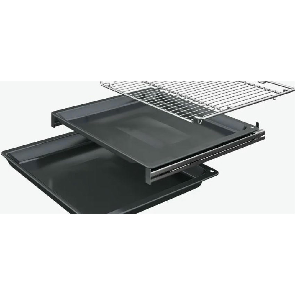 Система очистки EcoClean и специальные панели на задней стенке облегчают уход: нанесённое покрытие сокращает необходимость частого интенсивного мытья и поддерживает чистоту рабочей камеры. Внутри комплект поставки включает комбинированную решётку, эмалированный противень и универсальный противень; дополнительно предлагается противень Air Fry для хрустящих закусок. Телескопические направляющие предусмотрены в одном уровне и упрощают извлечение тяжёлых ёмкостей, повышая безопасность при эксплуатации.