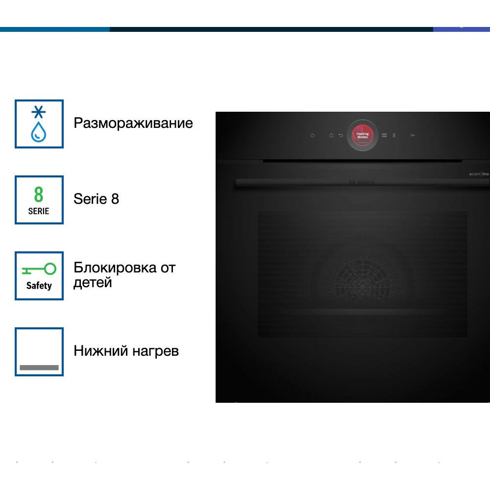 Духовой шкаф Bosch HBG9763B1S оснащен функцией Home connect, которая позволяет управлять устройством с помощью вашего смартфона. Имеется защитное отключение при перегреве. 3D горячий воздух одновременно распределяет тепло на всех уровнях приготовления.