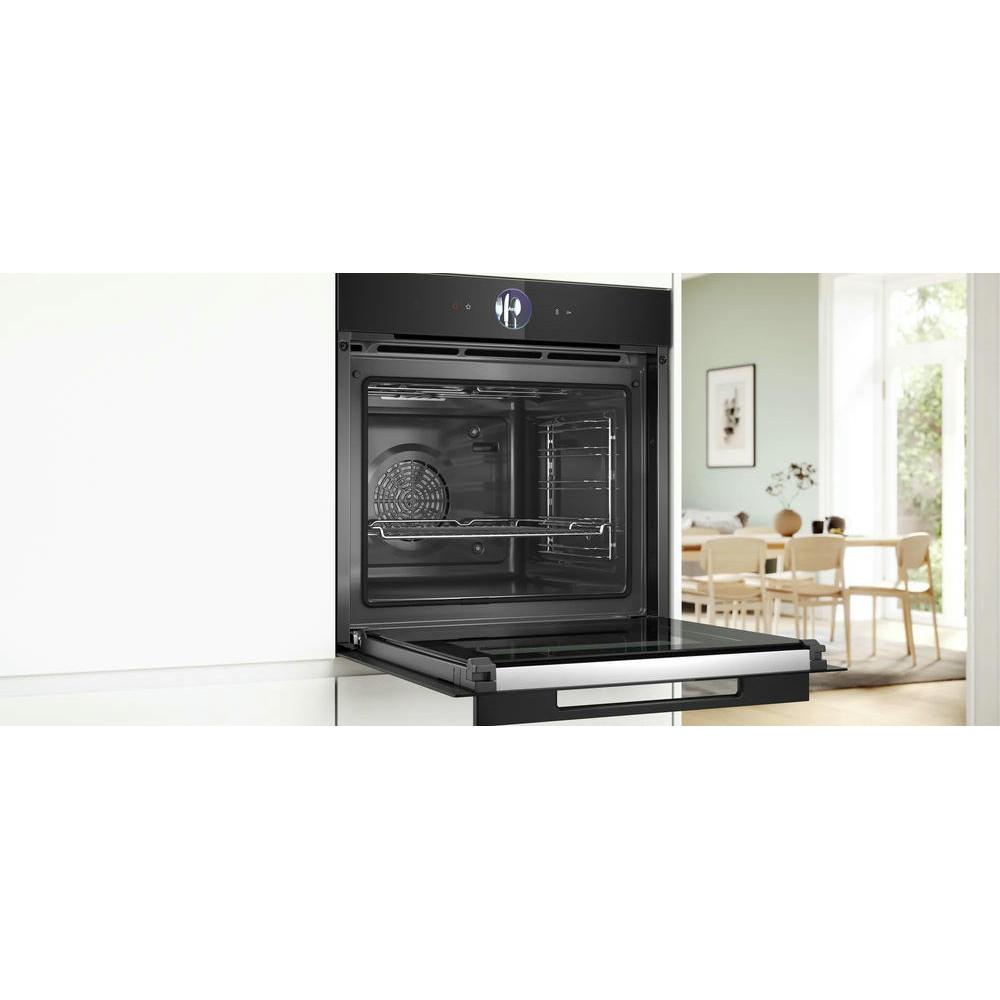 Духовой шкаф Bosch HBG9763B1S имеет систему Home connect, которая позволяет управлять устройством с помощью вашего смартфона. При перегреве сработает автоматическое отключение. 4D горячий воздух одновременно распределяет тепло на всех уровнях приготовления.