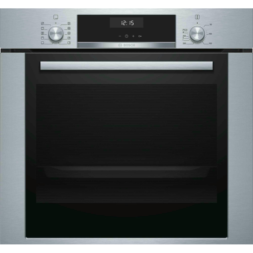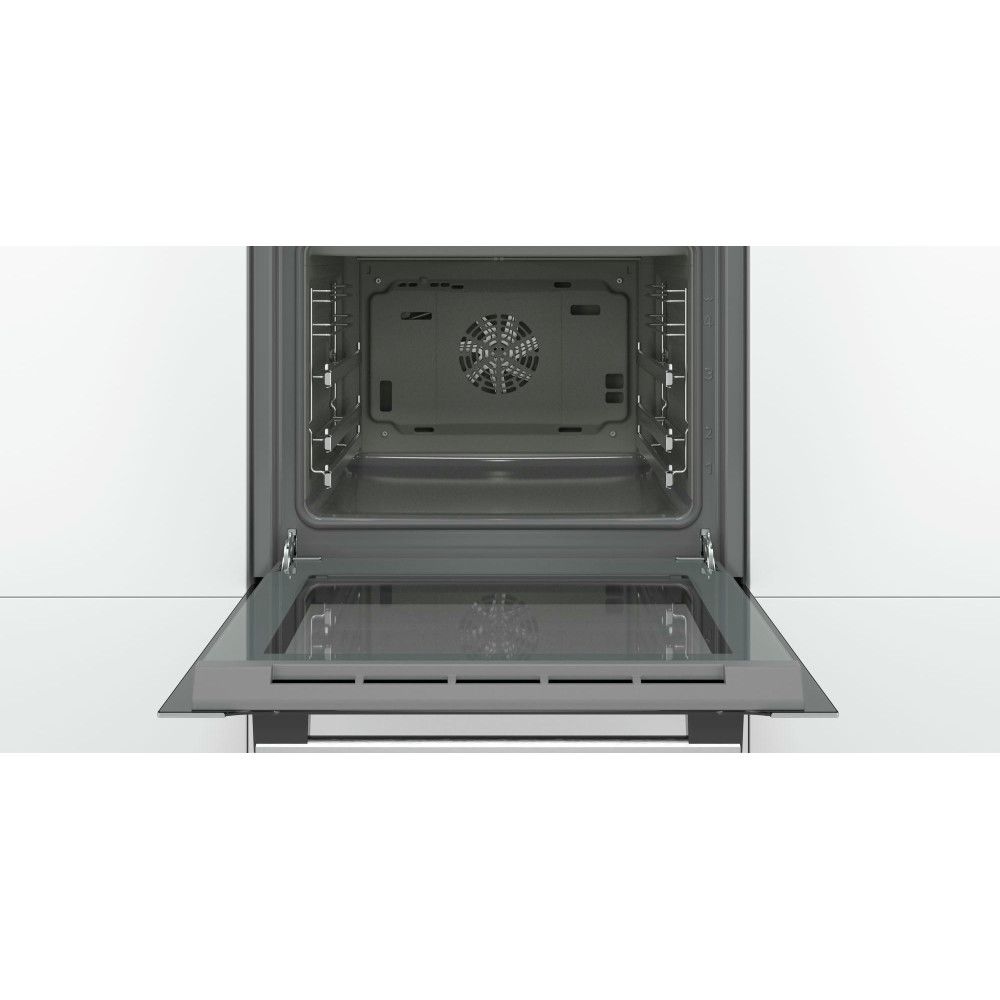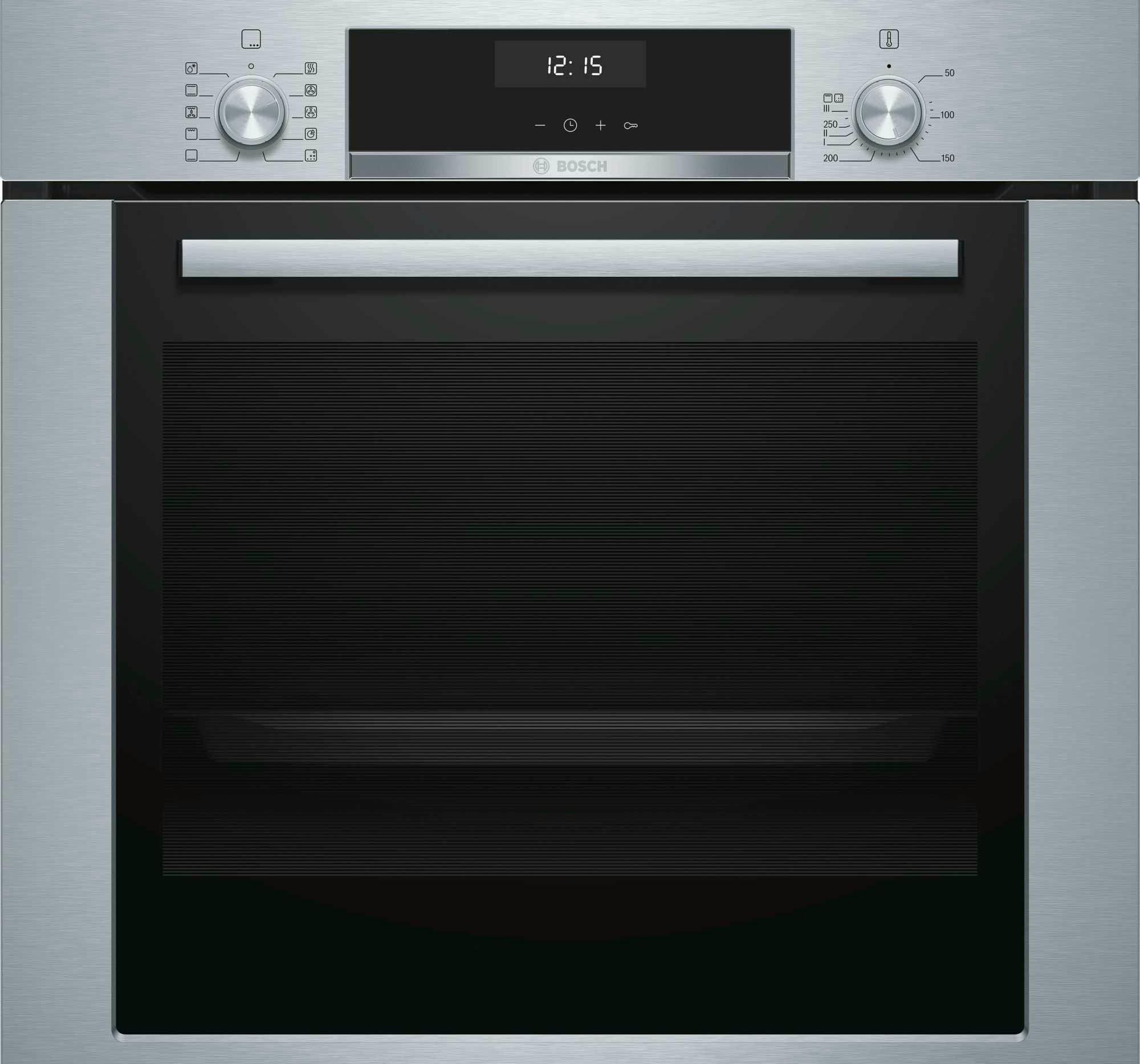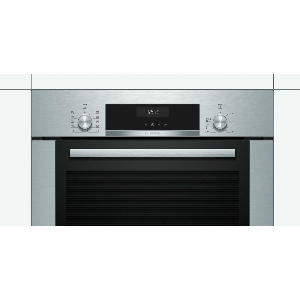 С помощью поворотных ручек и электронного программатора пользователь быстро и точно установит нужные настройки. Заданные параметры выводятся на дисплей. Помимо этого, в панели управления духового шкафа Бош HBJ354AS0Q предусмотрены сенсорные переключатели. Функция автоматического быстрого разогрева позволяет приготовить блюдо намного быстрее. Опция на некоторое время повышает мощность прибора до максимума, а затем переключает на ранее установленный уровень.