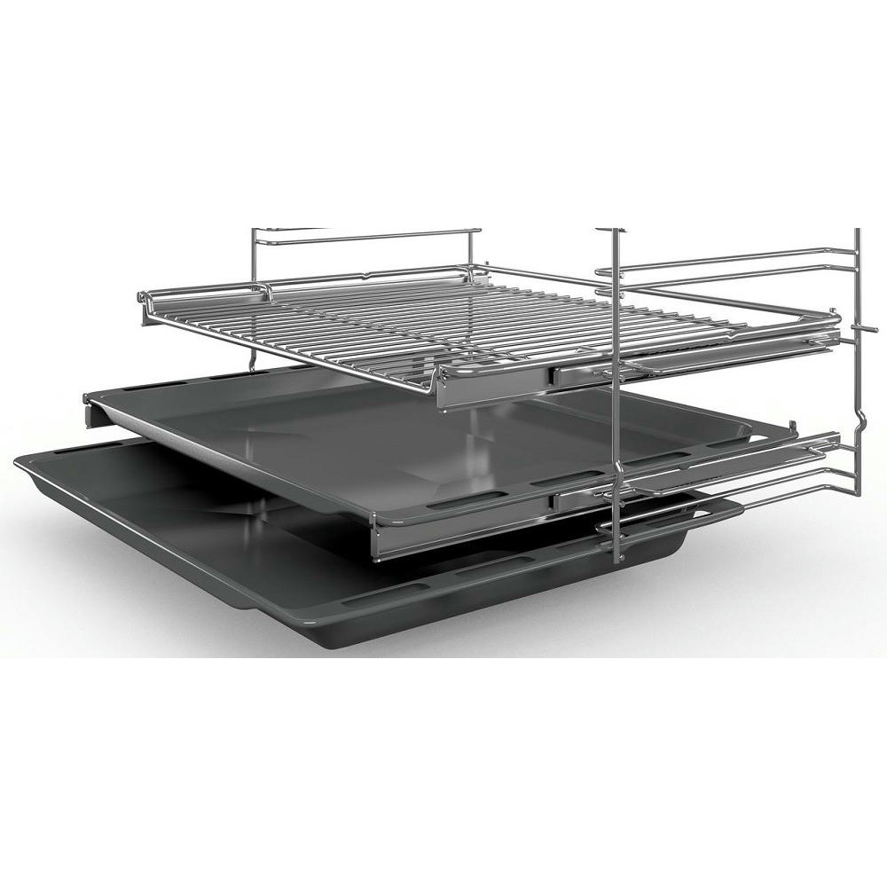 Модель оснащена системой самоочистки боковых, задних и верхних стенок EcoClean. Благодаря гладкой эмали GraniteEnamel и сглаженным углам устройство легко очищать от загрязнений. Телескопические системы выдвижения противней обеспечивают удобный и безопасный доступ к блюдам на нужном уровне.