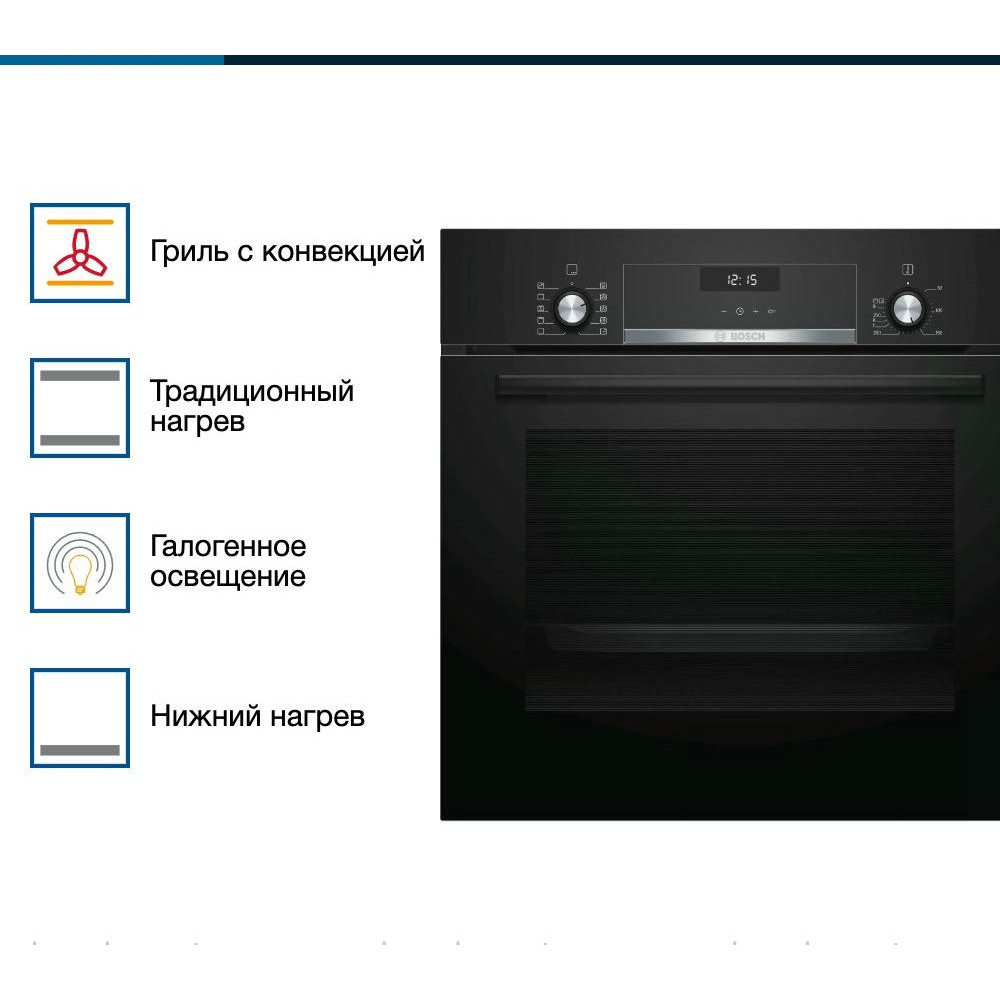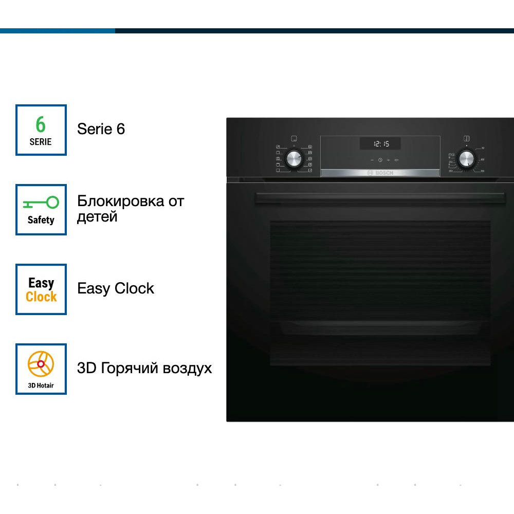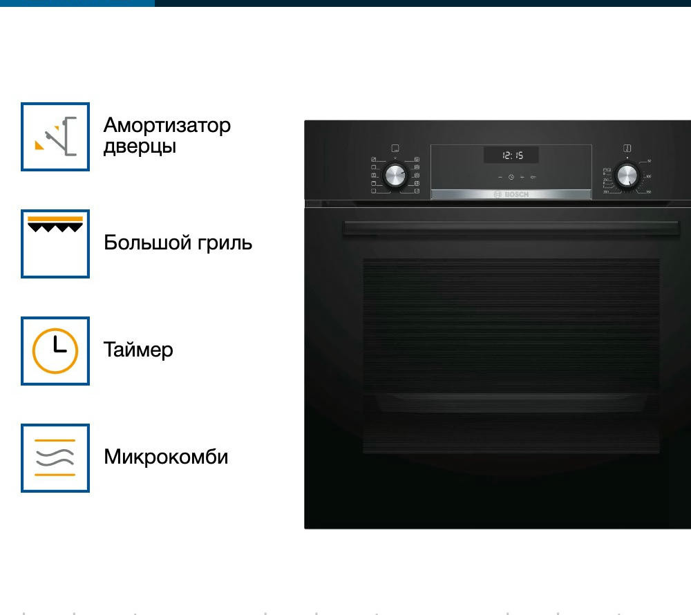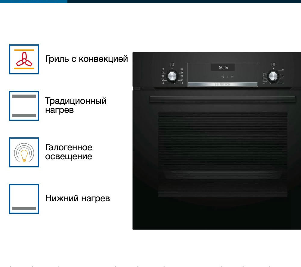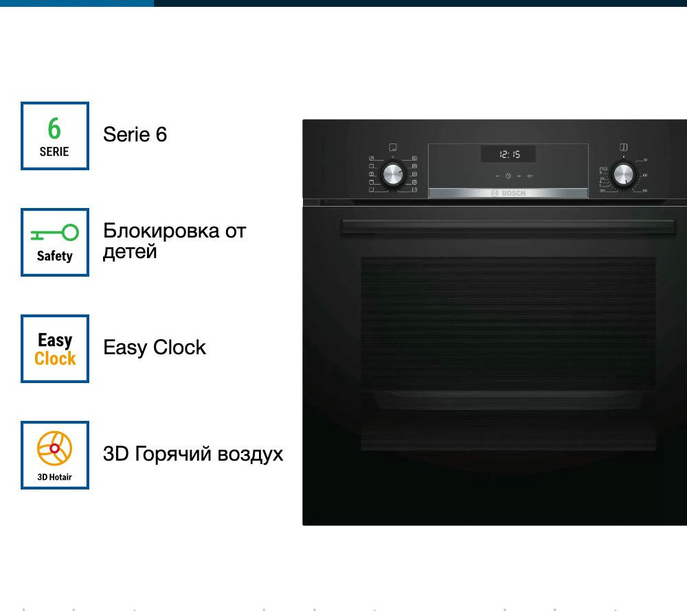 Духовой шкаф BOSCH HBJ558YB0Q относится к типу электрических. Он выпущен в линейке Serie 6, которая отличается дополнительными удобными функциями и интересными технологическими решениями, а также безопасностью. Например, благодаря тройному остеклению температура фасада не превышает 40 градусов.