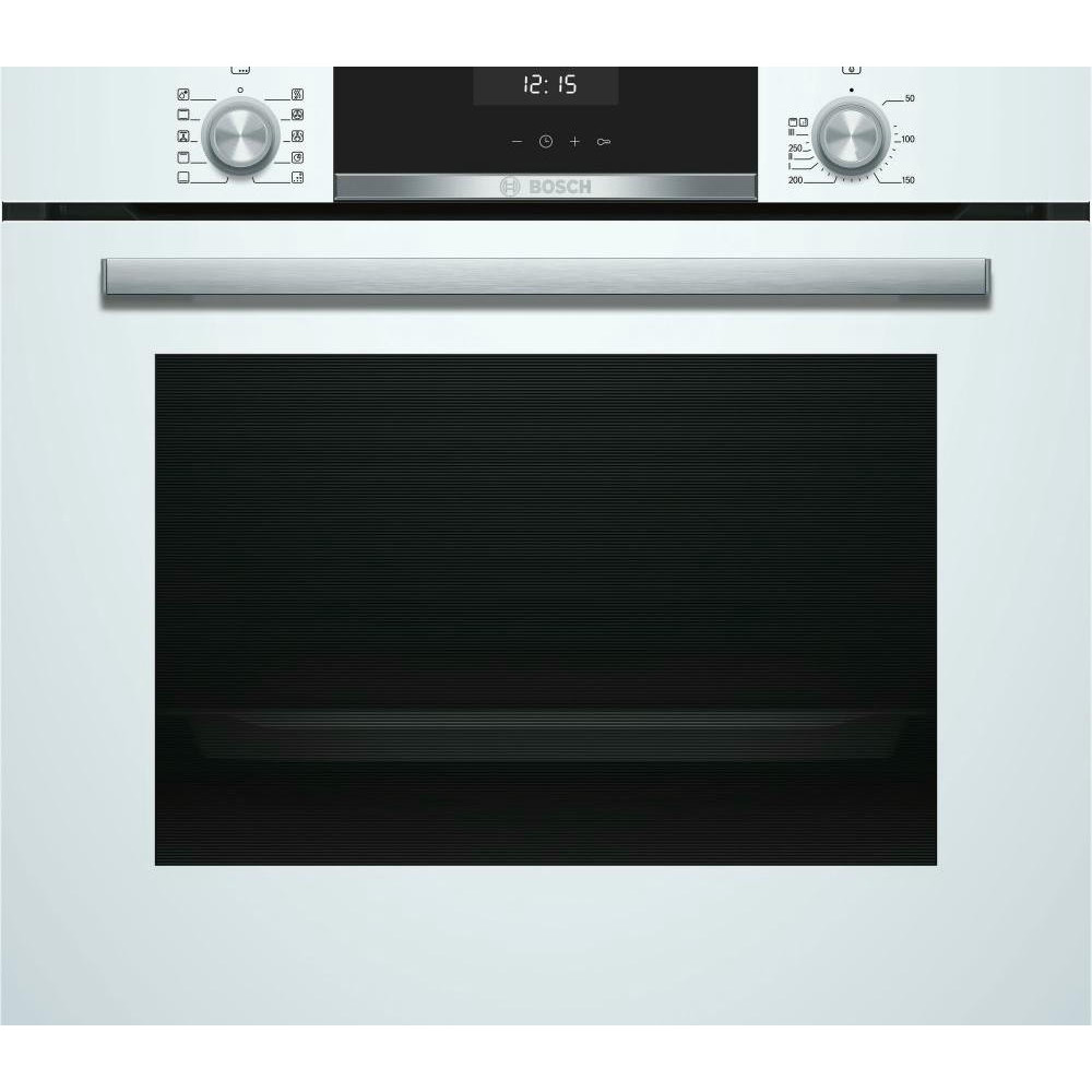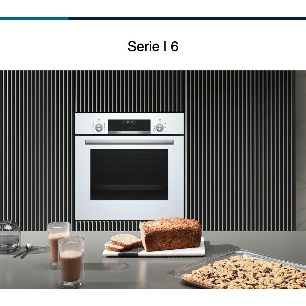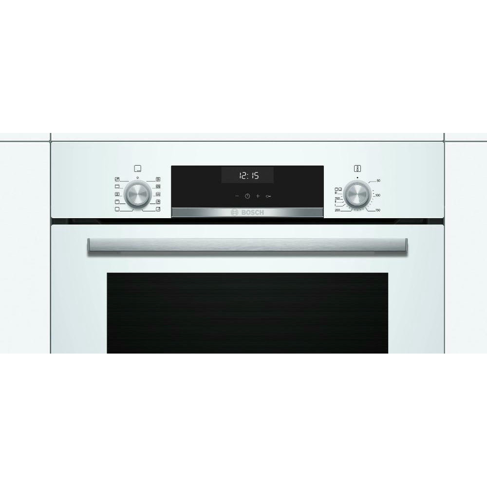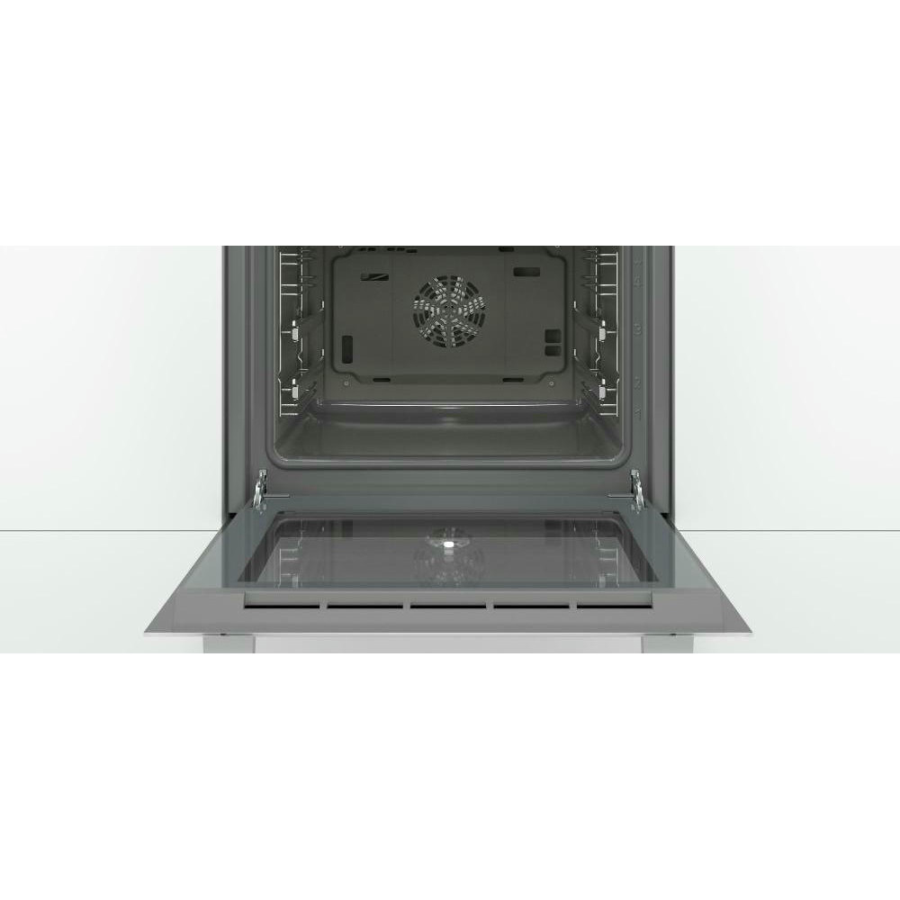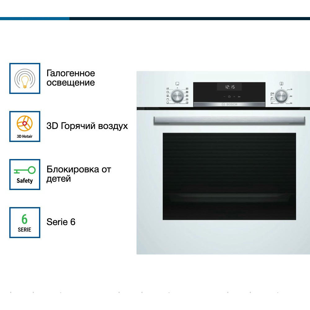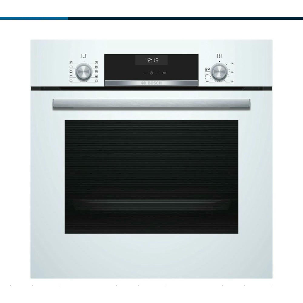 Духовой шкаф Bosch HBJ558YW0Q оснащен 8 режимами нагрева, среди которых — гриль, конвекция и размораживание. В камере предусмотрено пять уровней установки противней, на двух из них установлены телескопические направляющие. Наружное стекло нагревается не более чем до 40_С. В комплект входит комбинированная решётка и два противня (эмалированный и универсальный, противень для гриля).