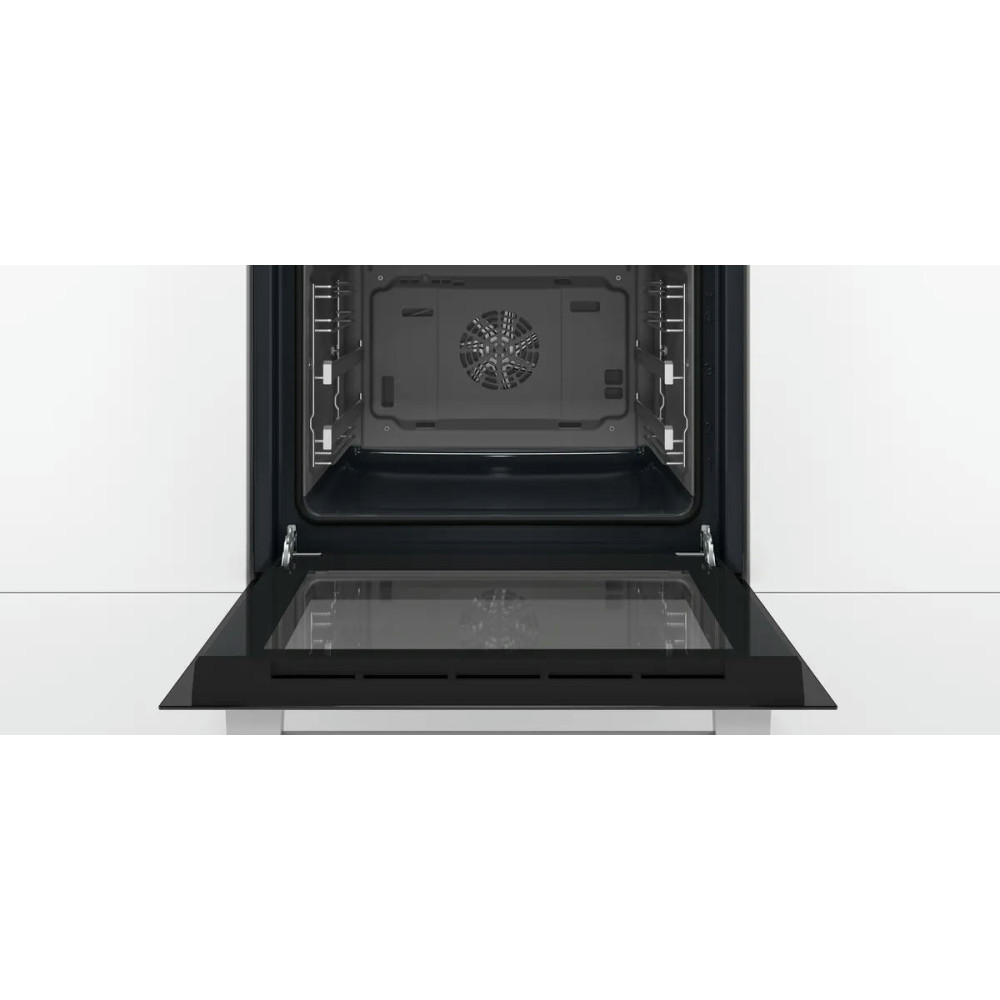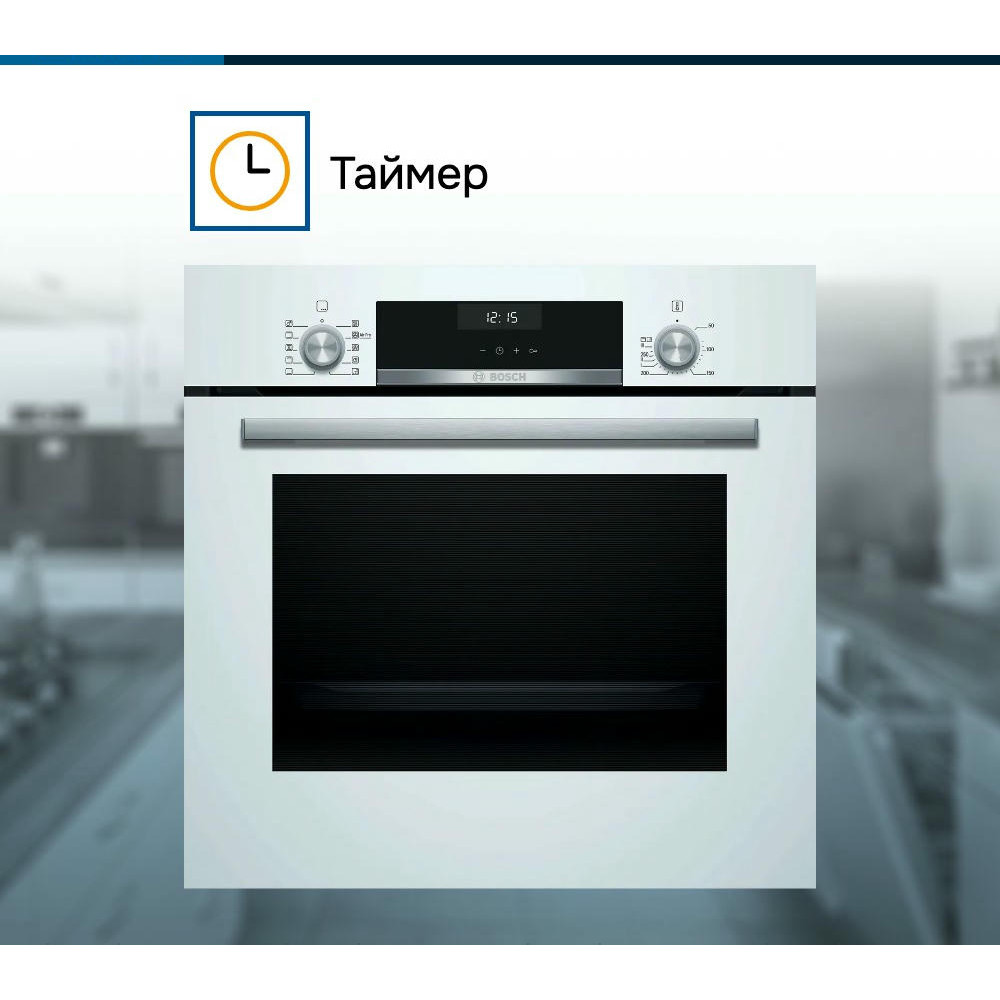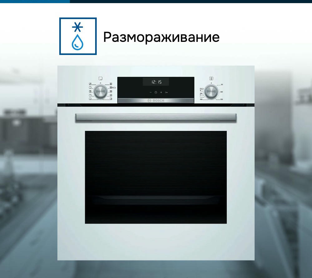 Духовой шкаф Bosch HBJ558YW3Q это современное устройство, воплощающее в себе передовые технологии и элегантный дизайн. Произведенный в Турции, этот прибор из серии Serie | 6 обладает множеством функций, которые делают его неотъемлемым помощником на кухне. Данная модель привлекает внимание своим стильным внешним видом. Белый цвет корпуса и нержавеющая сталь фурнитуры создают гармоничную композицию, которая будет идеально смотреться в любом интерьере. Прибор имеет компактные размеры: высота составляет 59.5 см, ширина — 59.4 см, а глубина — 56.7 см, что позволяет легко встроить его в любую нишу размером 57.5-59.7x56-56.8x55 см. Управление духовкой осуществляется с помощью сенсорных поворотных утапливаемых элементов, что делает процесс приготовления еще более удобным и интуитивно понятным. На LCD дисплее отображается вся необходимая информация, а многофункциональные часы Easy Clock помогут контролировать время приготовления блюд. Модель обладает внутренним объемом 66 литров и оснащена 8 режимами нагрева, включая 3D-горячий воздух, горячий воздух Gentle, верхний/нижний жар, большой гриль, гриль с конвекцией /Термогриль, режим для пиццы, нижний жар и размораживание. Такое разнообразие функций позволяет готовить самые разные блюда, экспериментировать с рецептами и создавать кулинарные шедевры. Особое внимание заслуживает система очистки EcoClean. Эта технология позволяет поддерживать чистоту духового шкафа без лишних усилий. Панели EcoClean, расположенные на задней стенке, боковых стенках и потолке, эффективно поглощают и уничтожают жир и грязь в процессе работы прибора. Дверца духового шкафа откидная и оснащена амортизатором SoftClose для мягкого и бесшумного закрывания. Трехслойное остекление обеспечивает сохранение тепла внутри шкафа и предотвращает перегрев наружного стекла, температура которого не превышает 40 градусов.