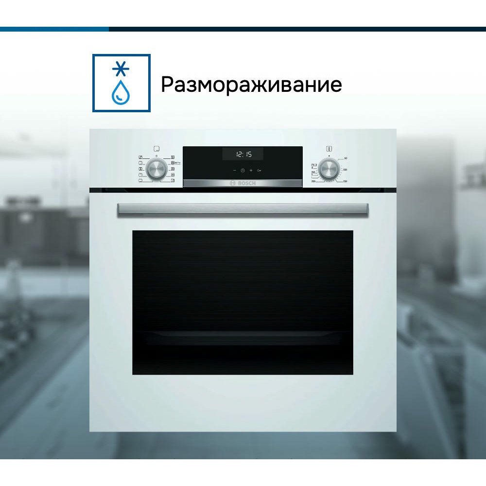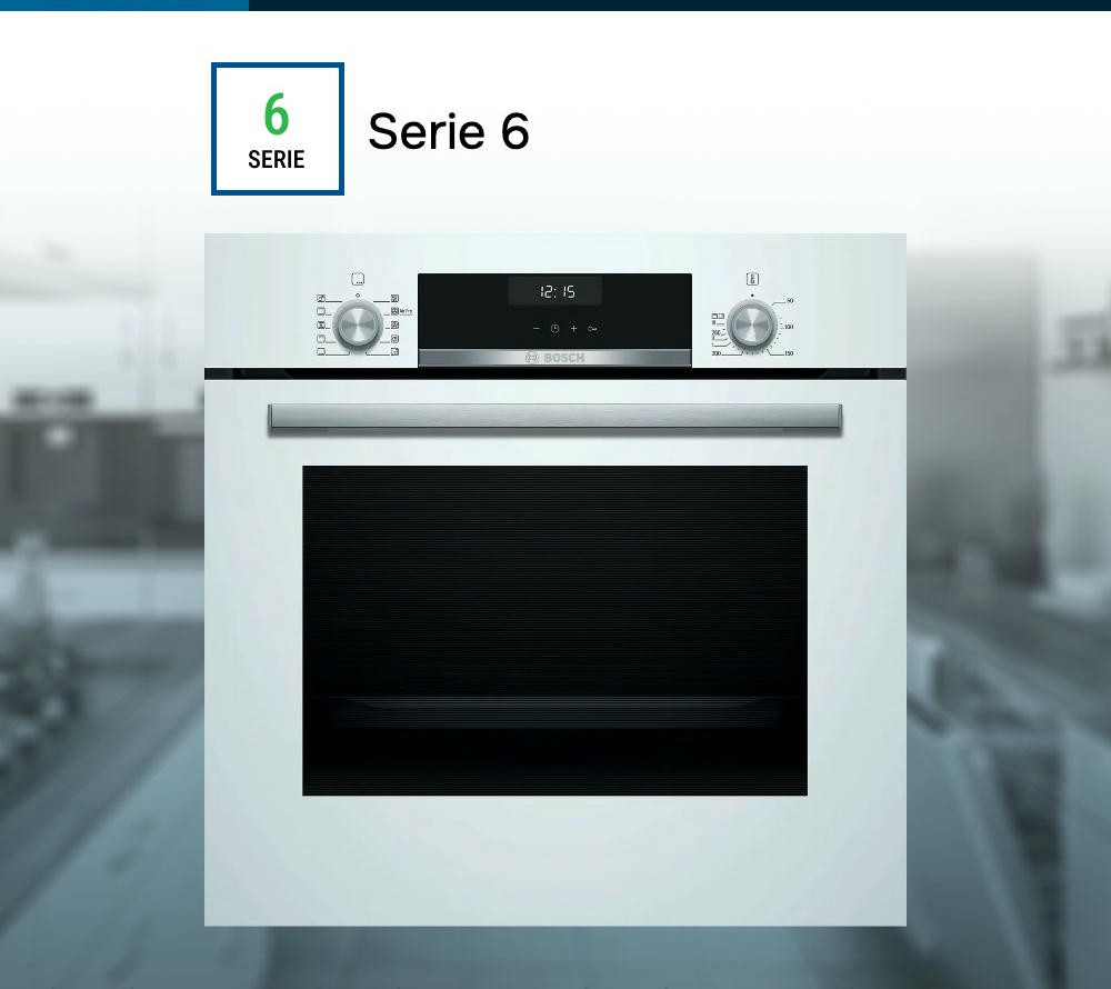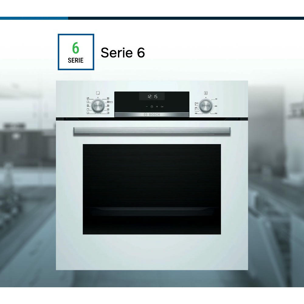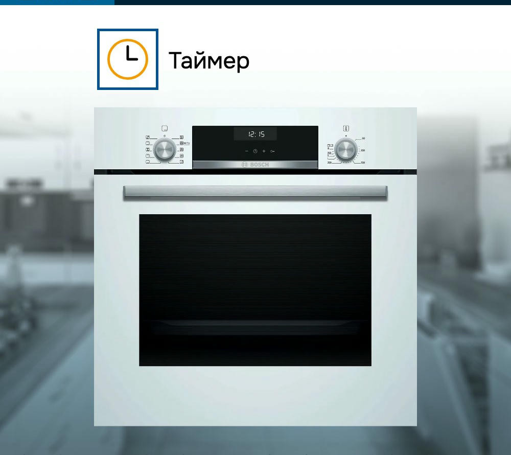 Духовой шкаф Bosch HBJ558YW3Q это современное устройство, воплощающее в себе передовые технологии и элегантный дизайн. Произведенный в Турции, этот прибор из серии Serie | 6 обладает множеством функций, которые делают его неотъемлемым помощником на кухне. Данная модель привлекает внимание своим стильным внешним видом. Белый цвет корпуса и нержавеющая сталь фурнитуры создают гармоничную композицию, которая будет идеально смотреться в любом интерьере. Прибор имеет компактные размеры: высота составляет 59.5 см, ширина — 59.4 см, а глубина — 56.7 см, что позволяет легко встроить его в любую нишу размером 57.5-59.7x56-56.8x55 см. Управление духовкой осуществляется с помощью сенсорных поворотных утапливаемых элементов, что делает процесс приготовления еще более удобным и интуитивно понятным. На LCD дисплее отображается вся необходимая информация, а многофункциональные часы Easy Clock помогут контролировать время приготовления блюд. Модель обладает внутренним объемом 66 литров и оснащена 8 режимами нагрева, включая 3D-горячий воздух, горячий воздух Gentle, верхний/нижний жар, большой гриль, гриль с конвекцией /Термогриль, режим для пиццы, нижний жар и размораживание. Такое разнообразие функций позволяет готовить самые разные блюда, экспериментировать с рецептами и создавать кулинарные шедевры. Особое внимание заслуживает система очистки EcoClean. Эта технология позволяет поддерживать чистоту духового шкафа без лишних усилий. Панели EcoClean, расположенные на задней стенке, боковых стенках и потолке, эффективно поглощают и уничтожают жир и грязь в процессе работы прибора. Дверца духового шкафа откидная и оснащена амортизатором SoftClose для мягкого и бесшумного закрывания. Трехслойное остекление обеспечивает сохранение тепла внутри шкафа и предотвращает перегрев наружного стекла, температура которого не превышает 40 градусов.