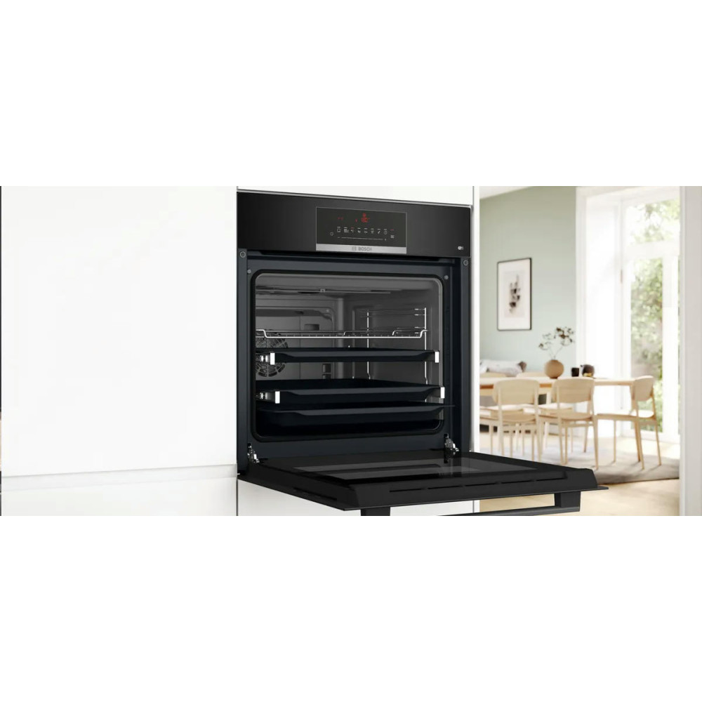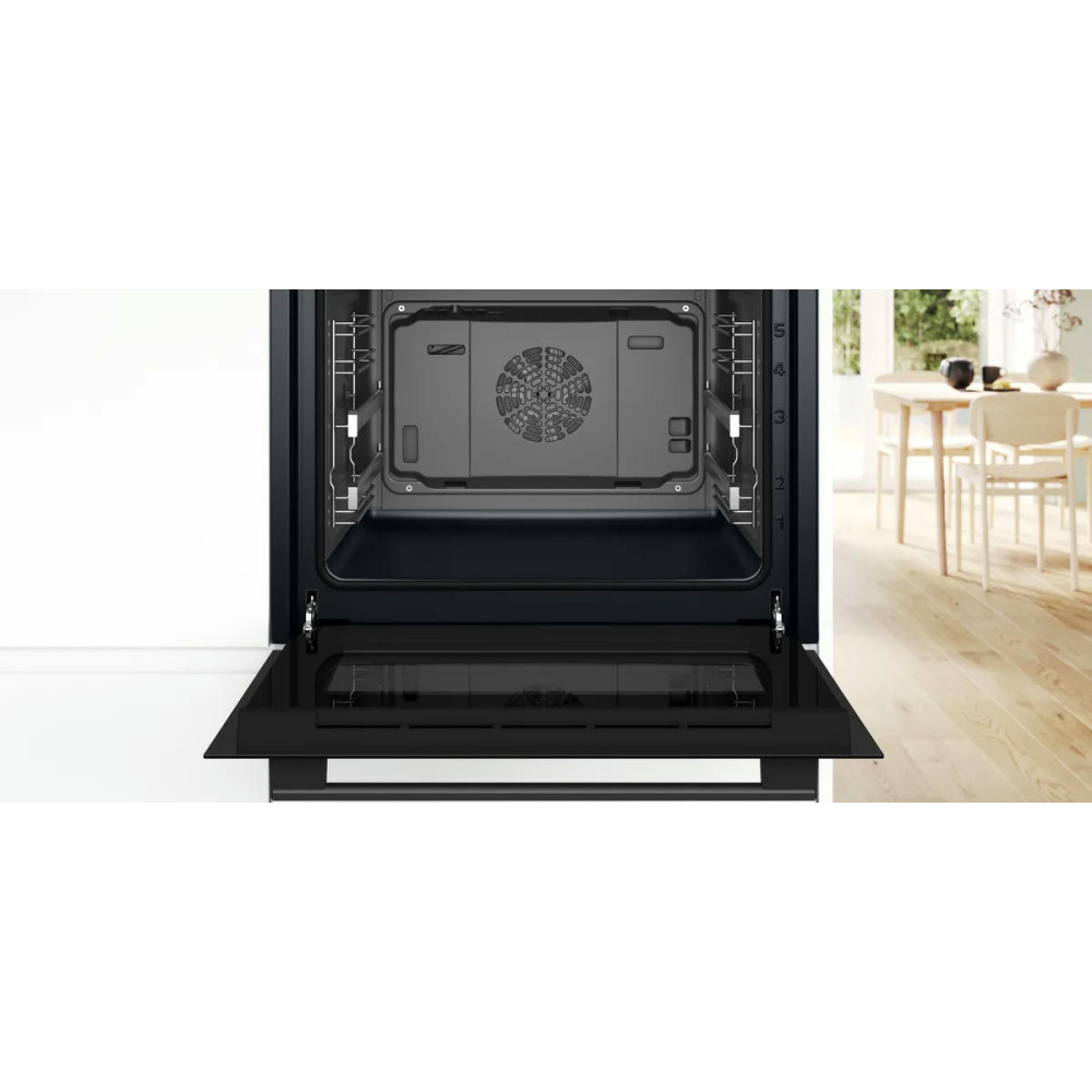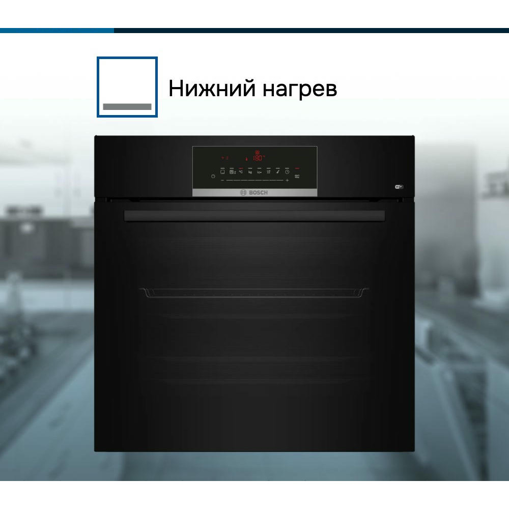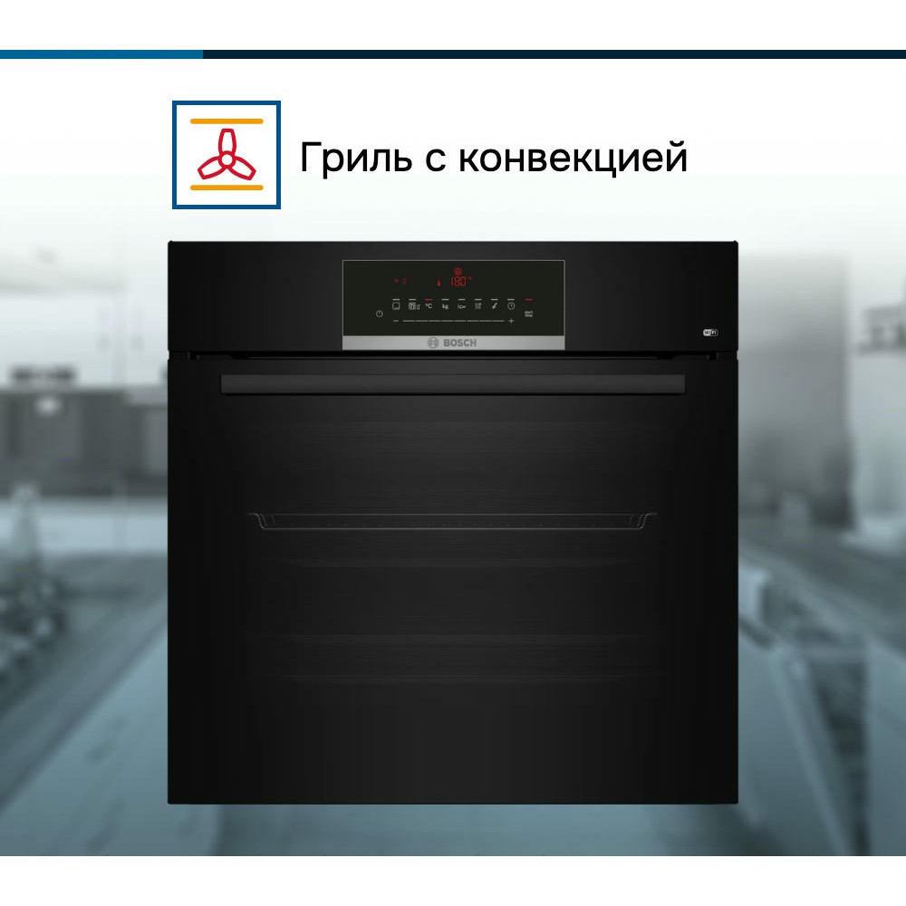 Электрический духовой шкаф Bosch HBJ559YB6R из серии Serie | 6 — это идеальное сочетание стильного дизайна и современных технологий. Устройство выполнено в привлекательном черном цвете, что позволяет ему гармонично вписаться в любой интерьер кухни. Сенсорное управление и LCD-дисплей делают использование духового шкафа удобным и интуитивно понятным. Особенностью данной модели является наличие многофункциональных часов Easy Clock и таймера, что позволяет точно контролировать время приготовления блюд. Кроме того, духовой шкаф оснащен функцией Home Connect, позволяющей управлять устройством дистанционно с помощью смартфона или планшета. Электрический духовой шкаф Bosch HBJ559YB6R предлагает 12 режимов нагрева, включая 3D-горячий воздух, верхний/нижний жар, большой гриль, гриль с конвекцией и режим для пиццы. Такое разнообразие режимов позволяет готовить любые блюда, сохраняя их вкус и полезные свойства. Устройство также оснащено системой автоматического приготовления AutoPilot, которая включает в себя 40 автоматических программ. Это значит, что вам не придется заботиться о выборе температуры и времени приготовления — духовой шкаф сделает все за вас. Очистка духового шкафа не вызовет у вас никаких проблем благодаря системе EcoClean. Экологичные панели EcoClean, расположенные на задней, боковых стенках и потолке, обеспечивают эффективное и долговечное очищение. При использовании духового шкафа вас порадует его безопасность. Дверца устройства оснащена амортизатором SoftClose, что предотвращает ее резкое закрывание. Также есть блокировка от детей, предотвращающая случайное включение прибора.