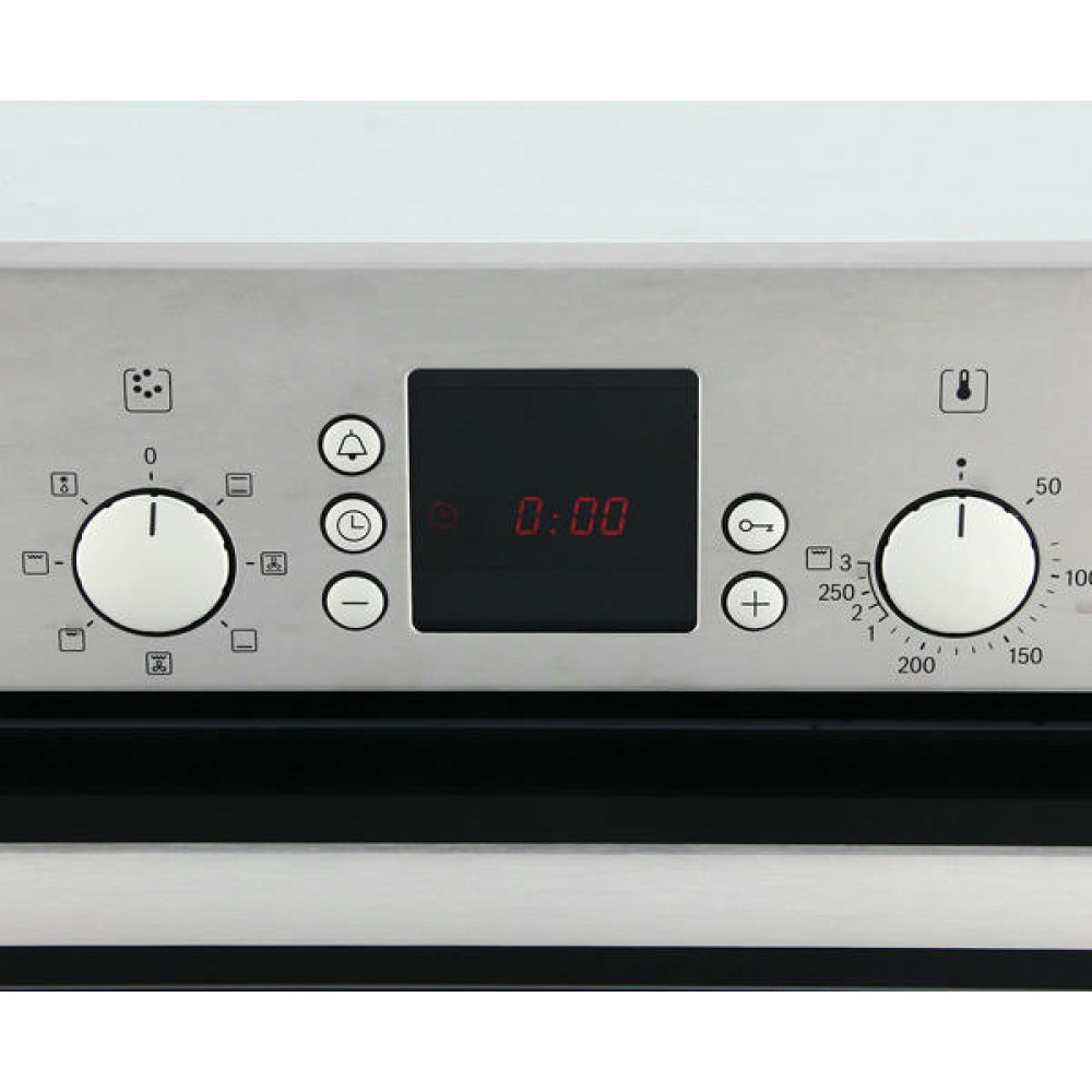 При конвекции потоки горячего воздуха равномерно распределяются по всему объему камеры, что позволяет готовить на нескольких уровнях одновременно. Утапливаемые переключатели обеспечивают легкую очистку панели управления, предотвращают случайное включение и придают модели гармоничный вид. Дисплей демонстрирует информацию о параметрах нагрева.